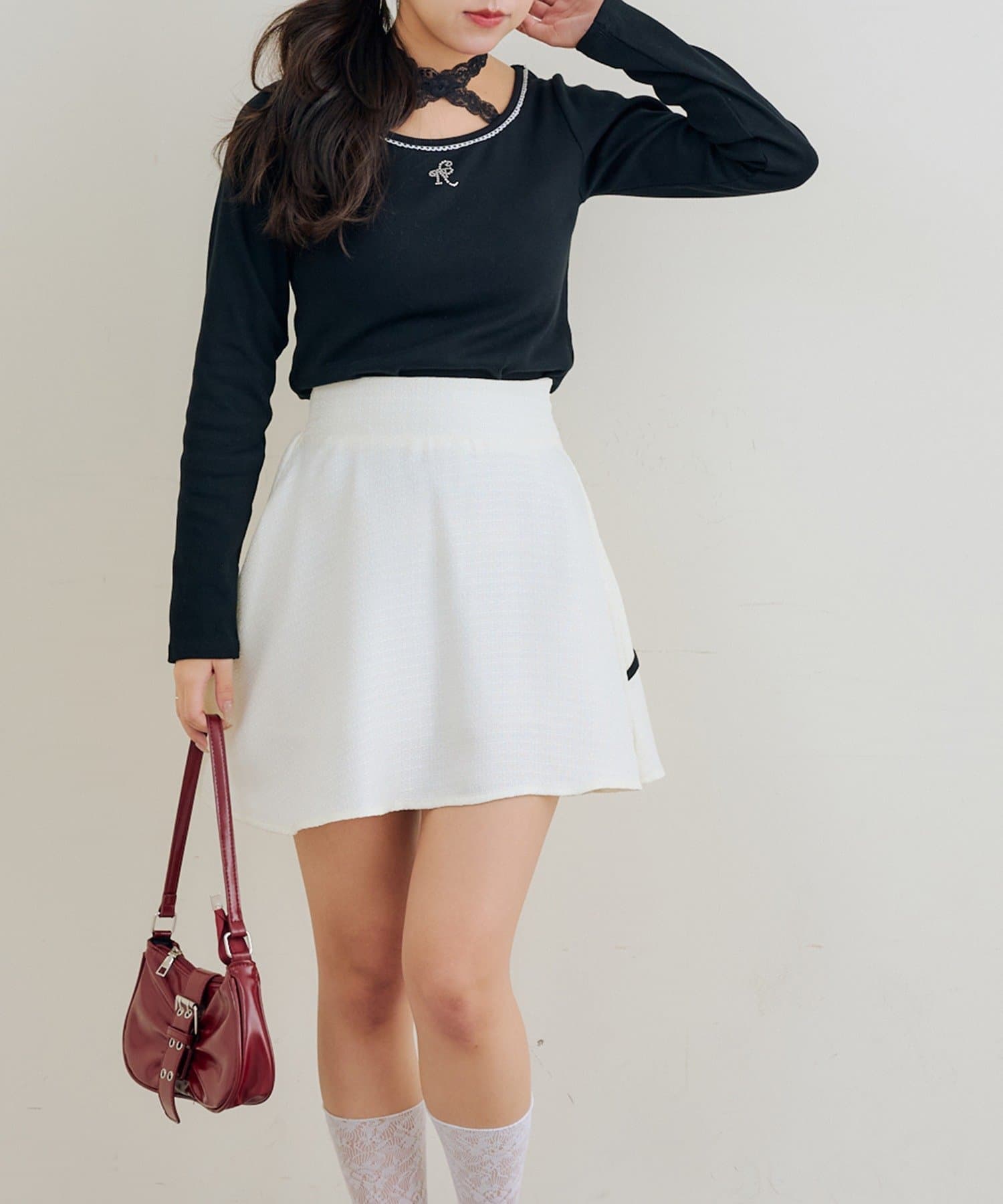 ・ミニスカート合わせでとことんガーリーにまとめるのがオススメ