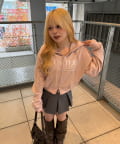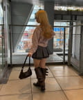 ・フレアスカートやワンピースに羽織って、甘さを抑えた大人ガーリースタイル。足元はブーツやパンプスで女性らしさを演出