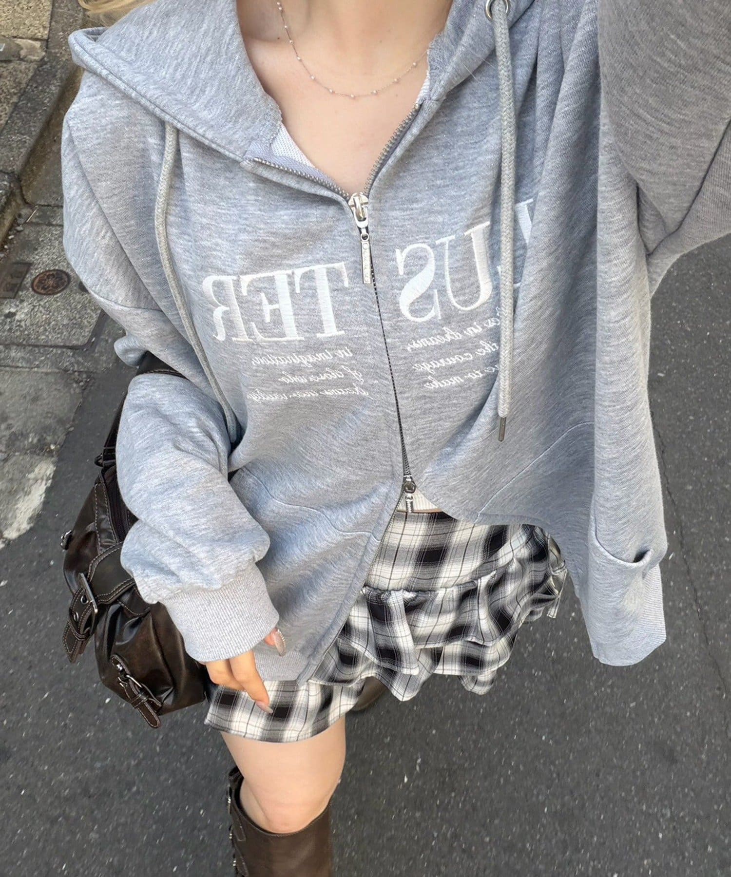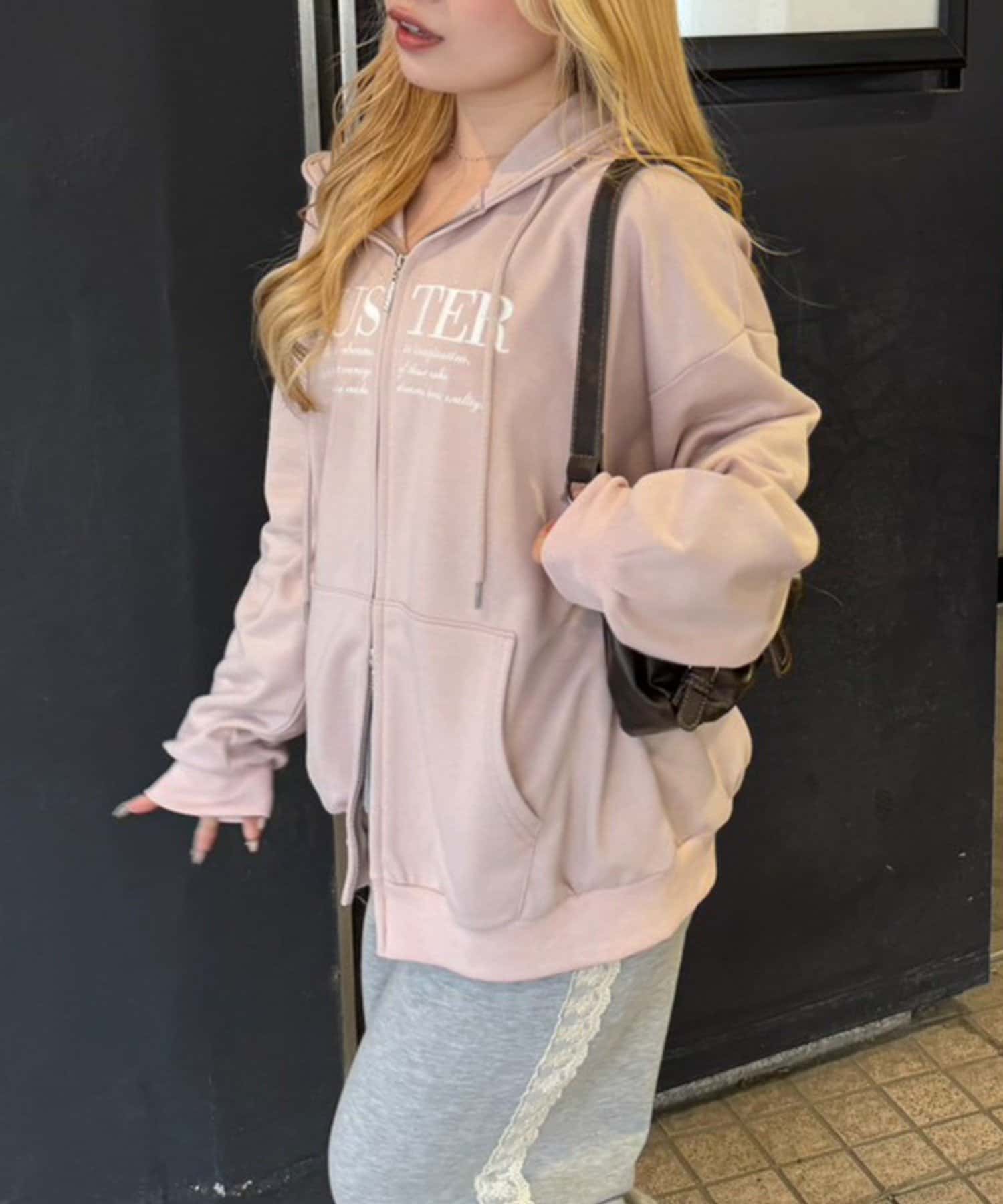 ・フロントのロゴとメッセージが目を引く、カジュアルながらも洗練された印象のパーカー