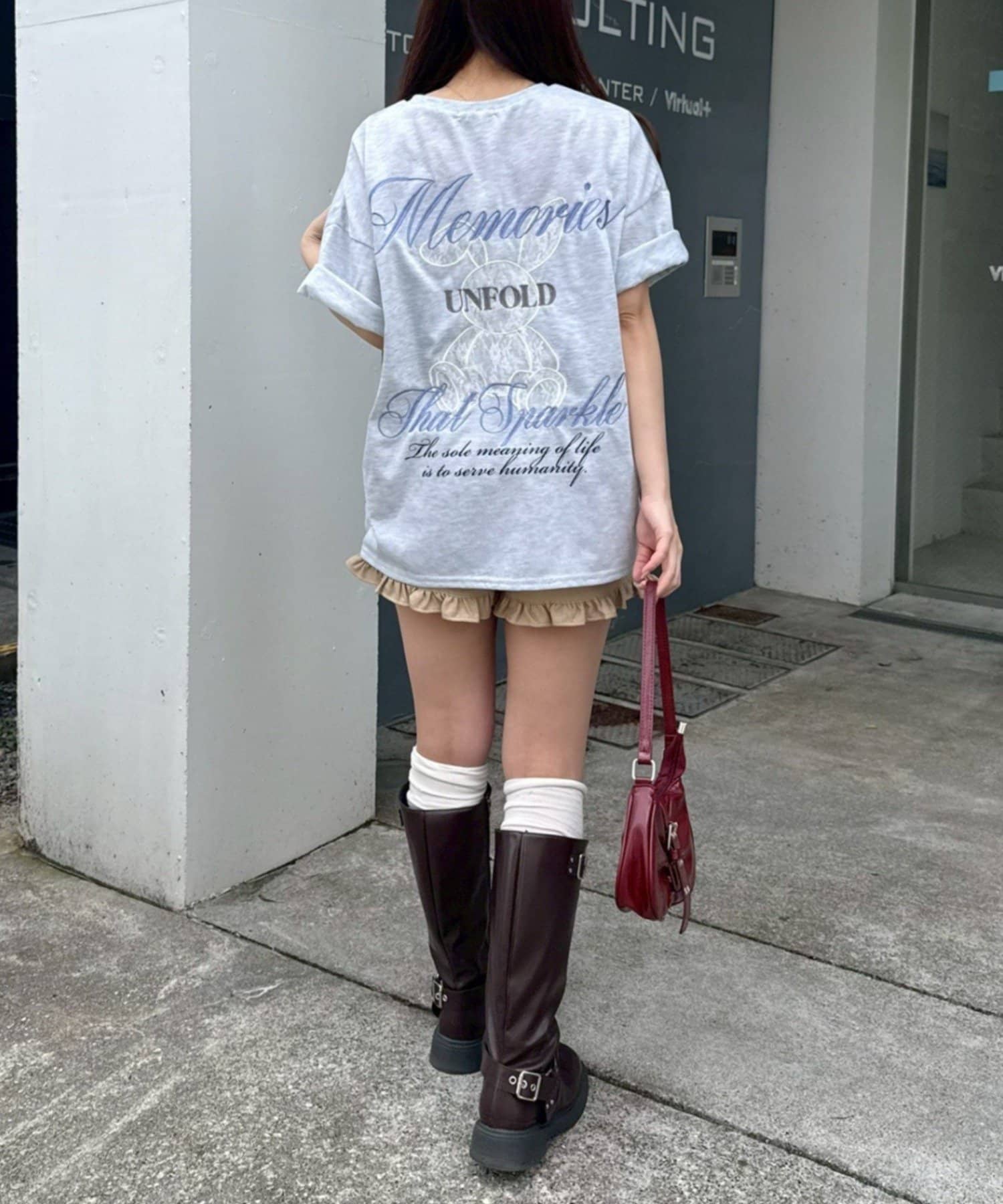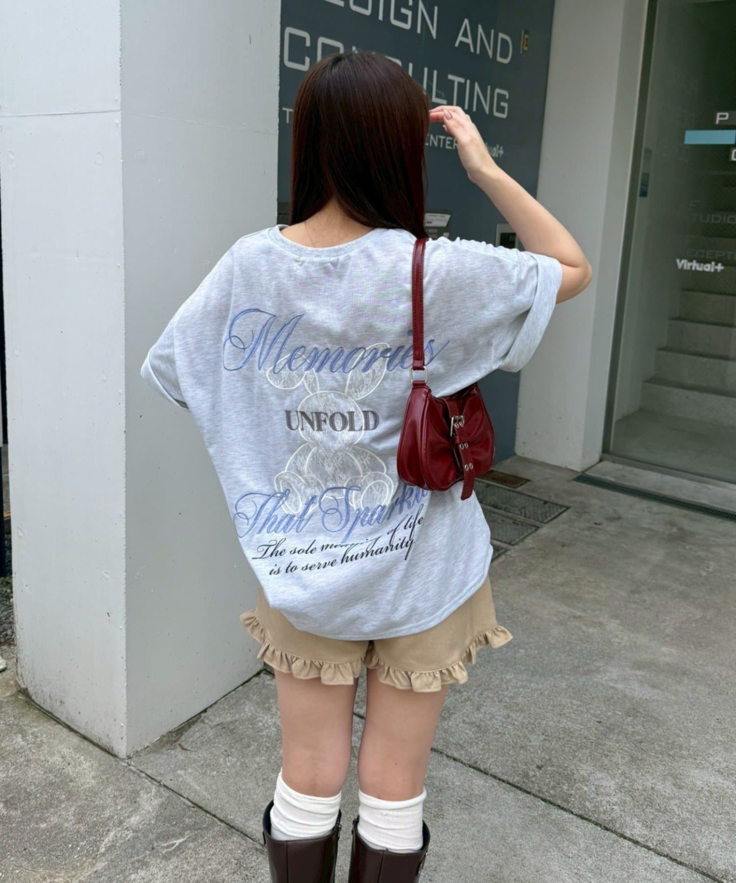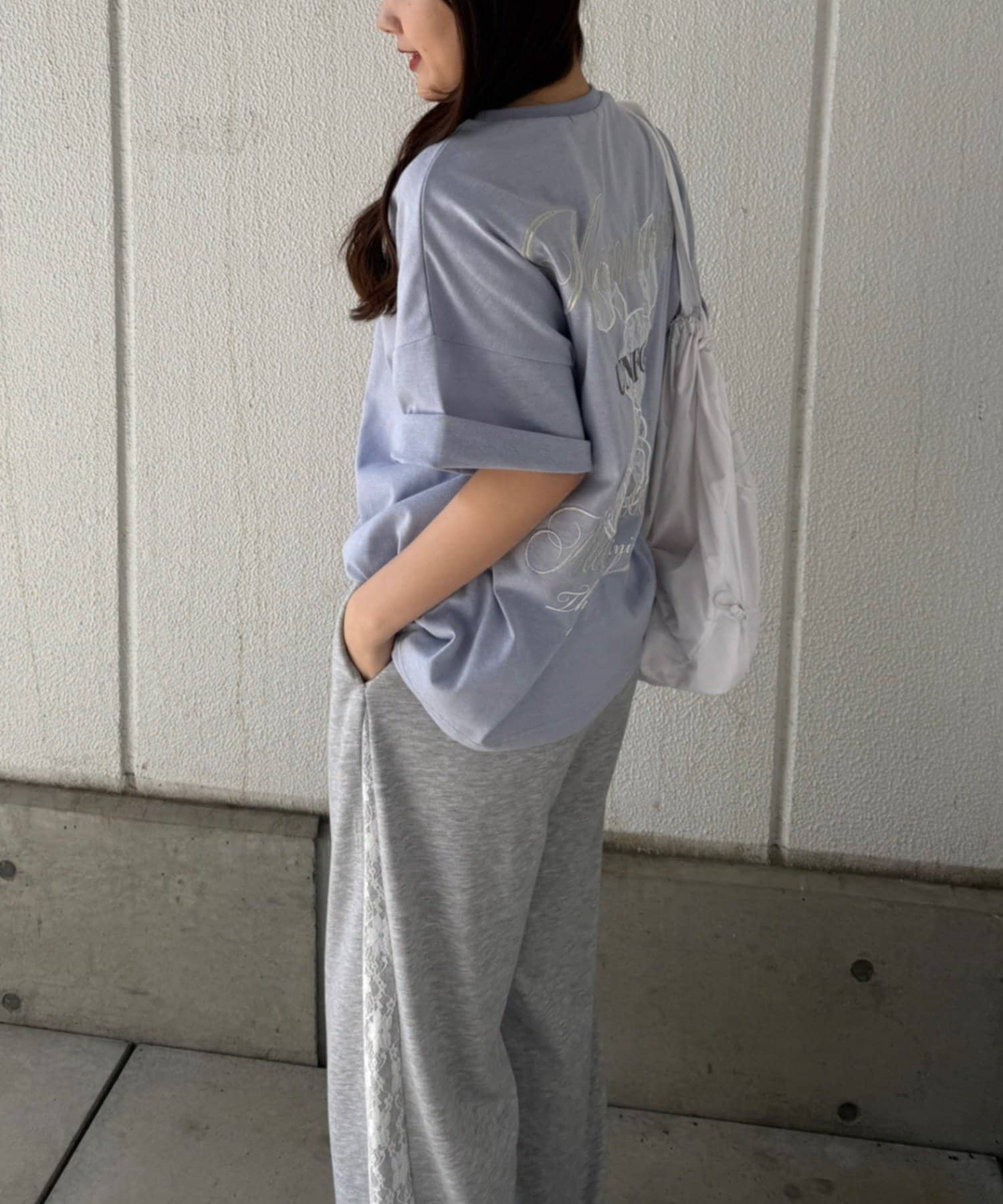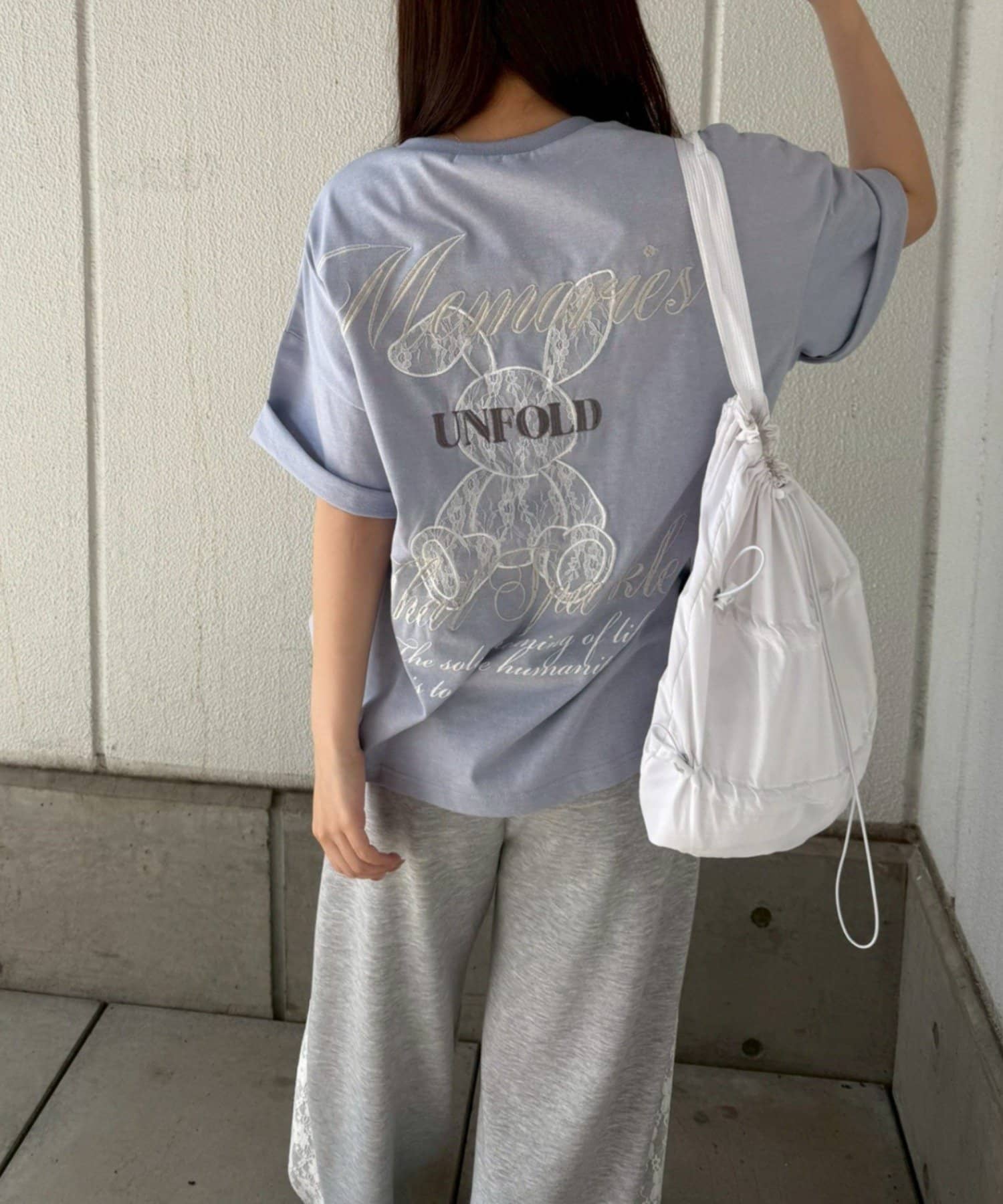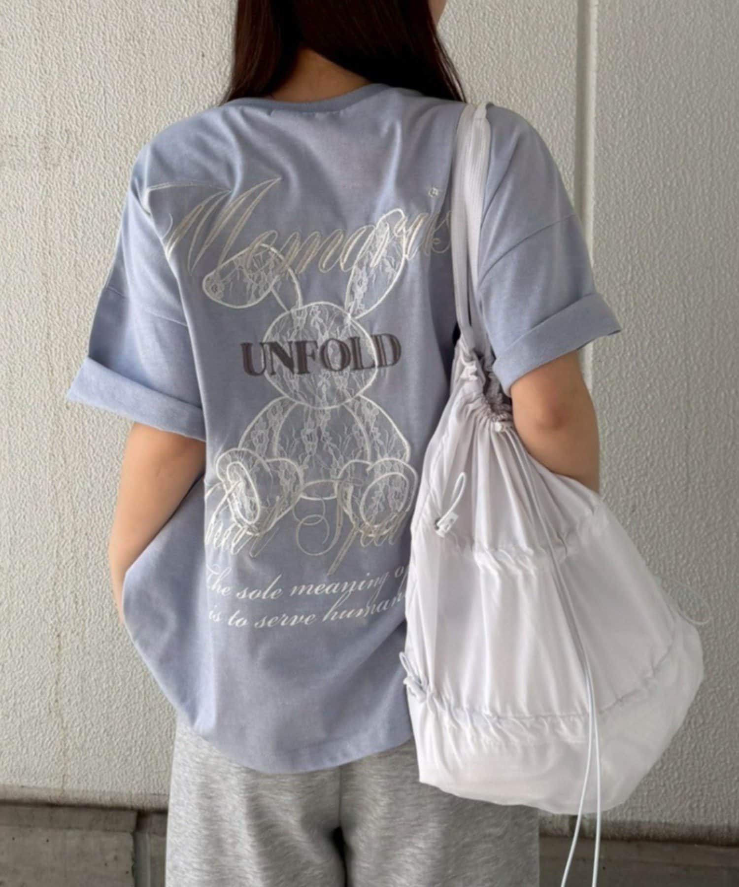 ・レース素材のウサギデザインが目を惹くオーバーサイズTシャツ