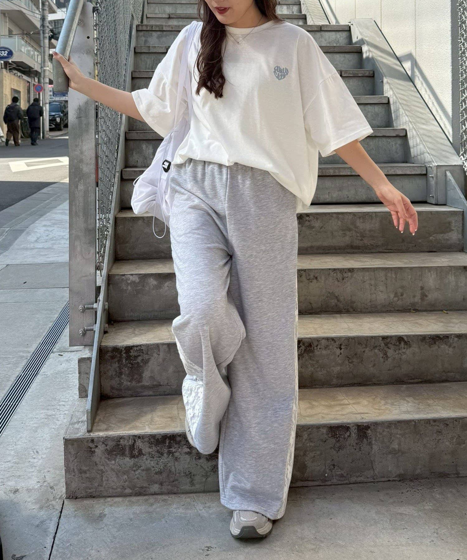 ・ワイドなデニムパンツにスニーカーのストリートライクなコーデも◎