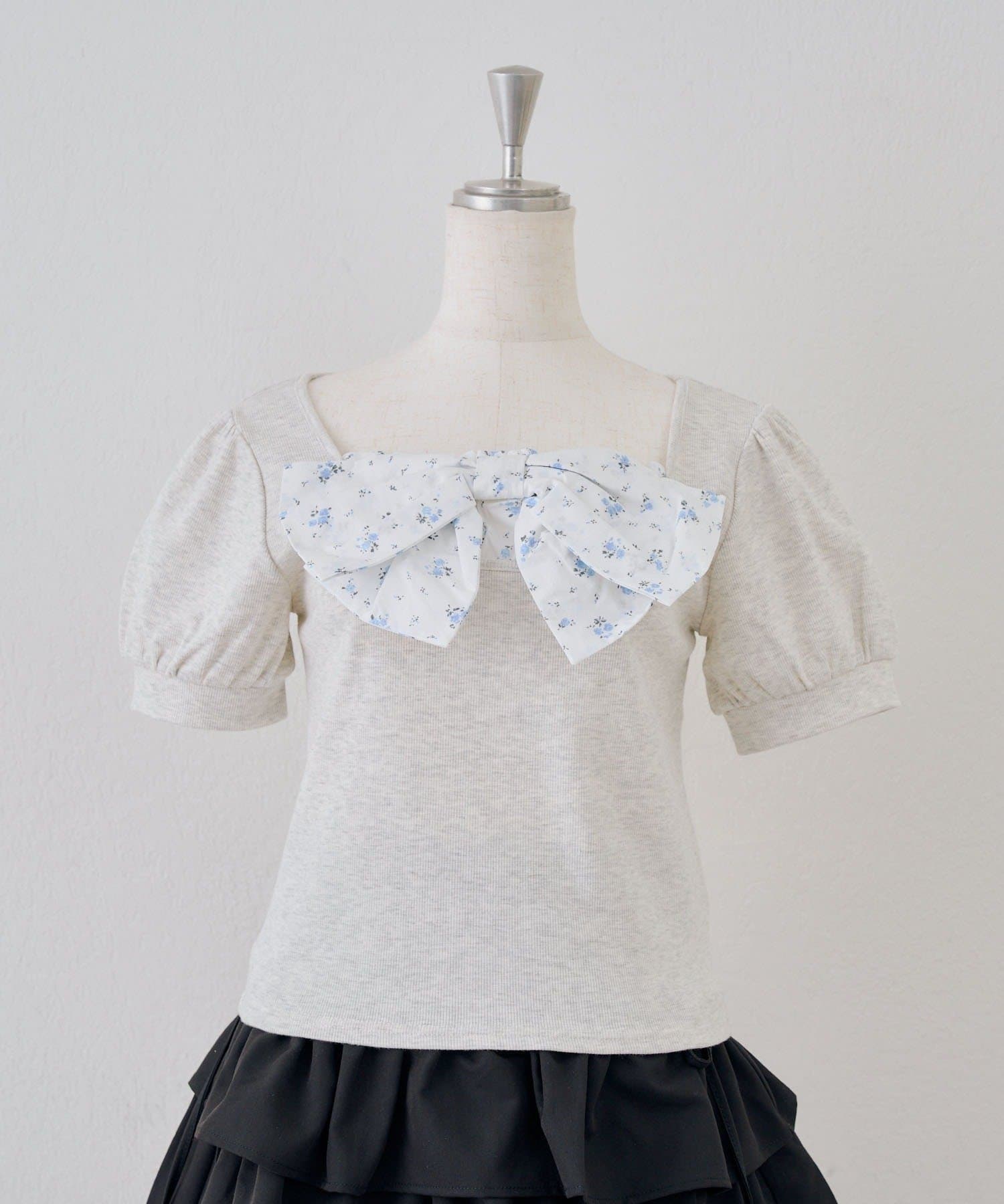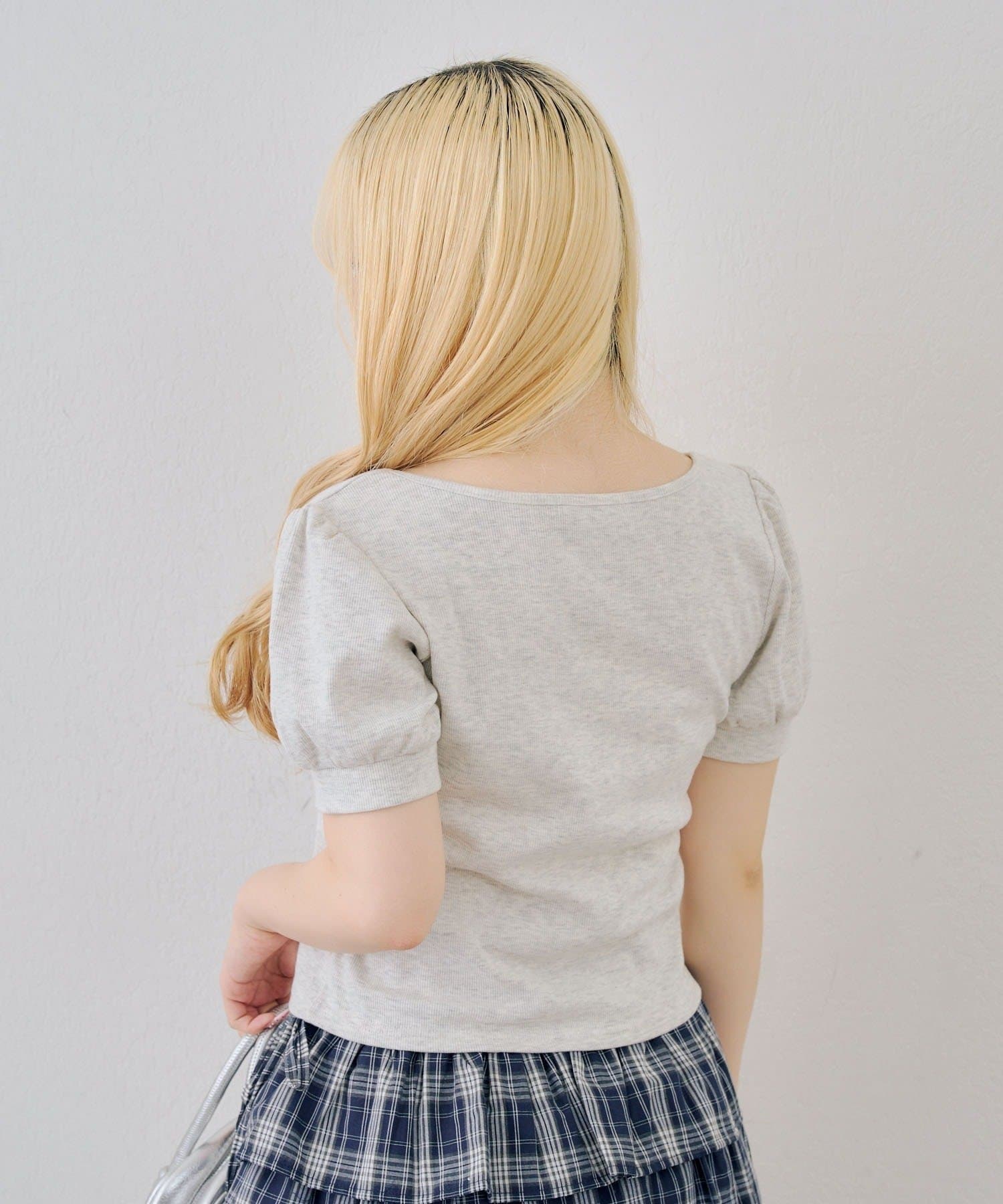 TOP > NICE CLAUP / OLIVE des OLIVE OUTLET > レディース > トップス > Tシャツ/カットソー > 【continuer】リボンドッキングパフT