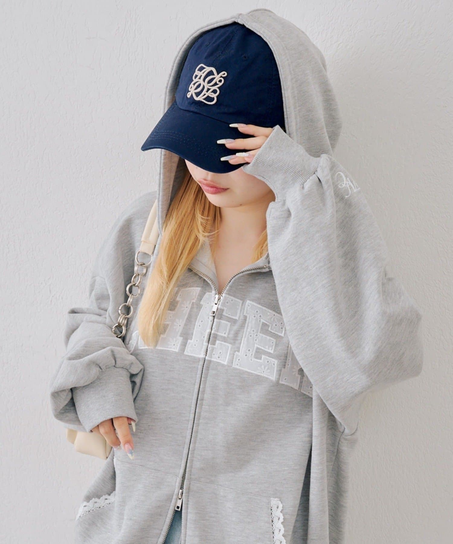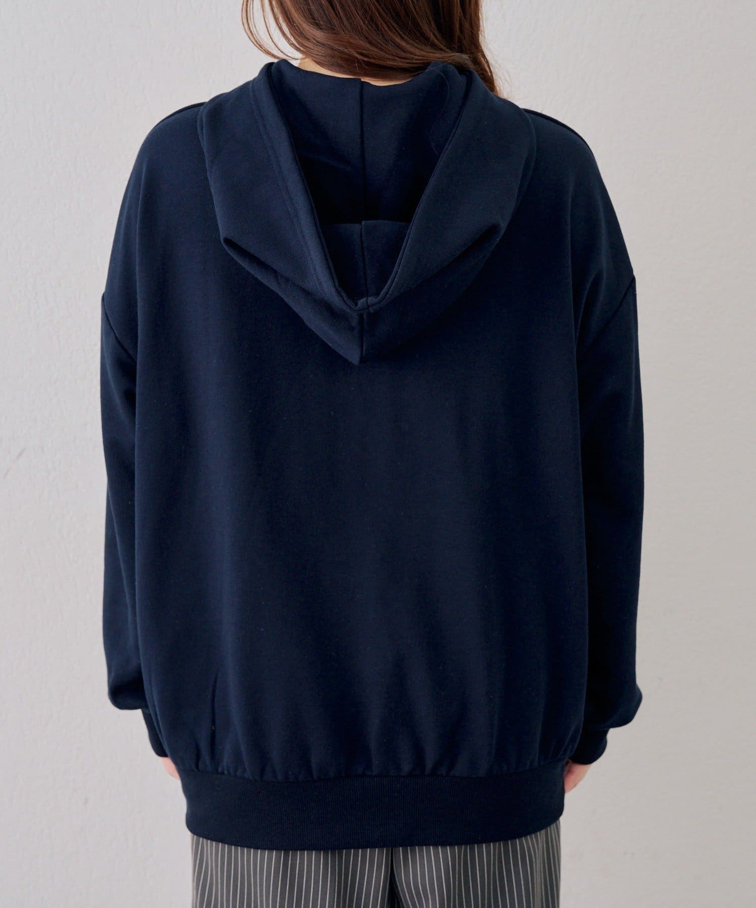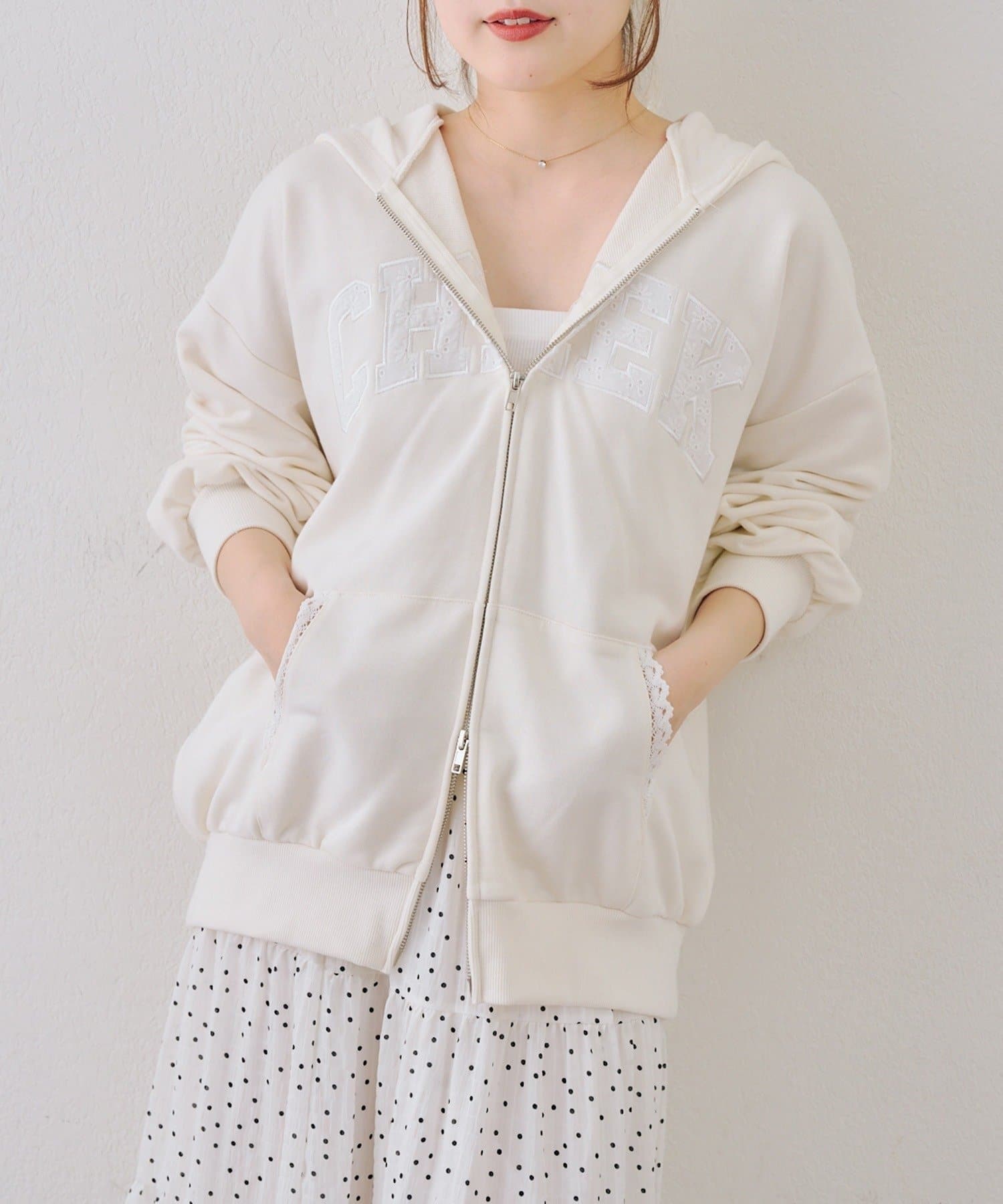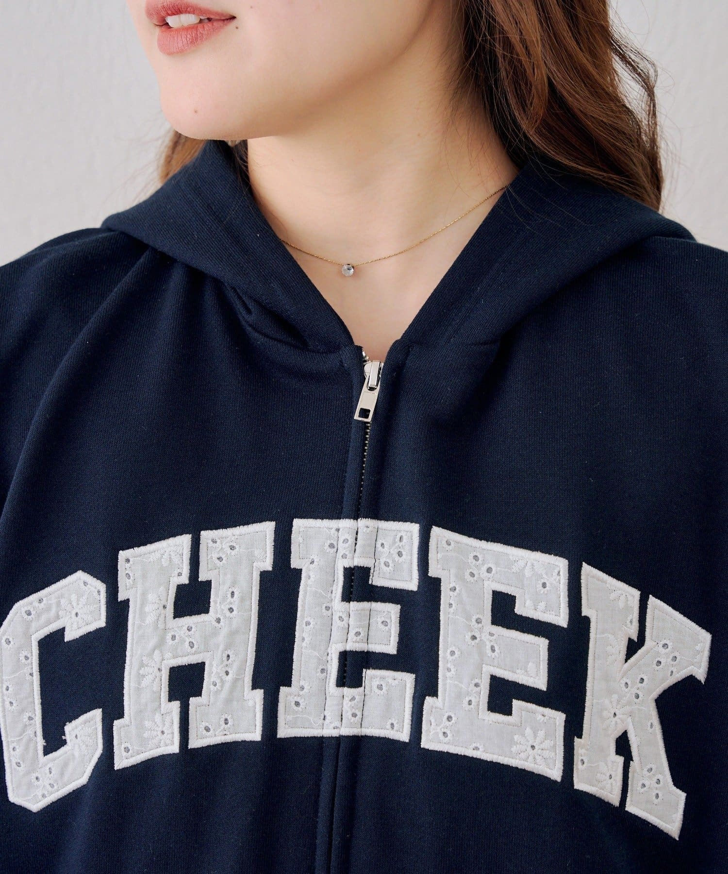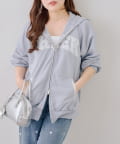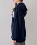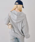 ・繊細な刺繍のロゴが映えるジップアップフーディ