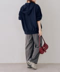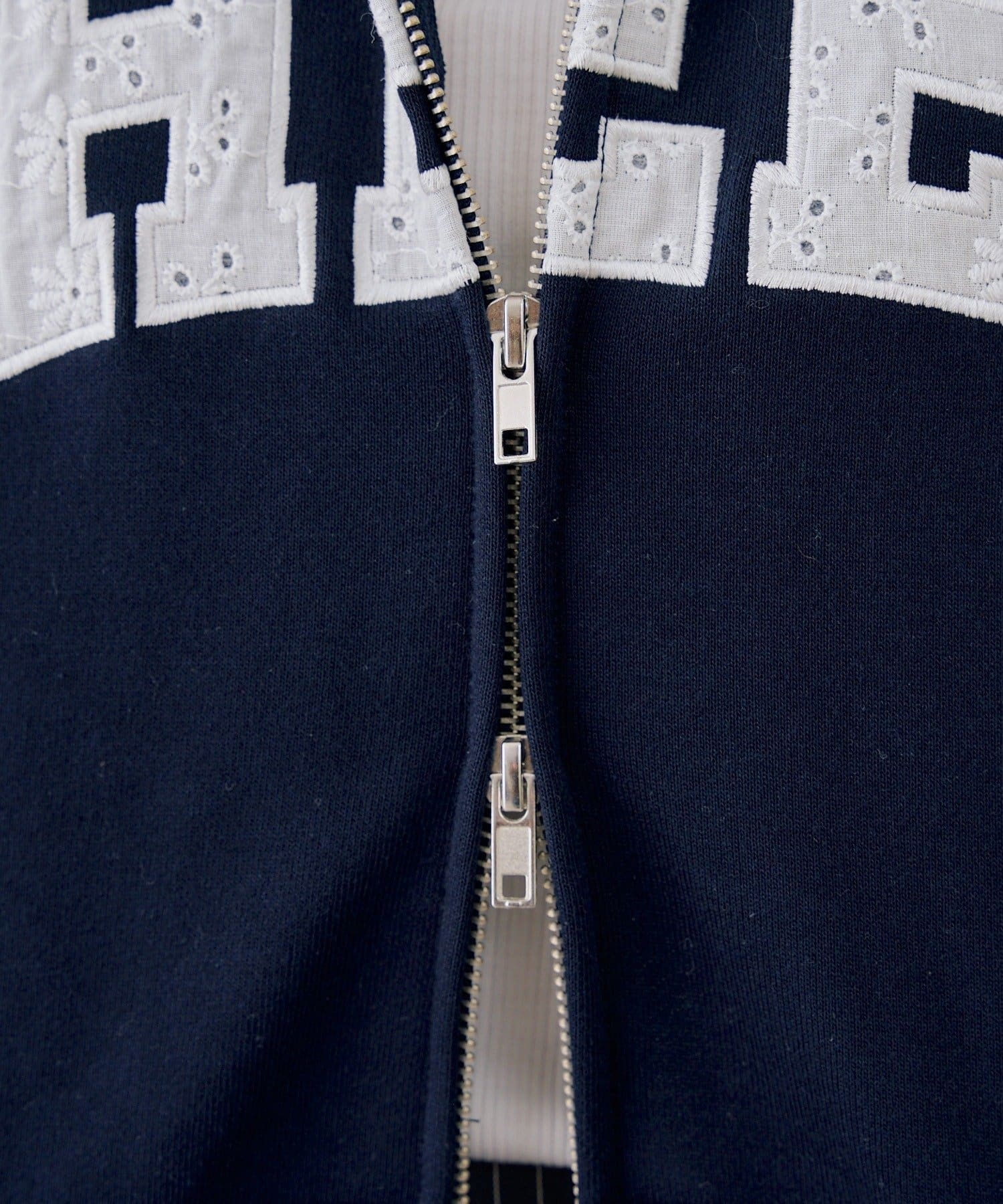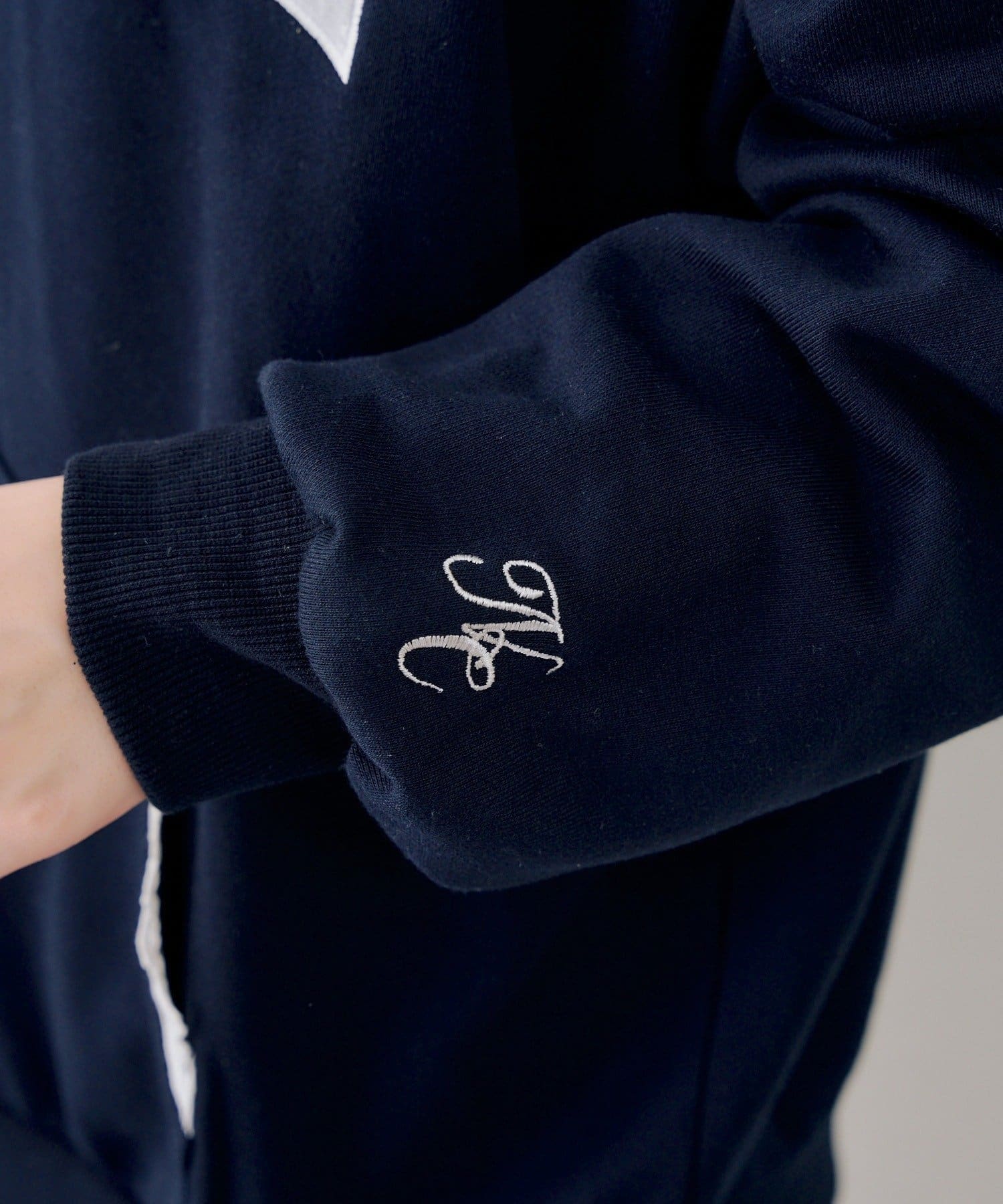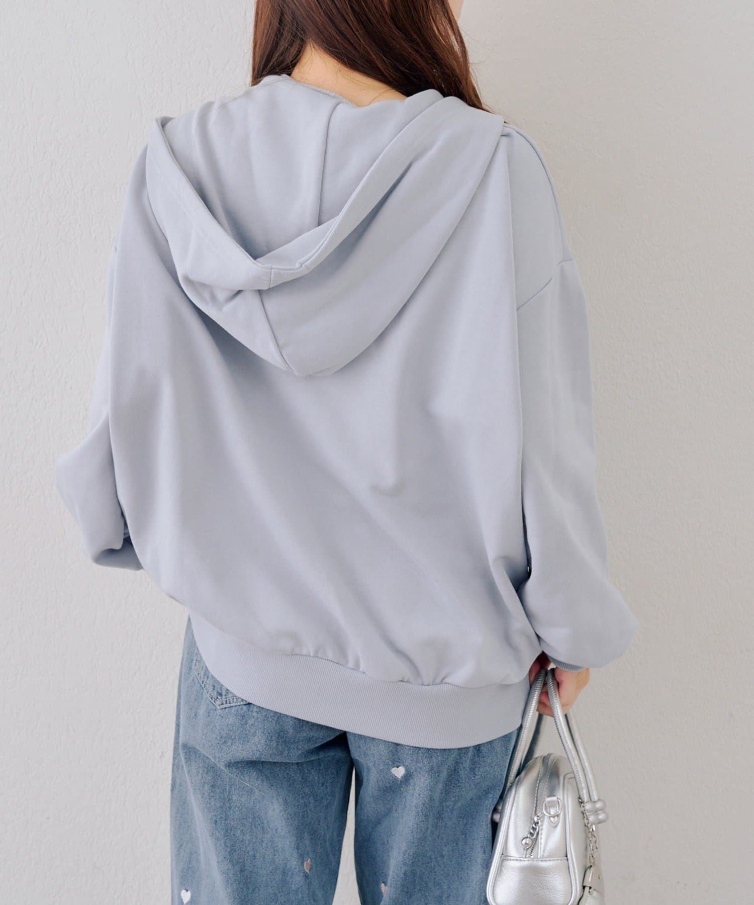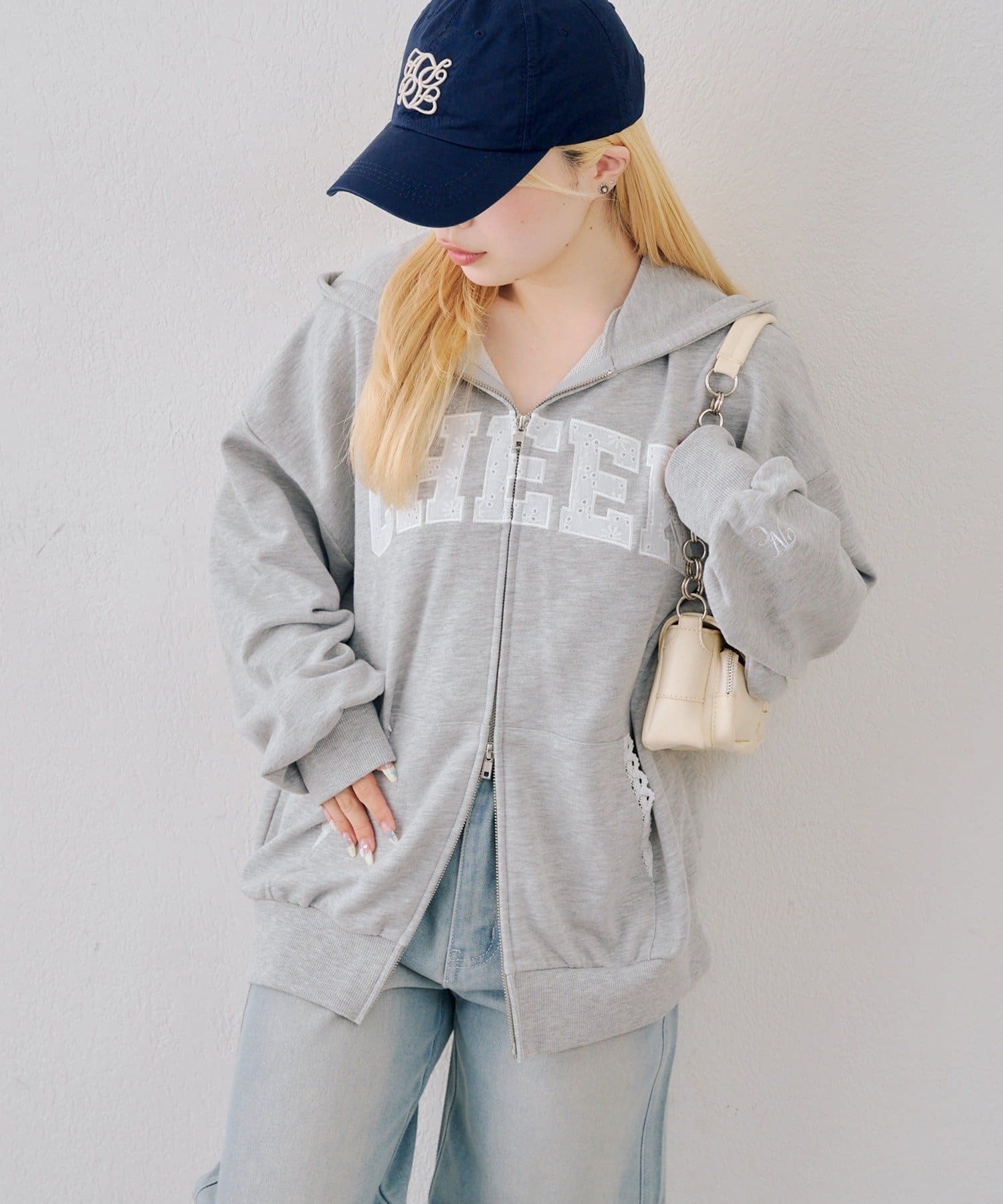 ・繊細な刺繍のロゴが映えるジップアップフーディ