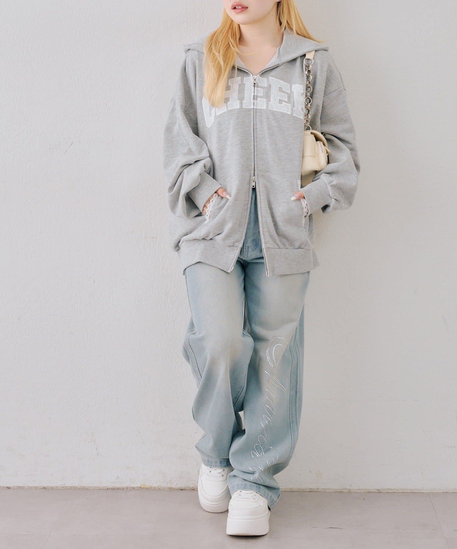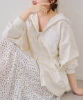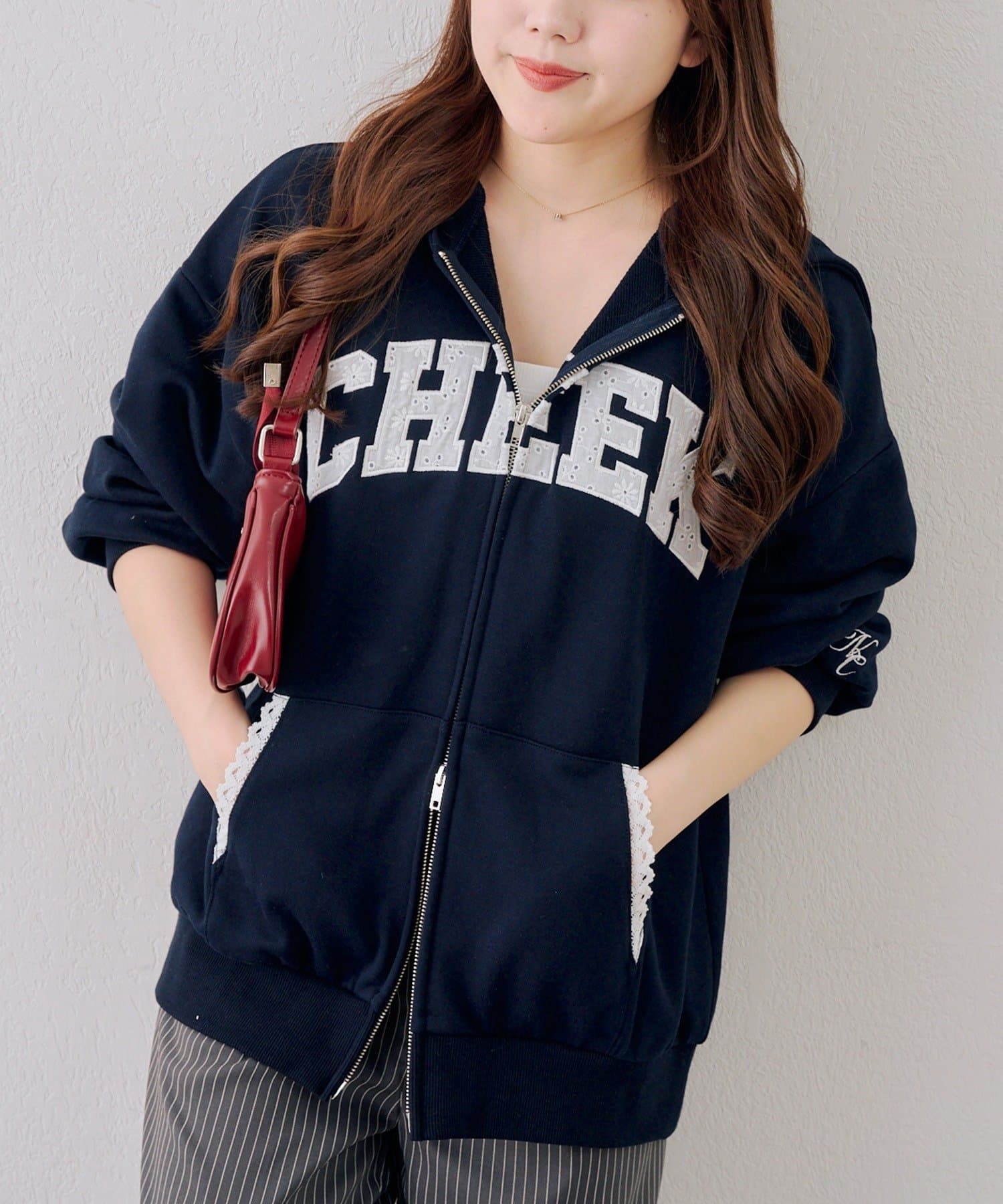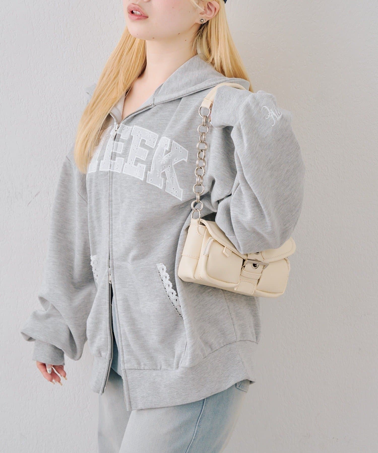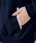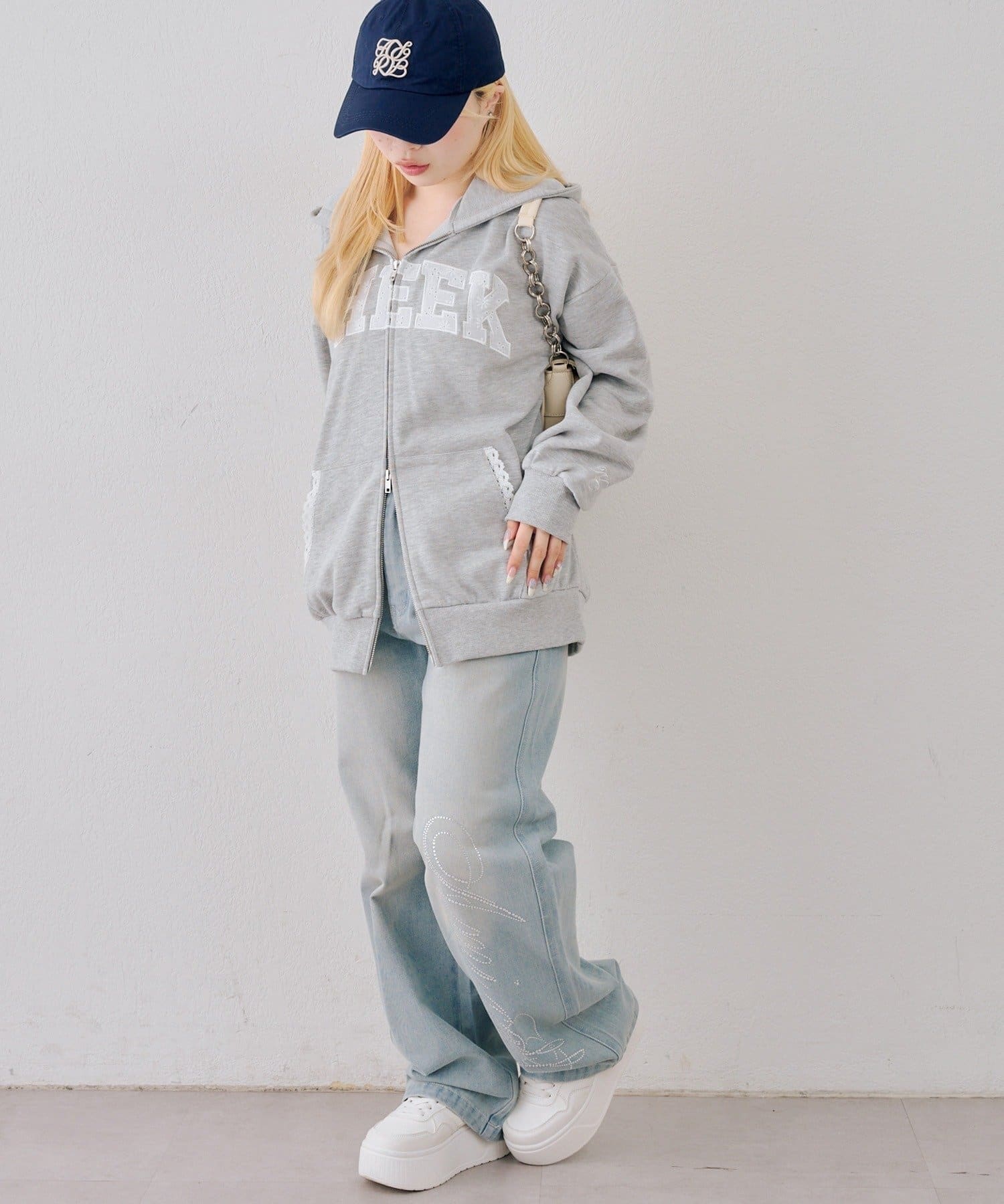 ・繊細な刺繍のロゴが映えるジップアップフーディ