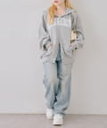 ・フーディにスウェットパンツを合わせ、全体をワントーンでまとめてリラックス感を演出。キャップを被れば、こなれた印象に