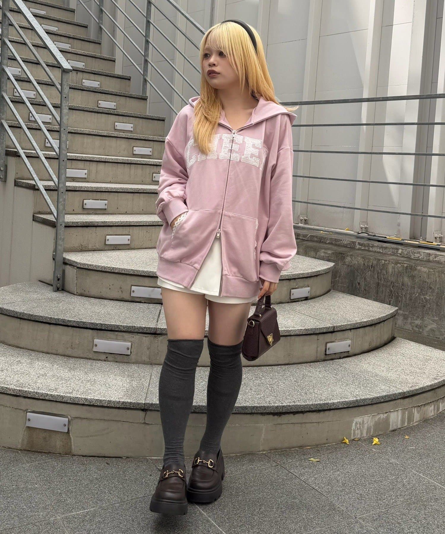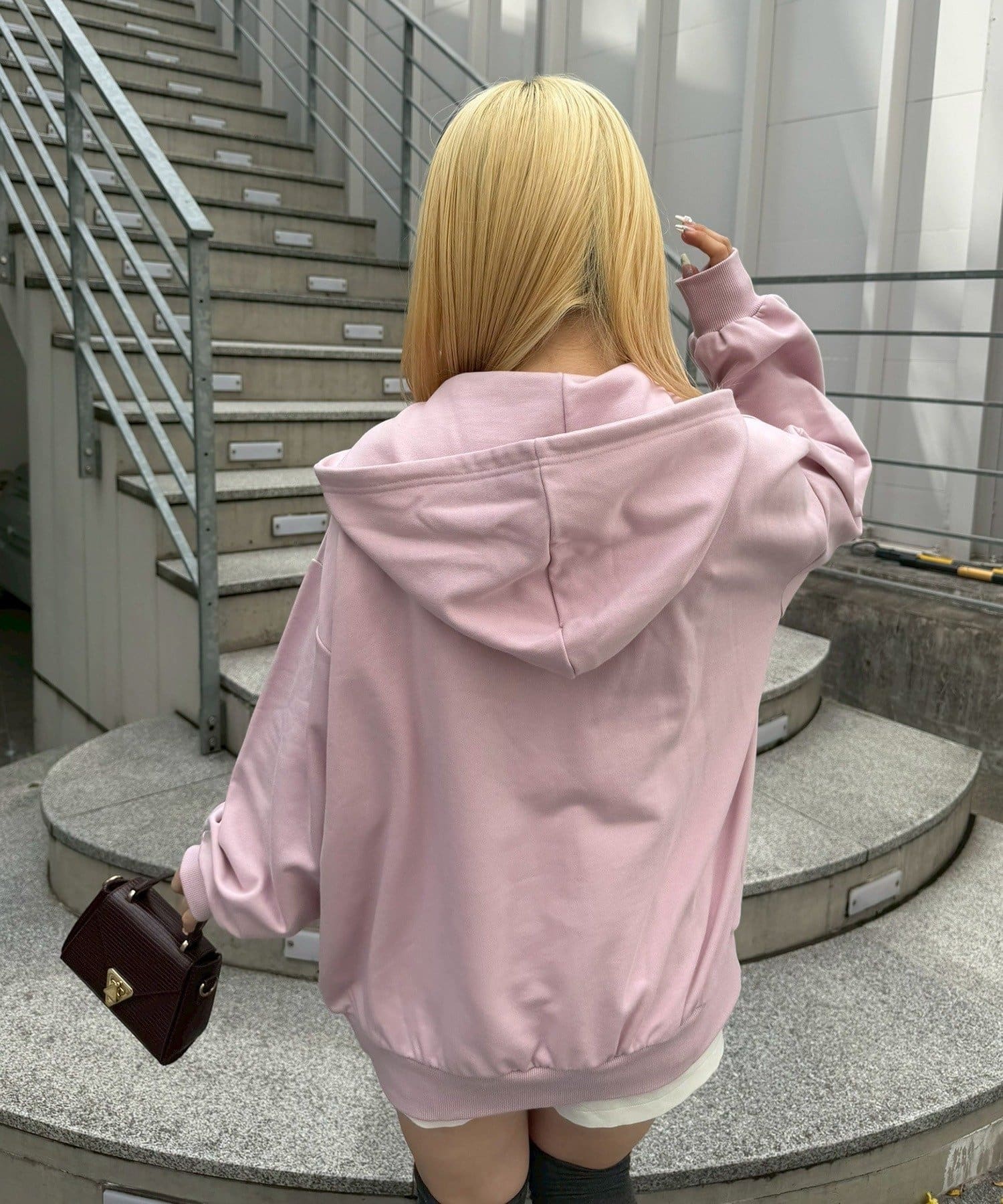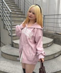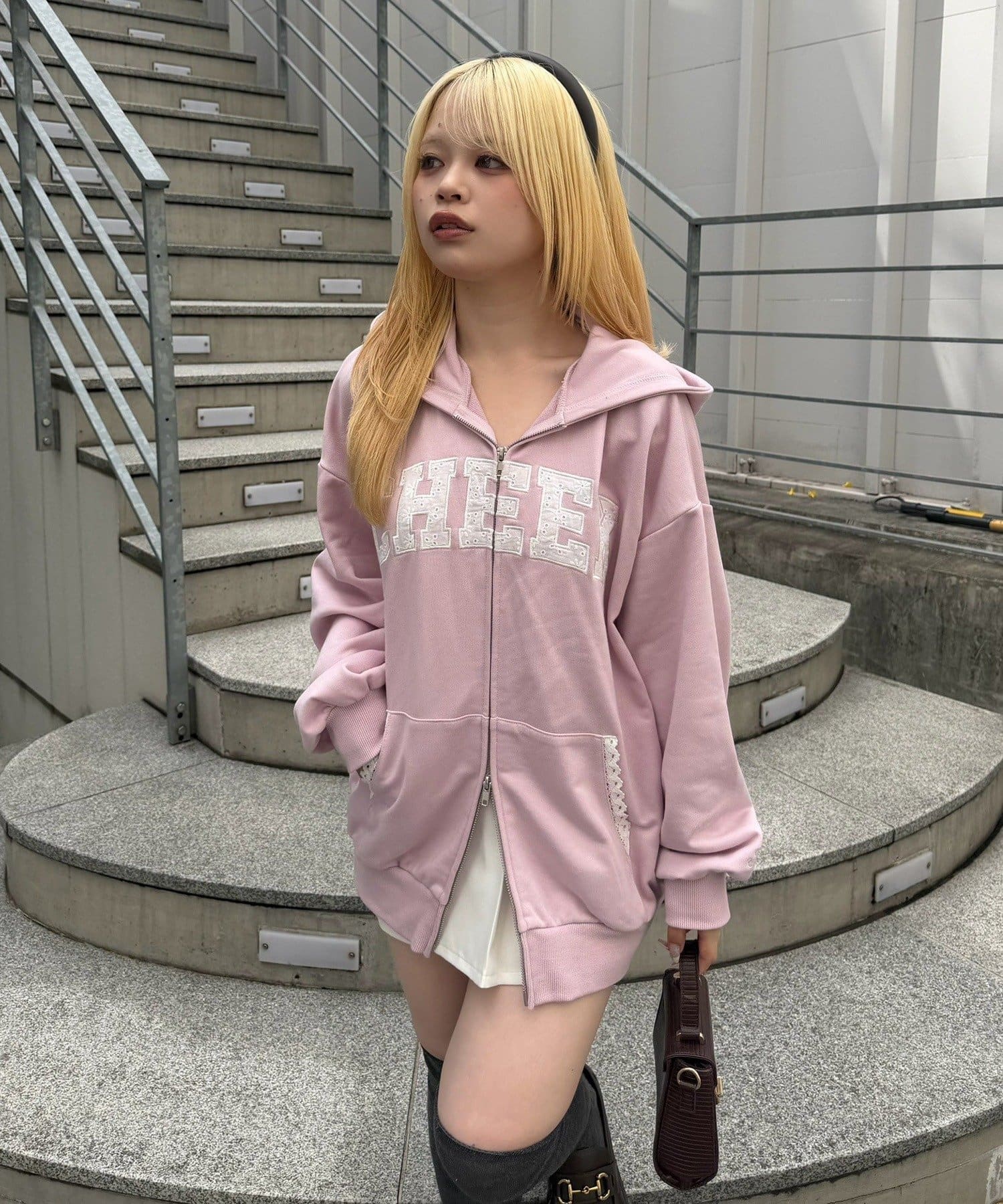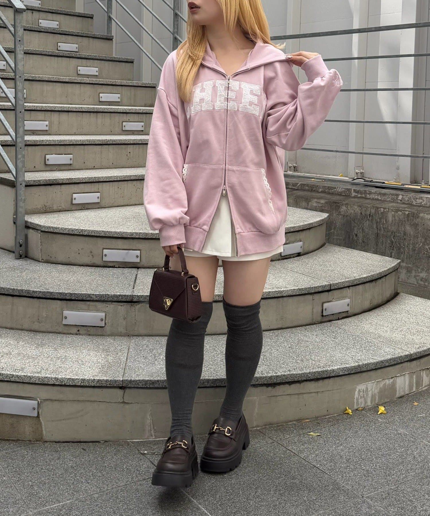 ・フーディにフレアスカートを合わせて、足元はスニーカーでカジュアルダウン。甘すぎない、大人のミックススタイルを楽しんで