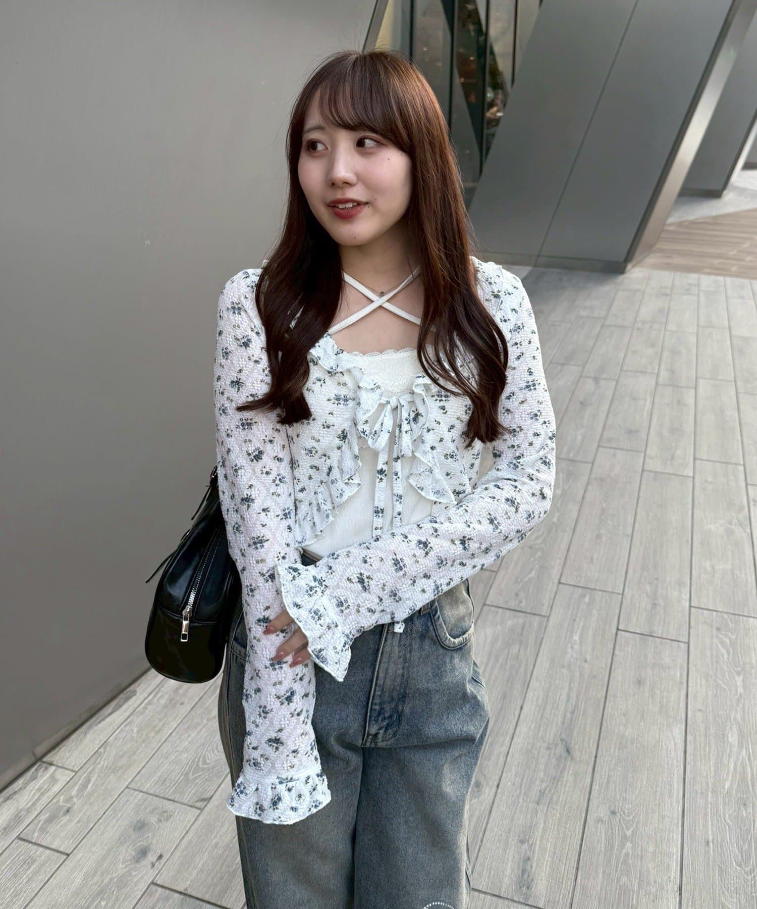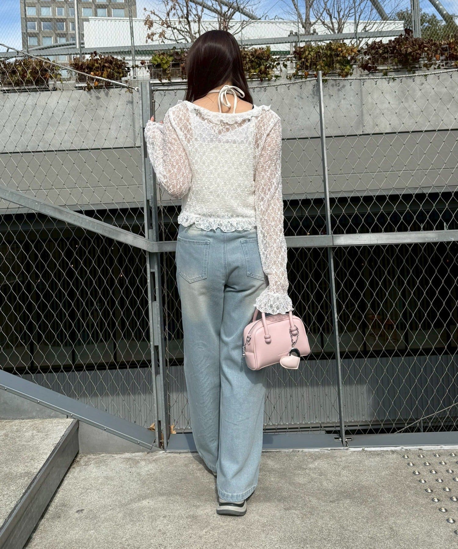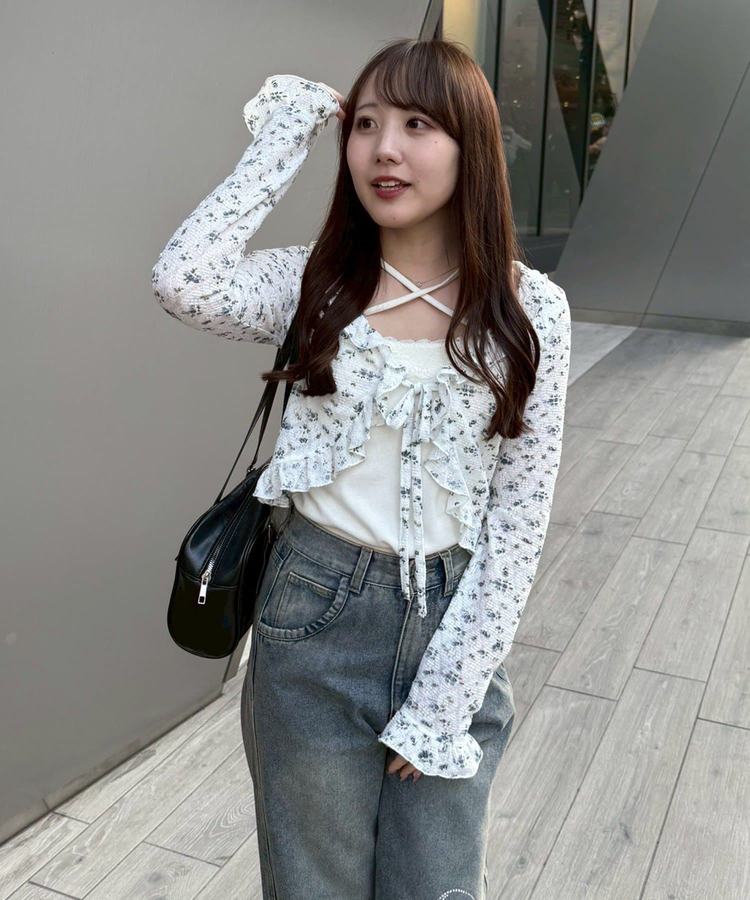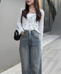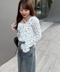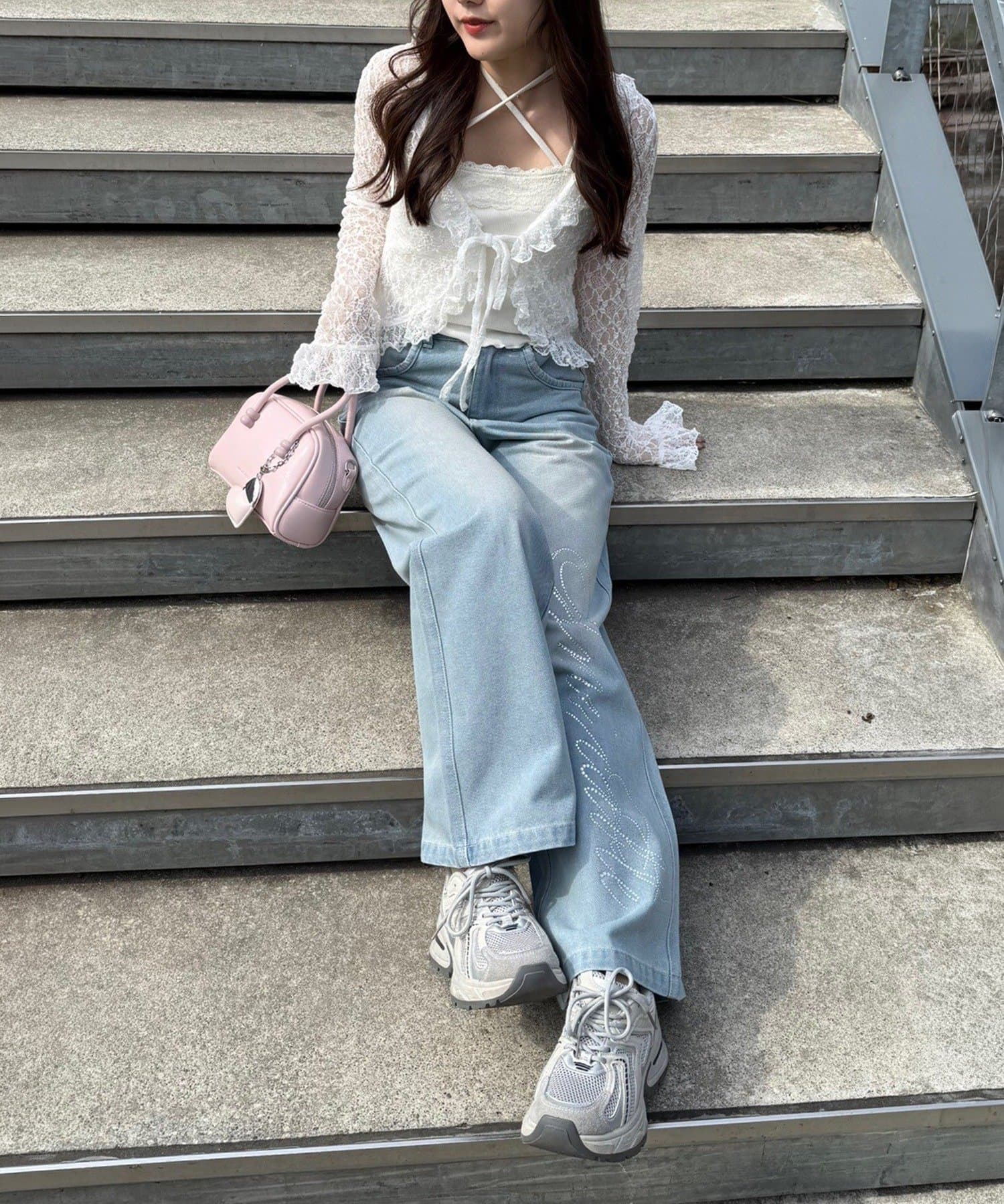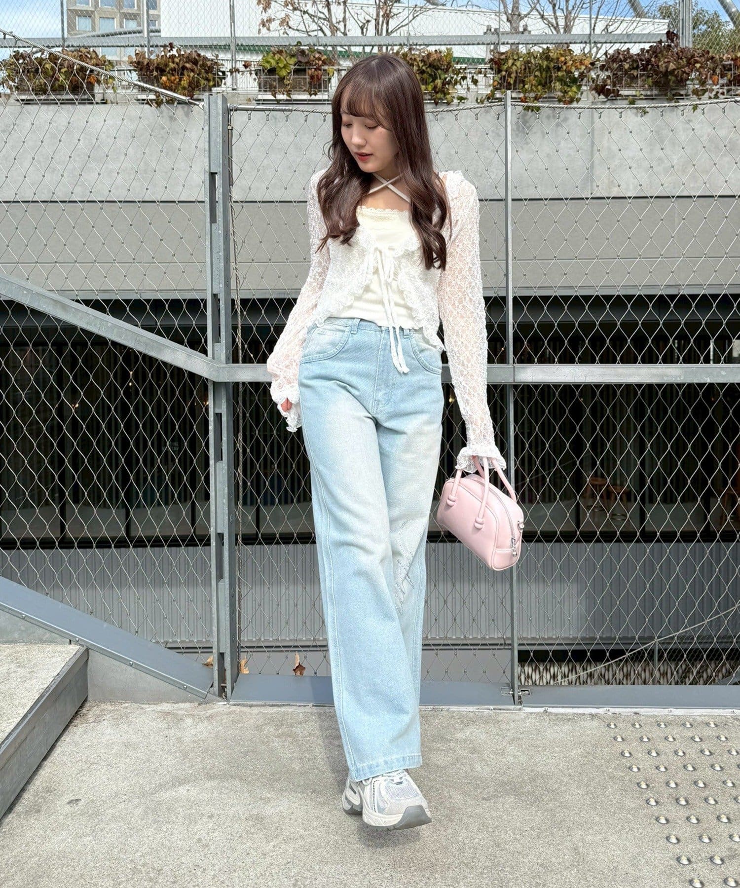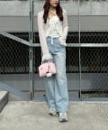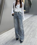 ・トップスにデニムを合わせれば、甘すぎないカジュアルな着こなしに