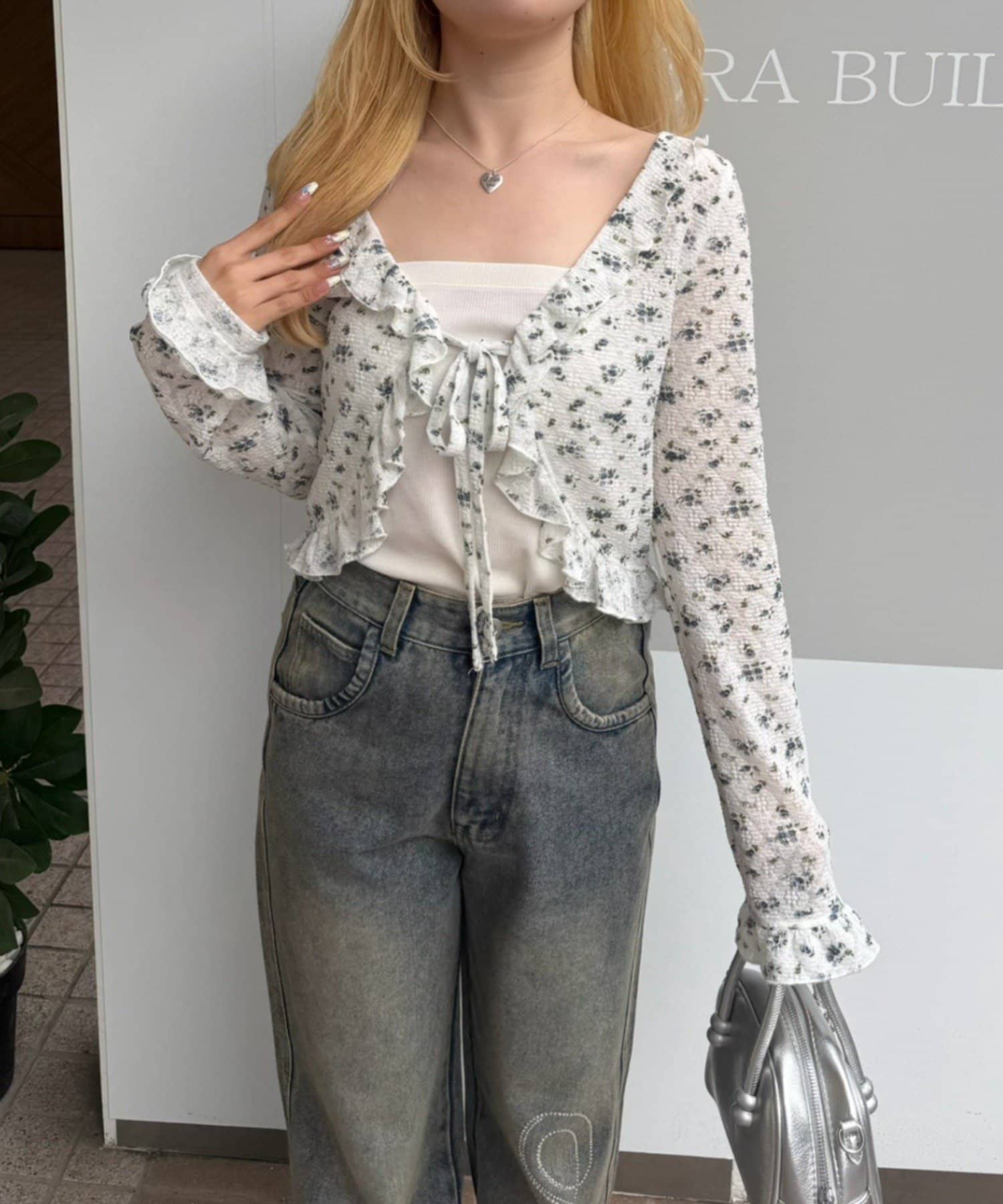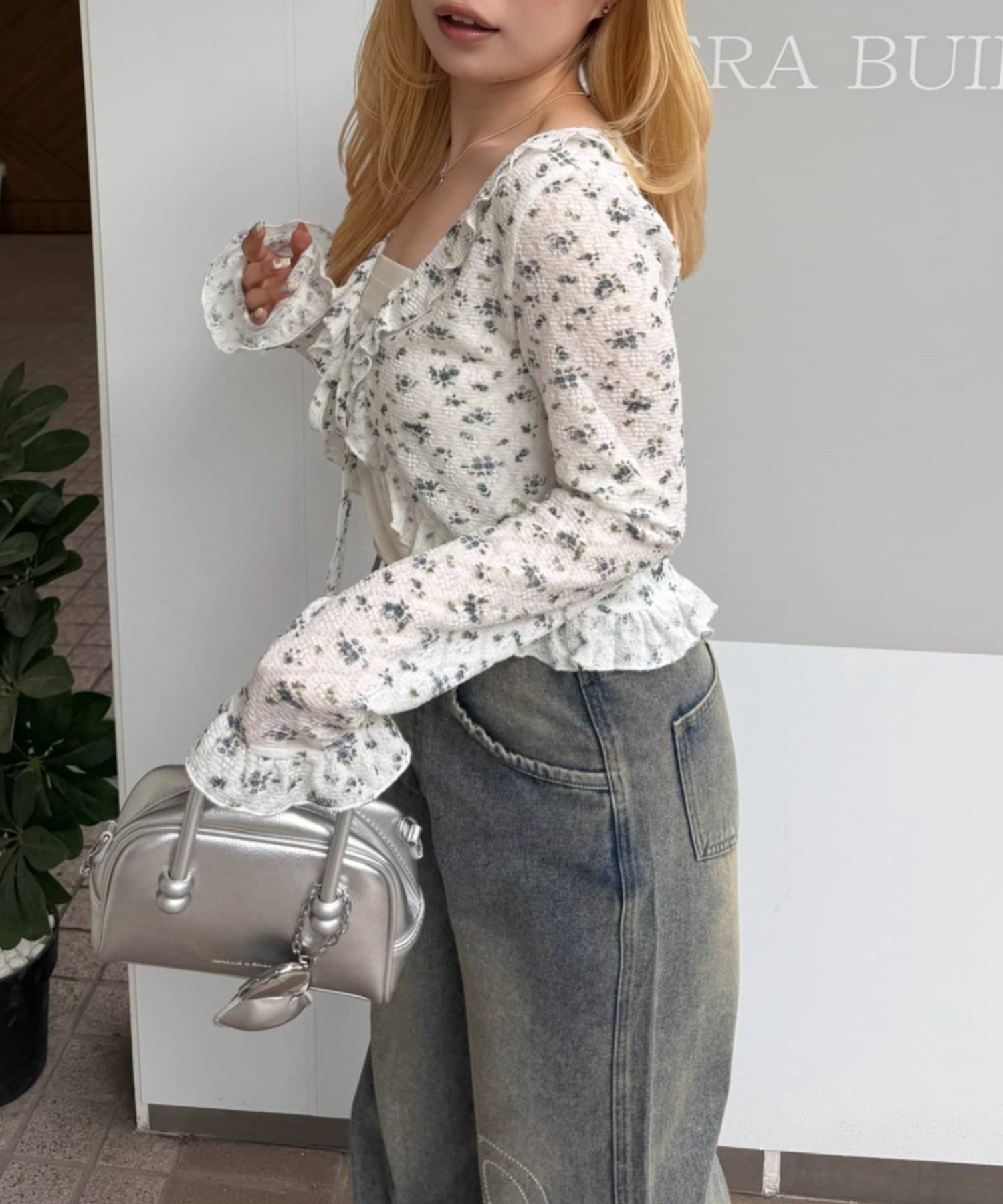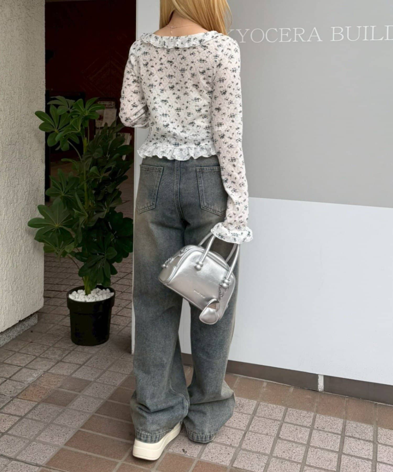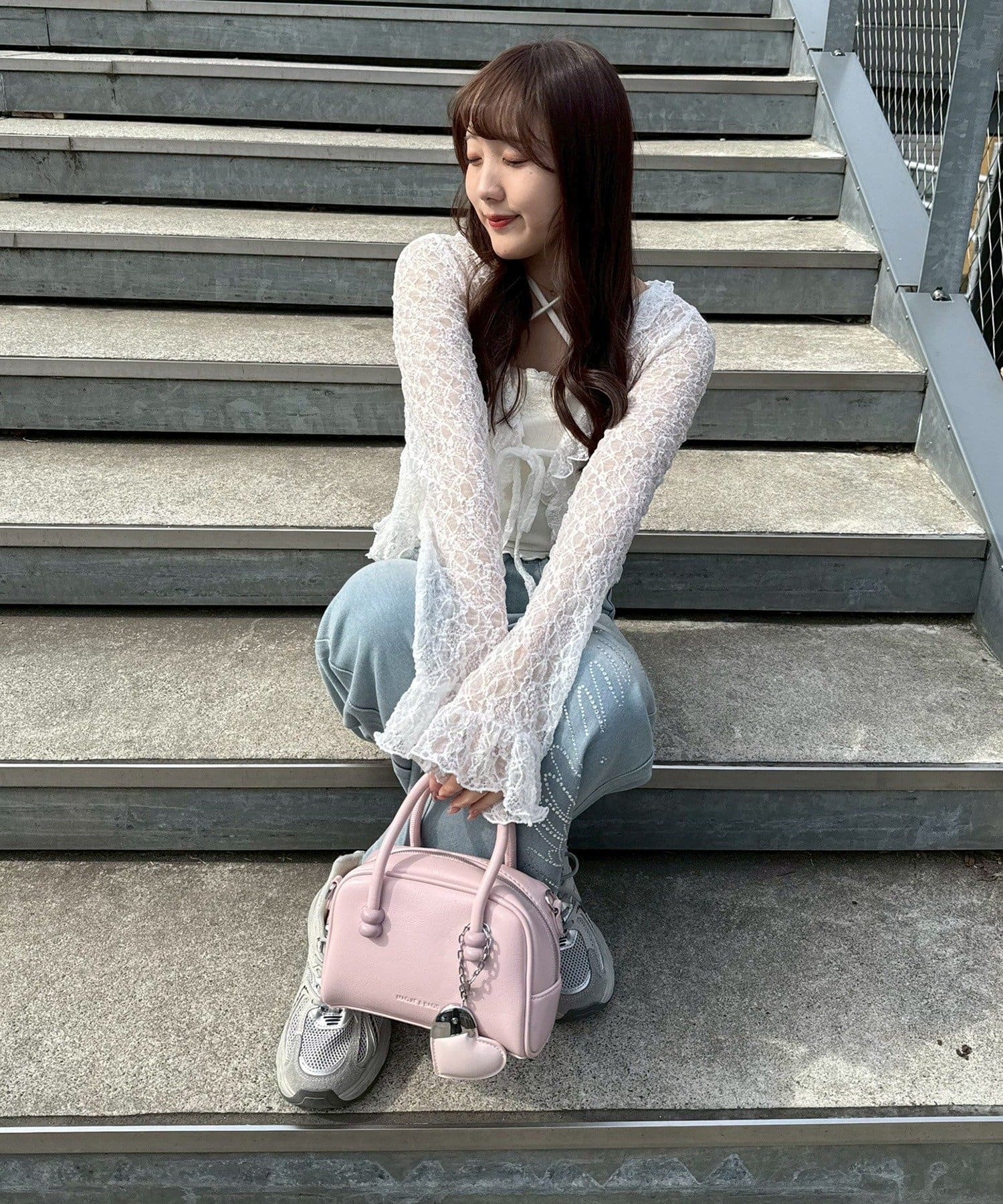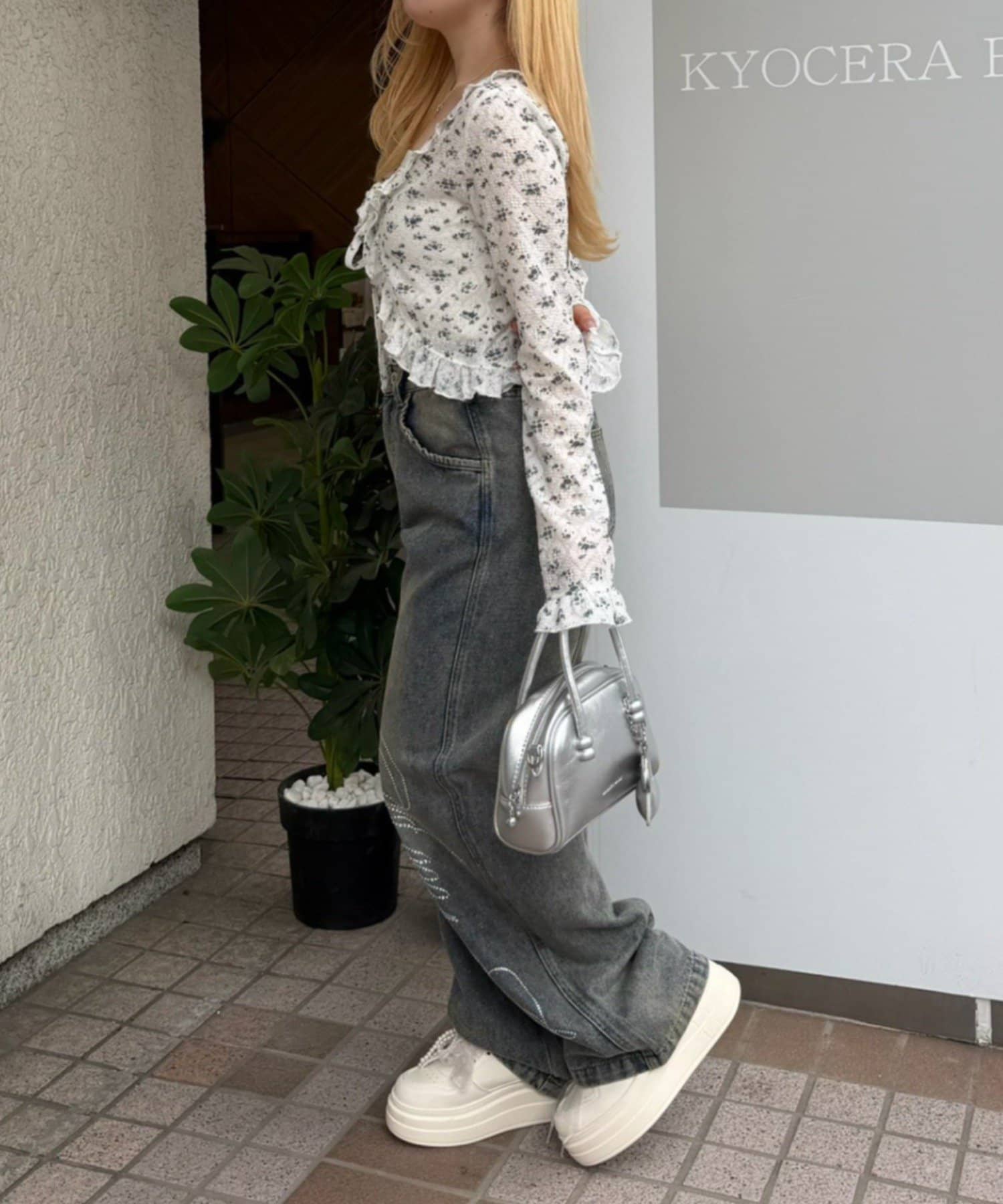 ・トップスにデニムを合わせれば、甘すぎないカジュアルな着こなしに