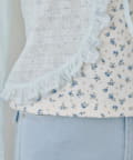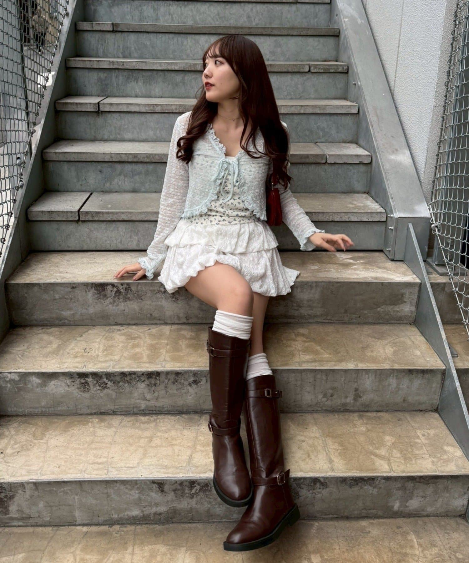 ・小花柄のワンピースにレーストップスを重ねて、とことん甘く
