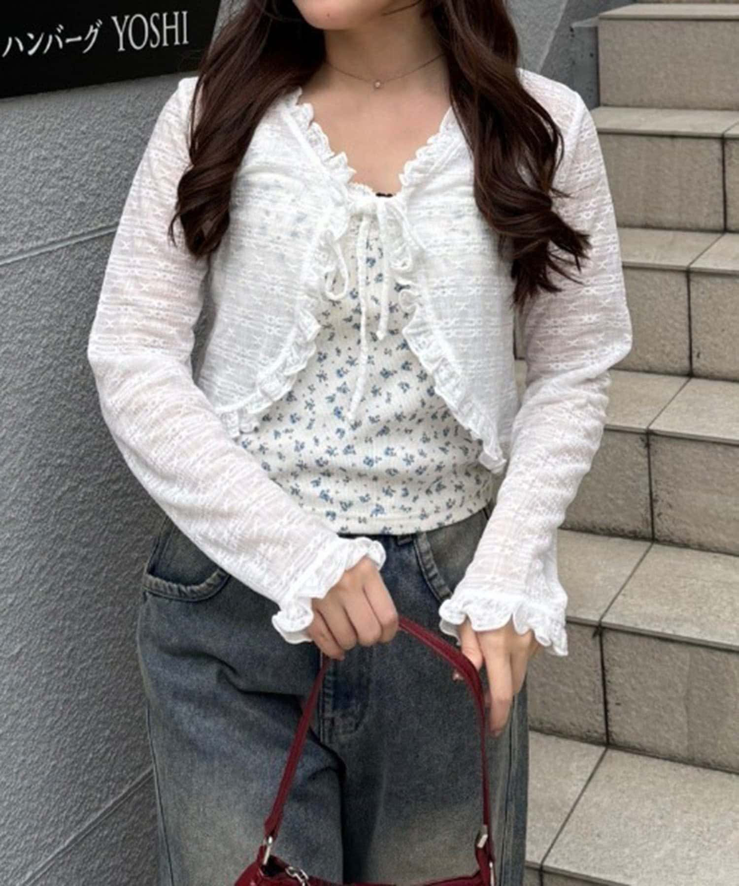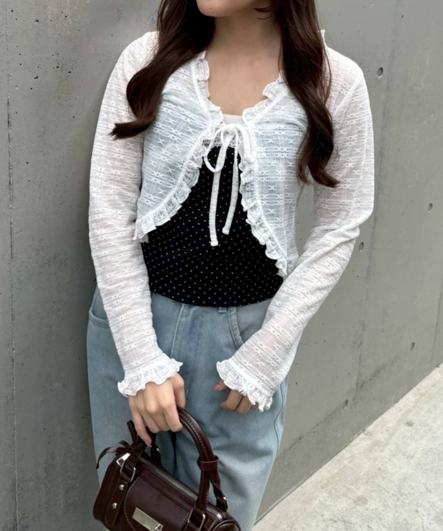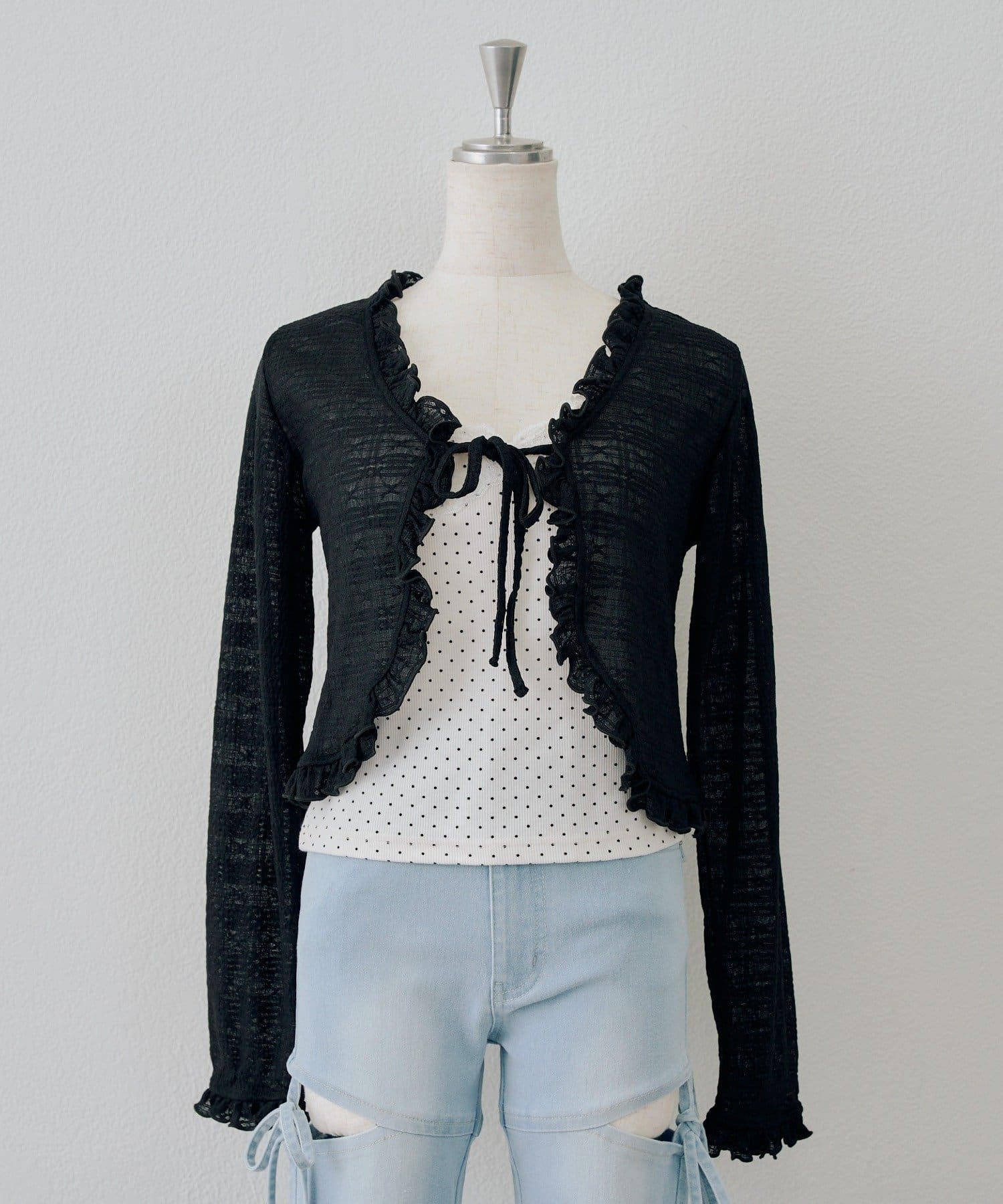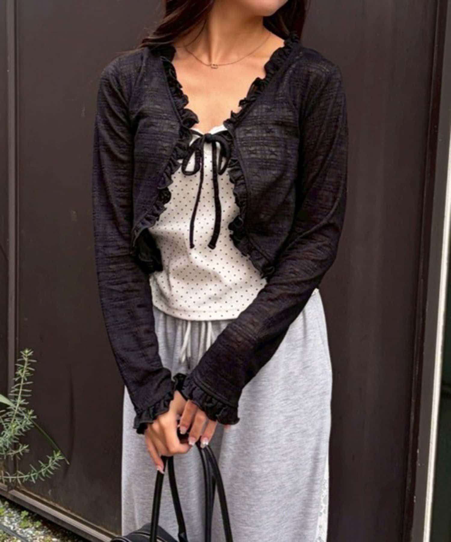 ・フリルがあしらわれたデザインは、羽織るだけでこなれ感を演出します