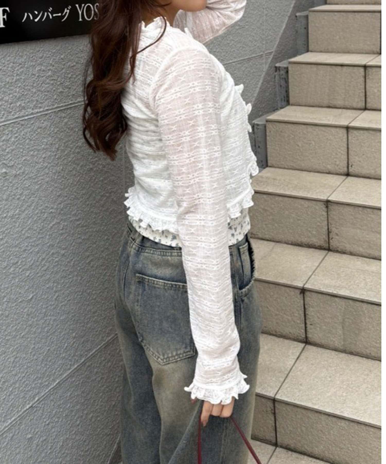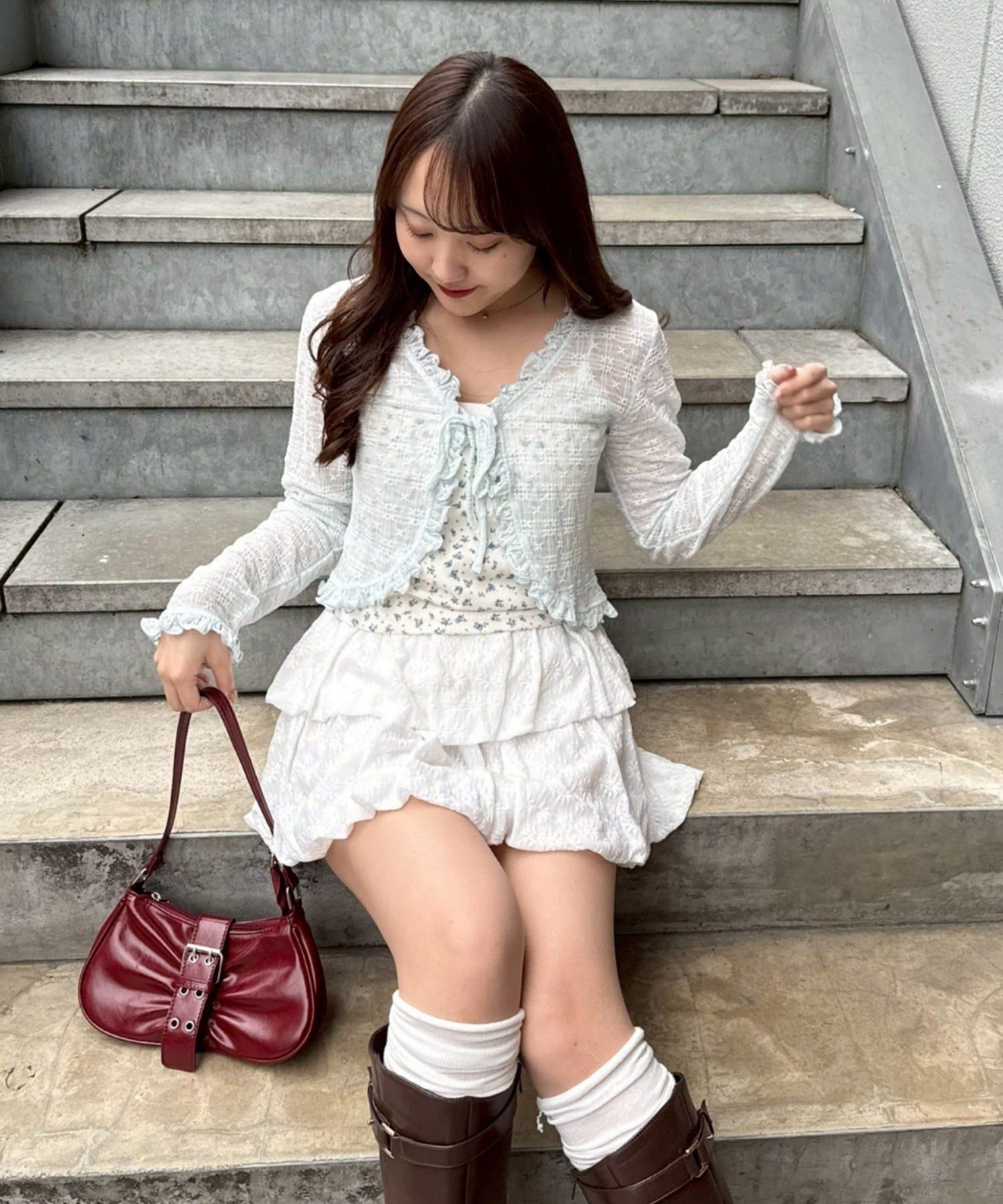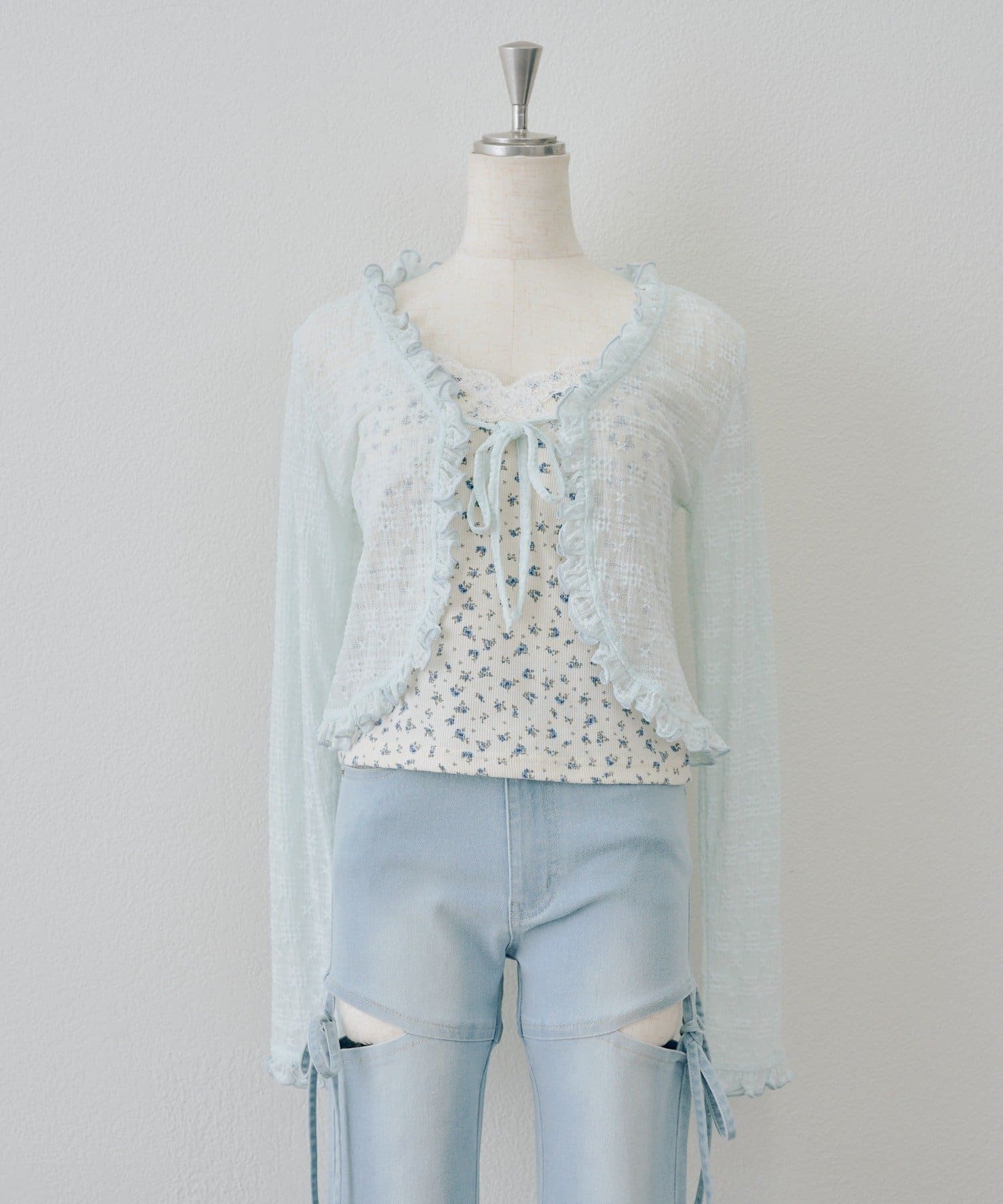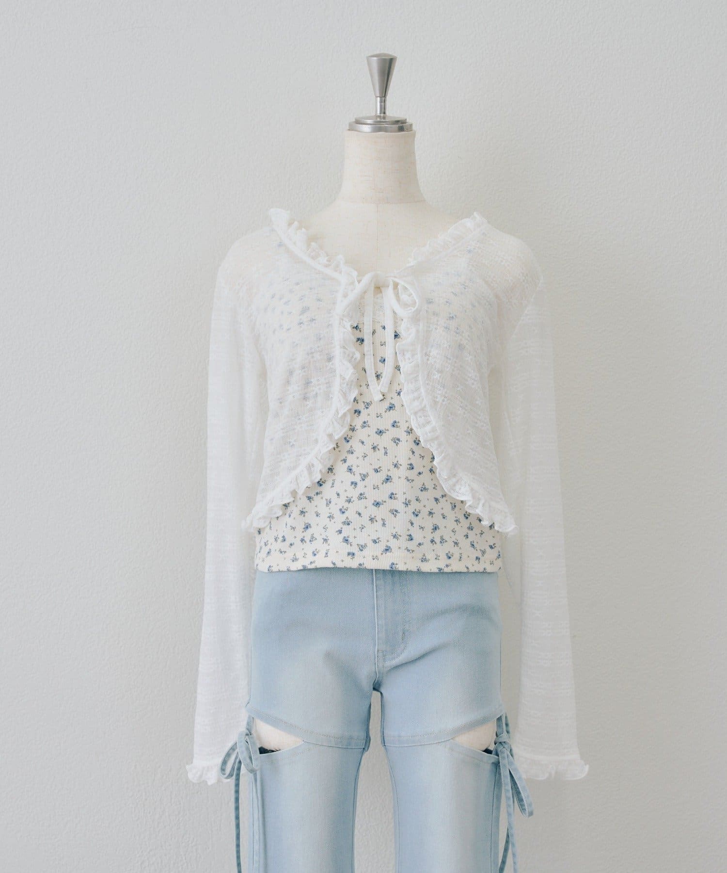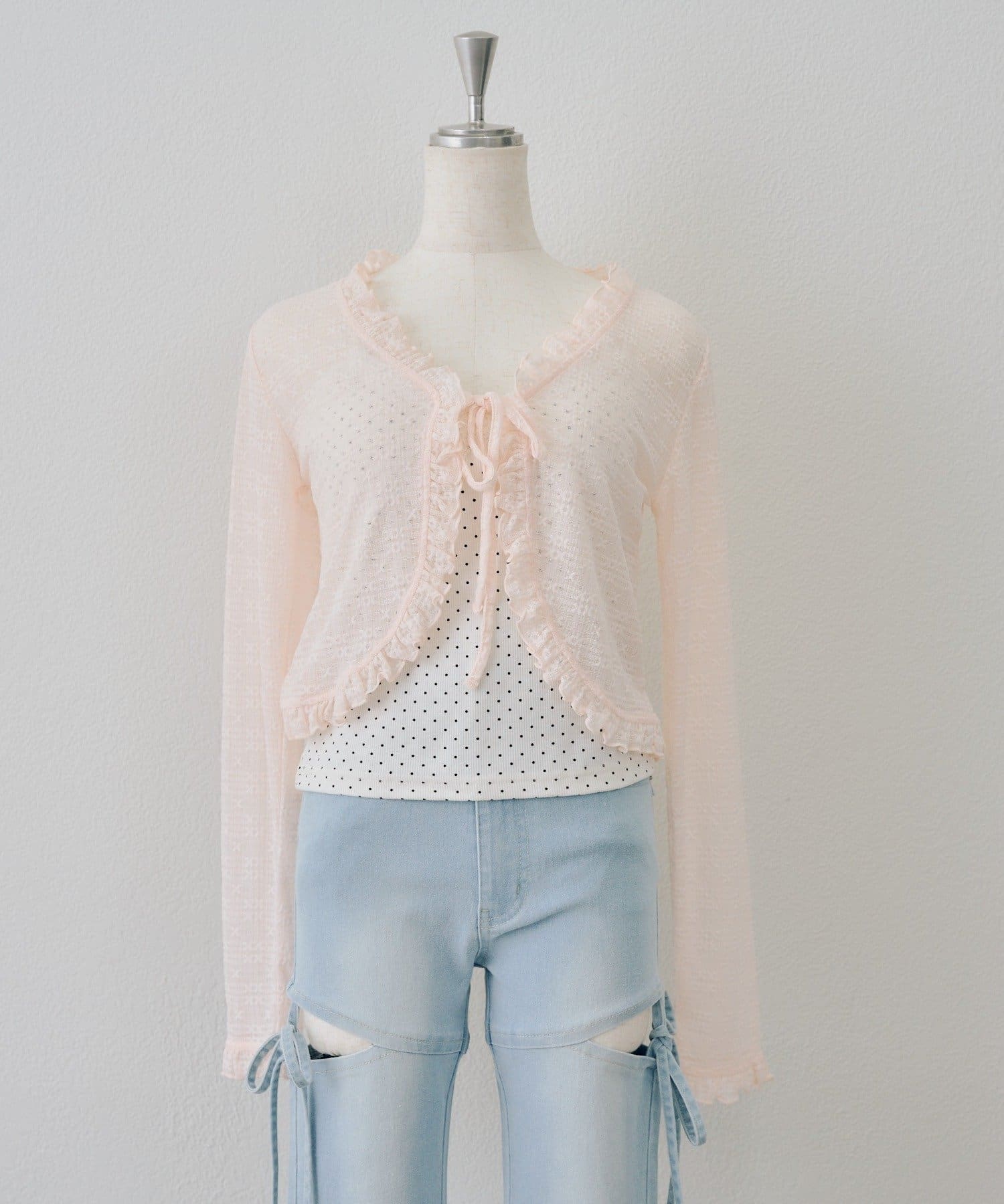 ・フリルがあしらわれたデザインは、羽織るだけでこなれ感を演出します