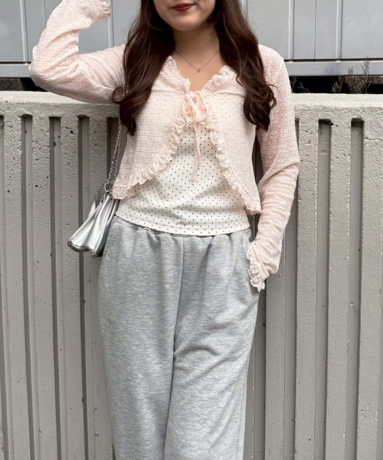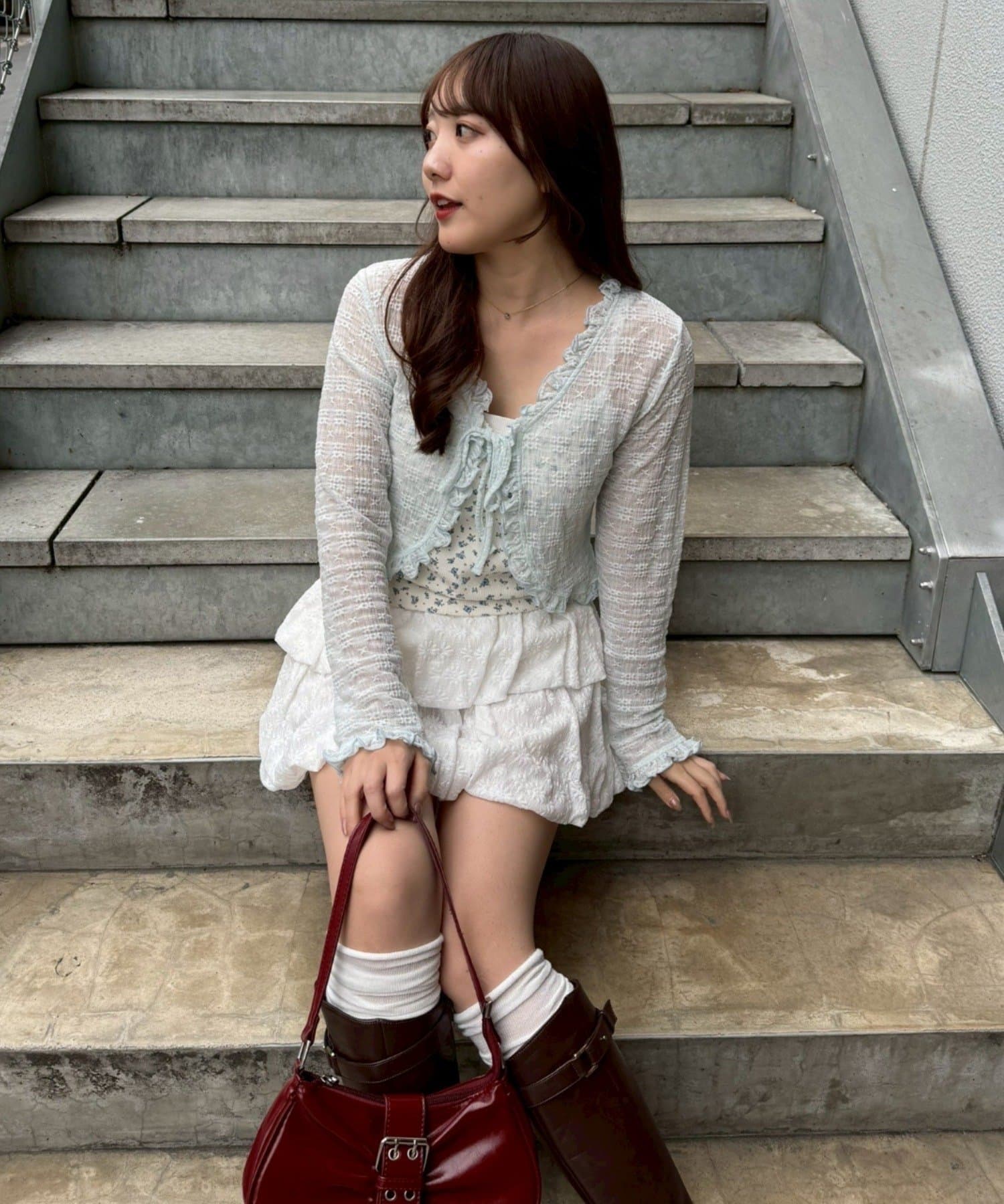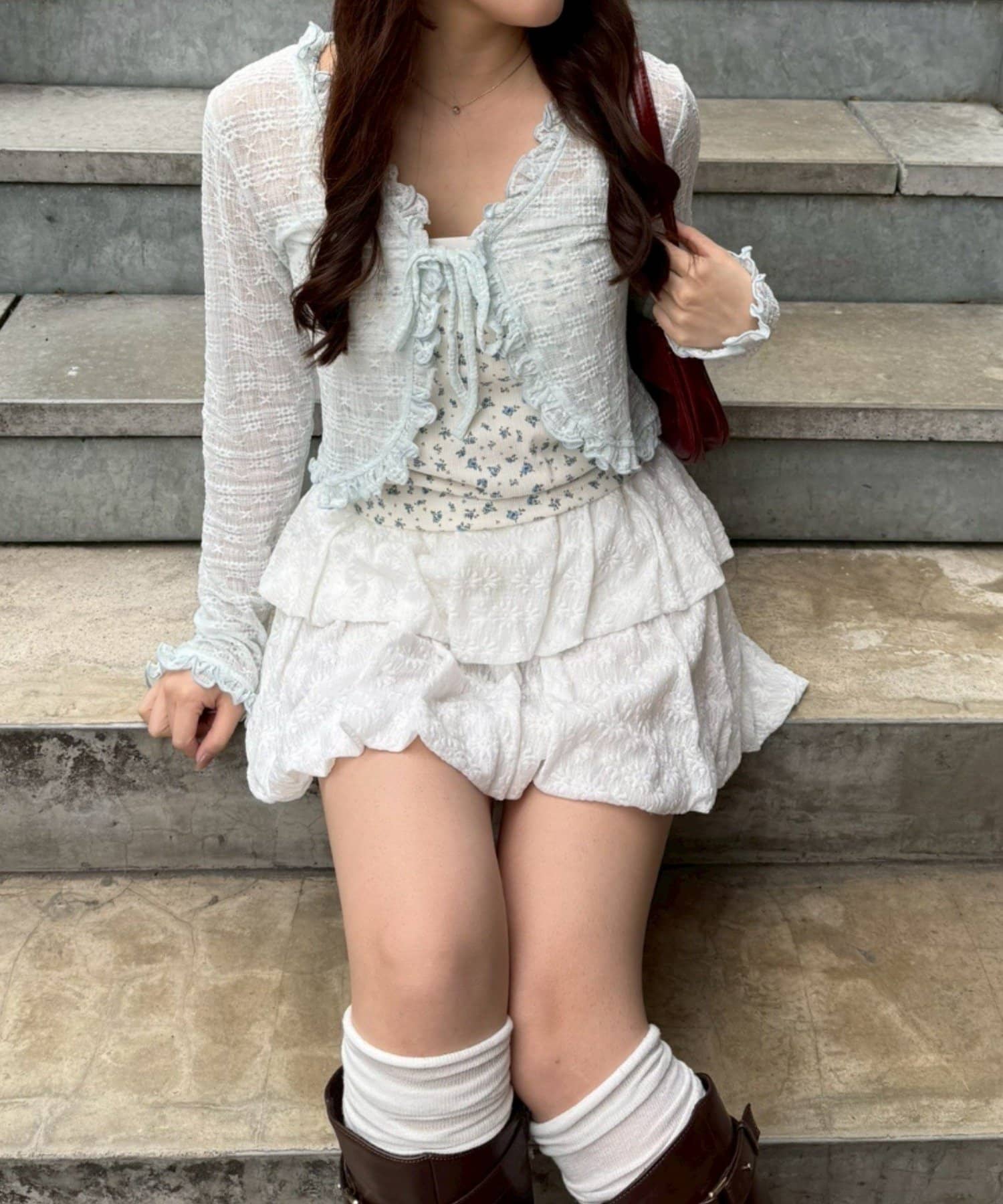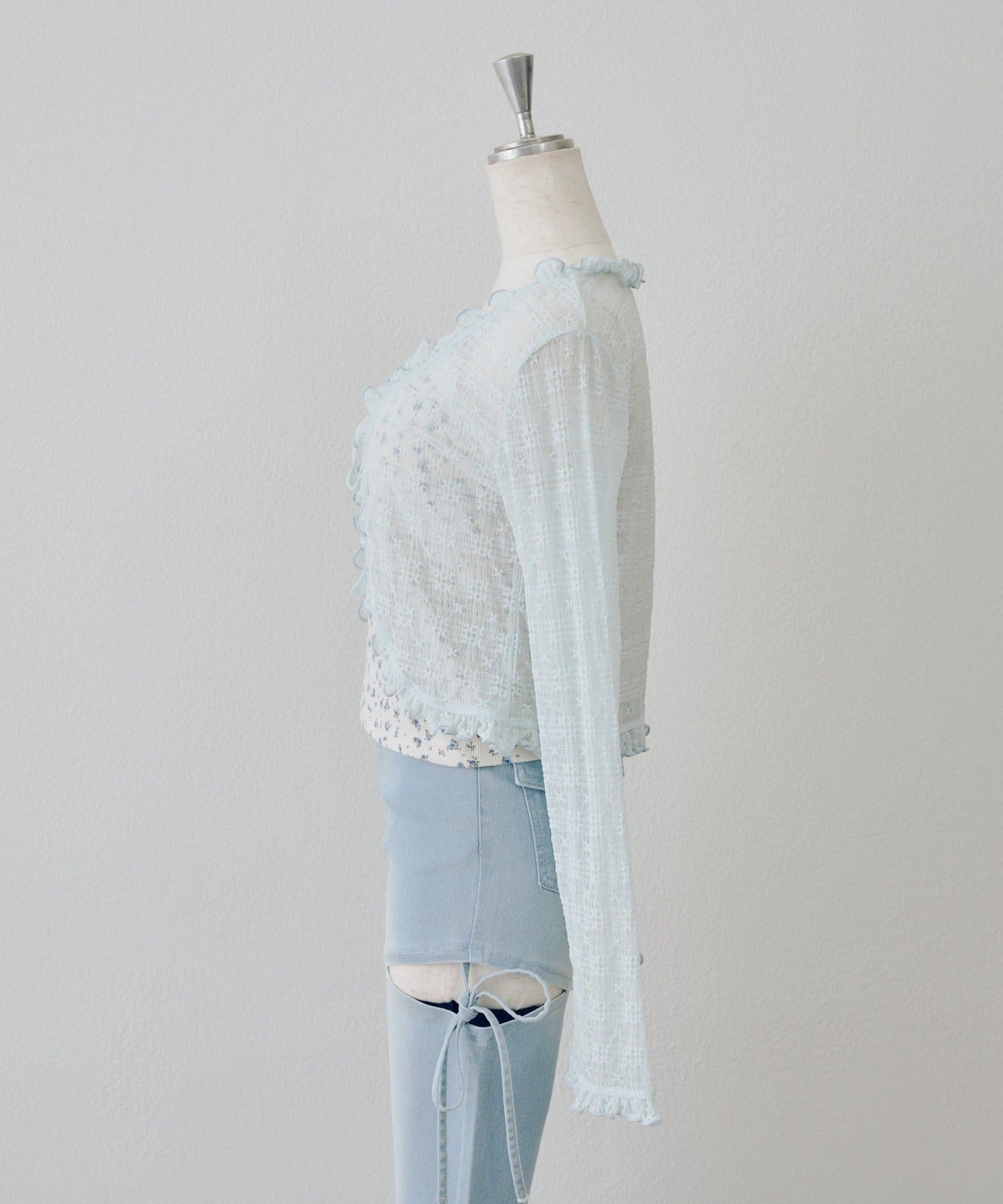 ・フリルがあしらわれたデザインは、羽織るだけでこなれ感を演出します