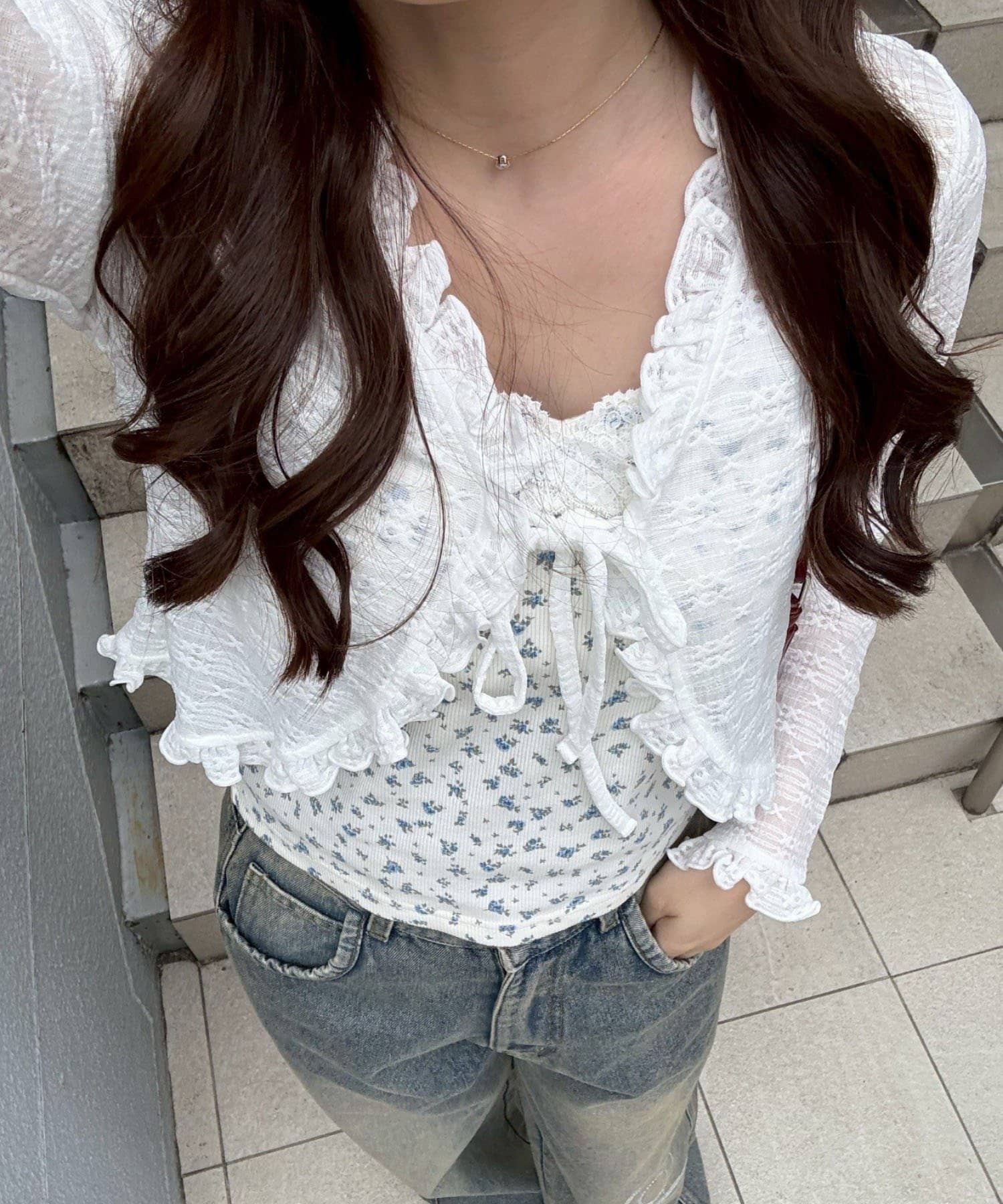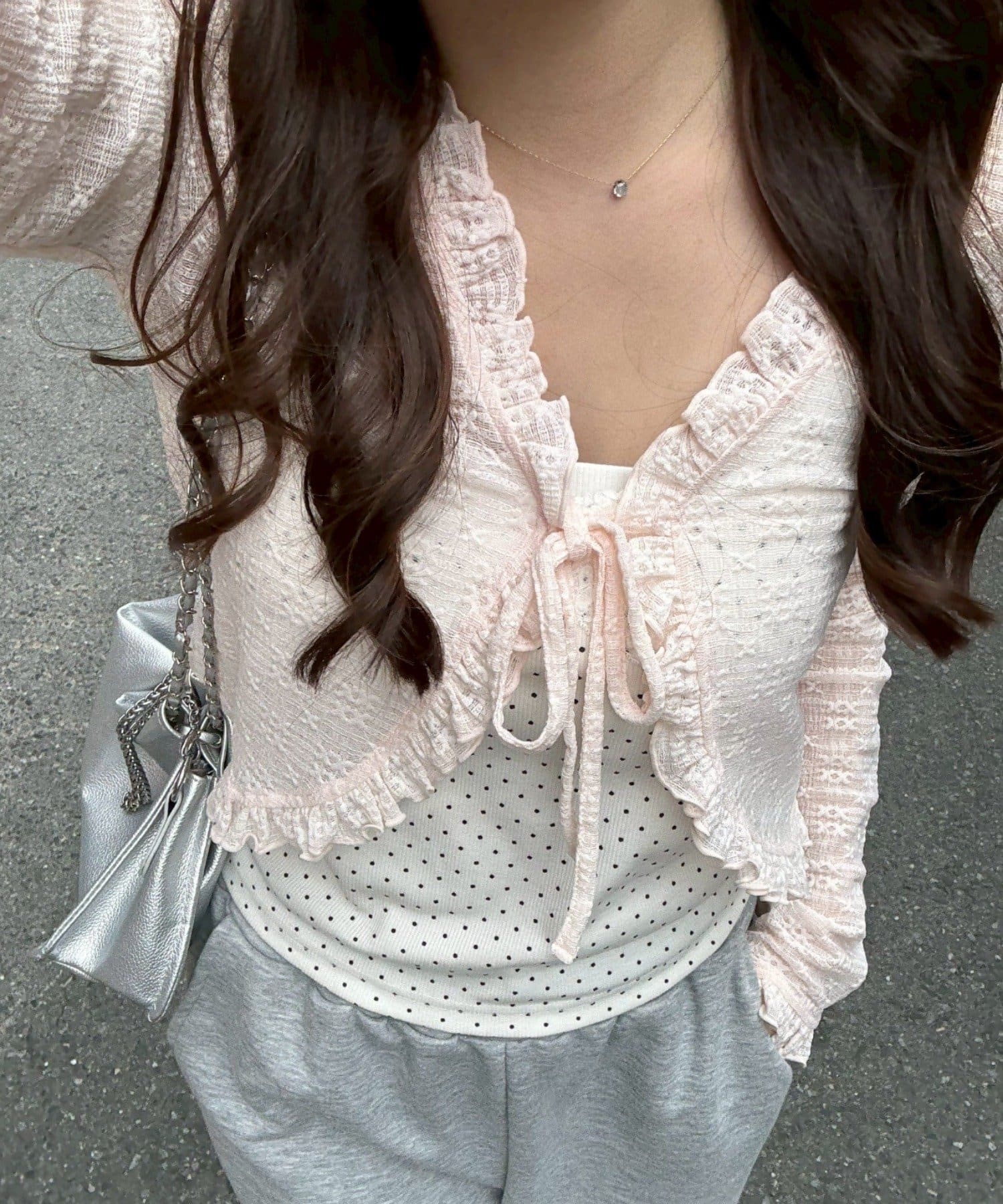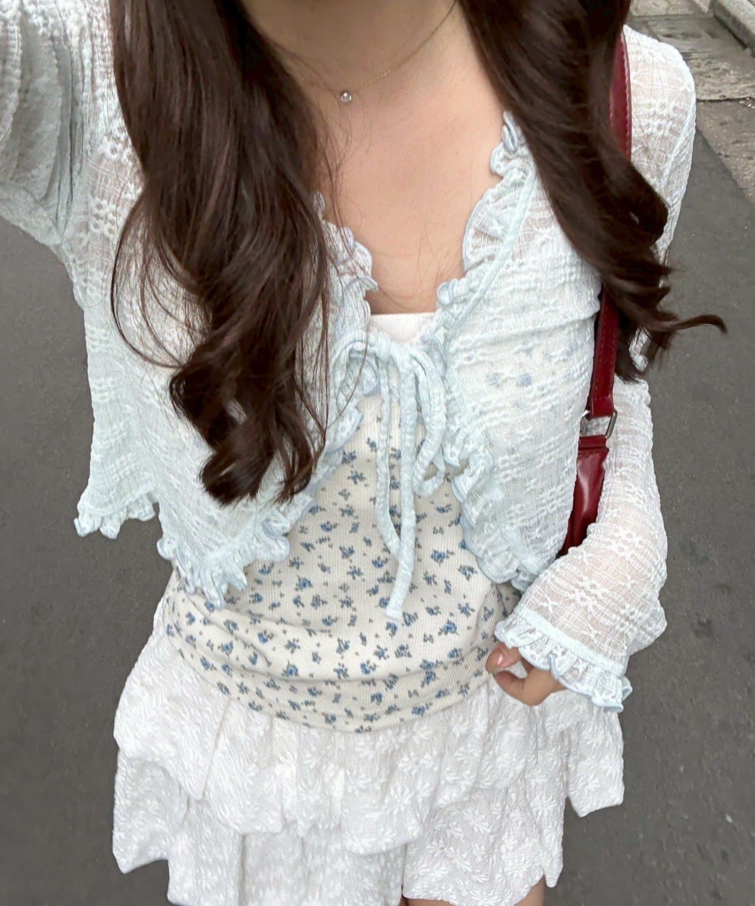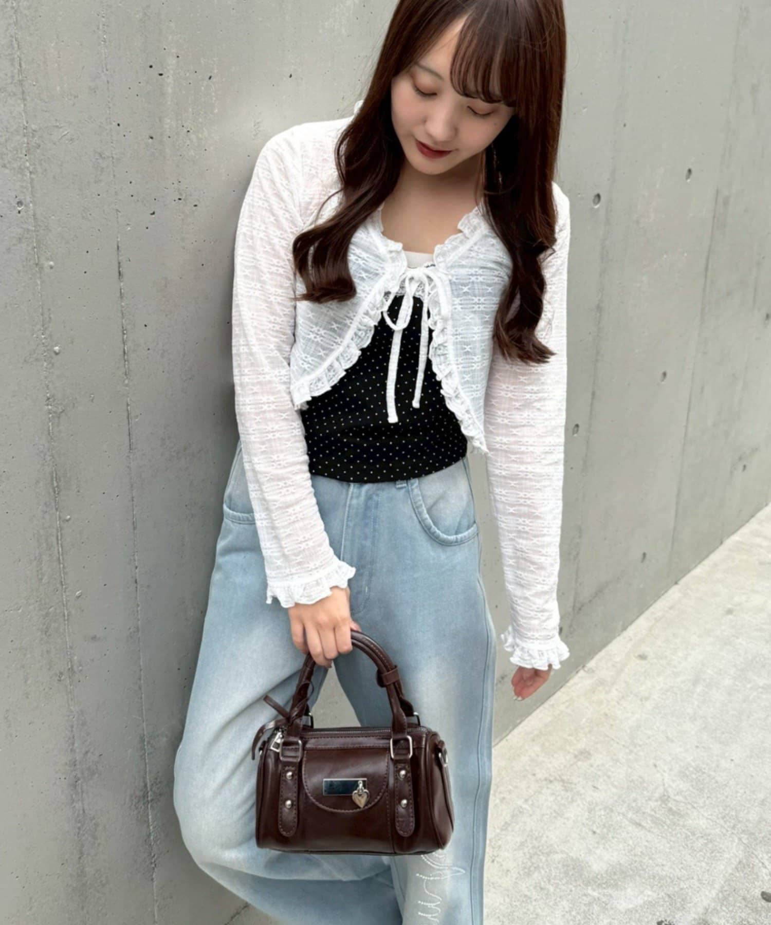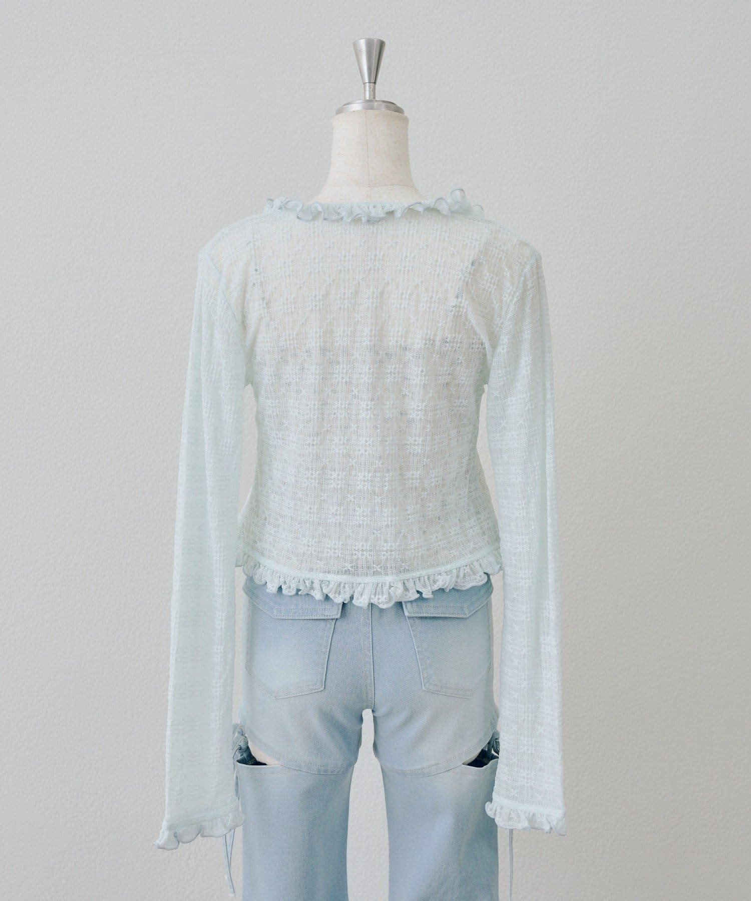 ・フリルがあしらわれたデザインは、羽織るだけでこなれ感を演出します