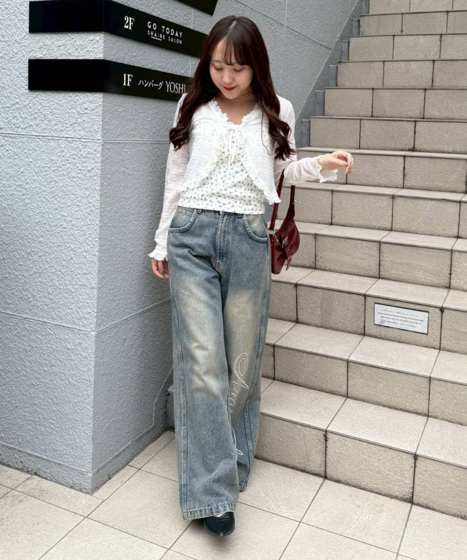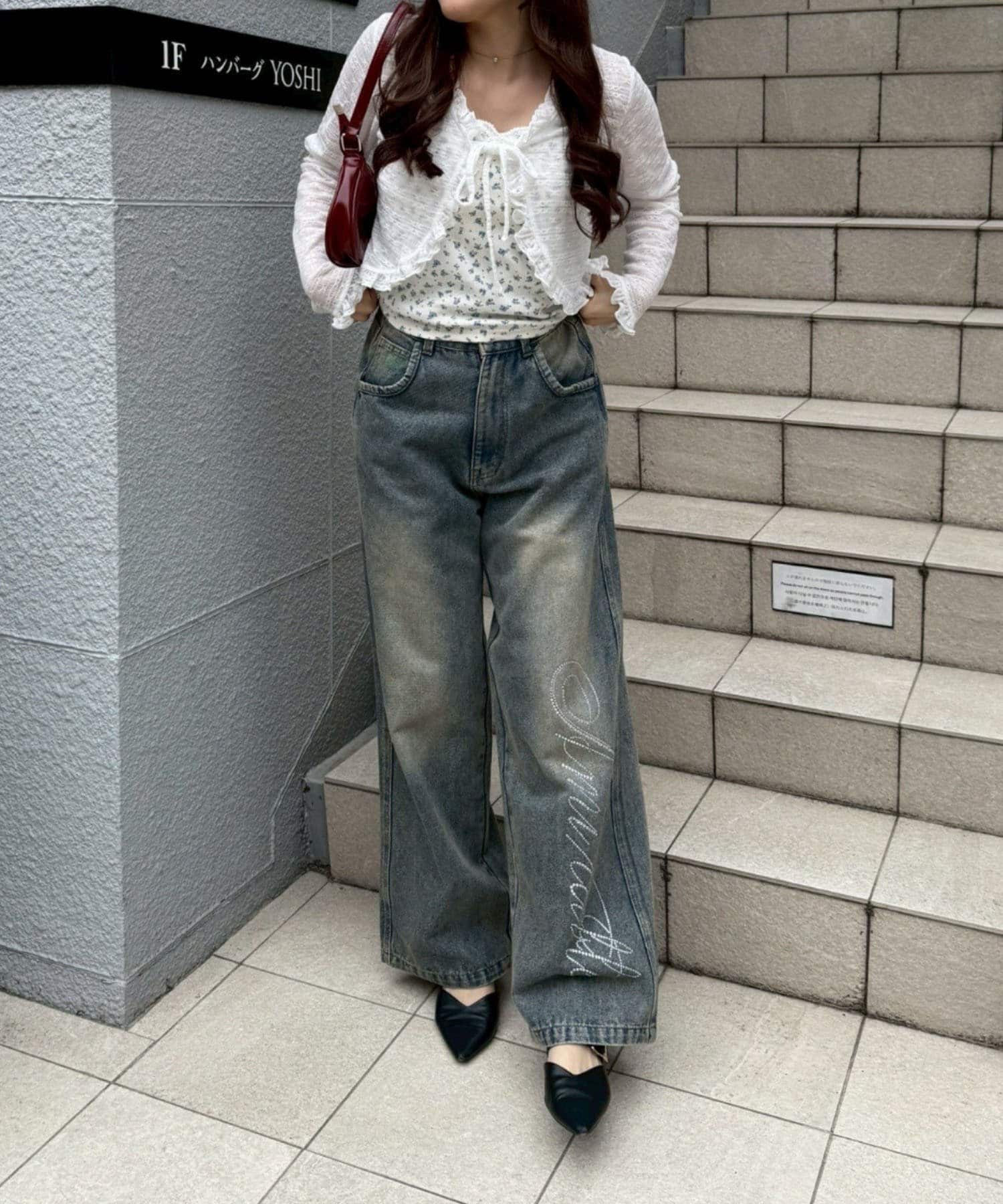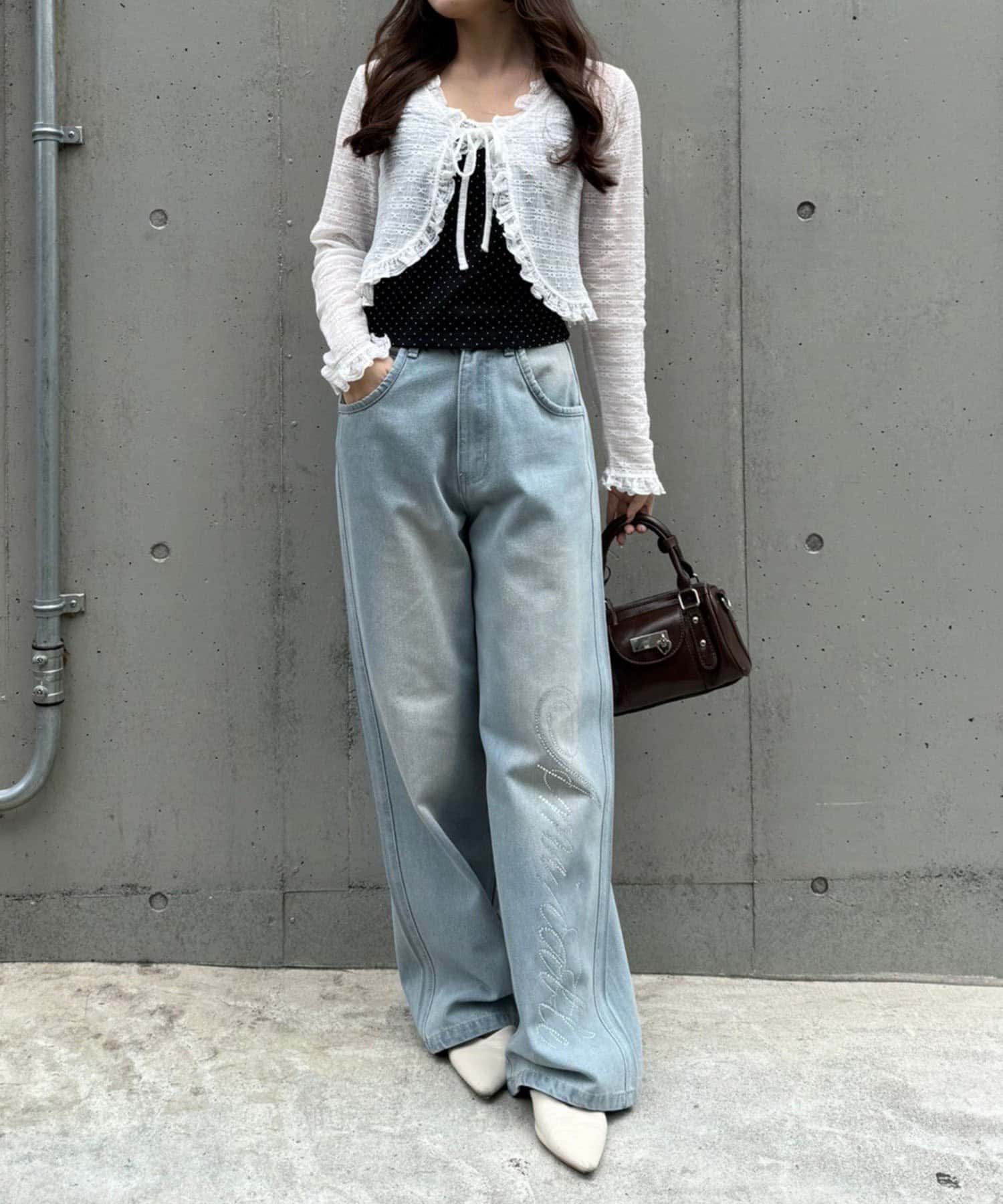 ・ワイドなデニムパンツ合わせでカジュアルダウンさせる着こなしもオススメです