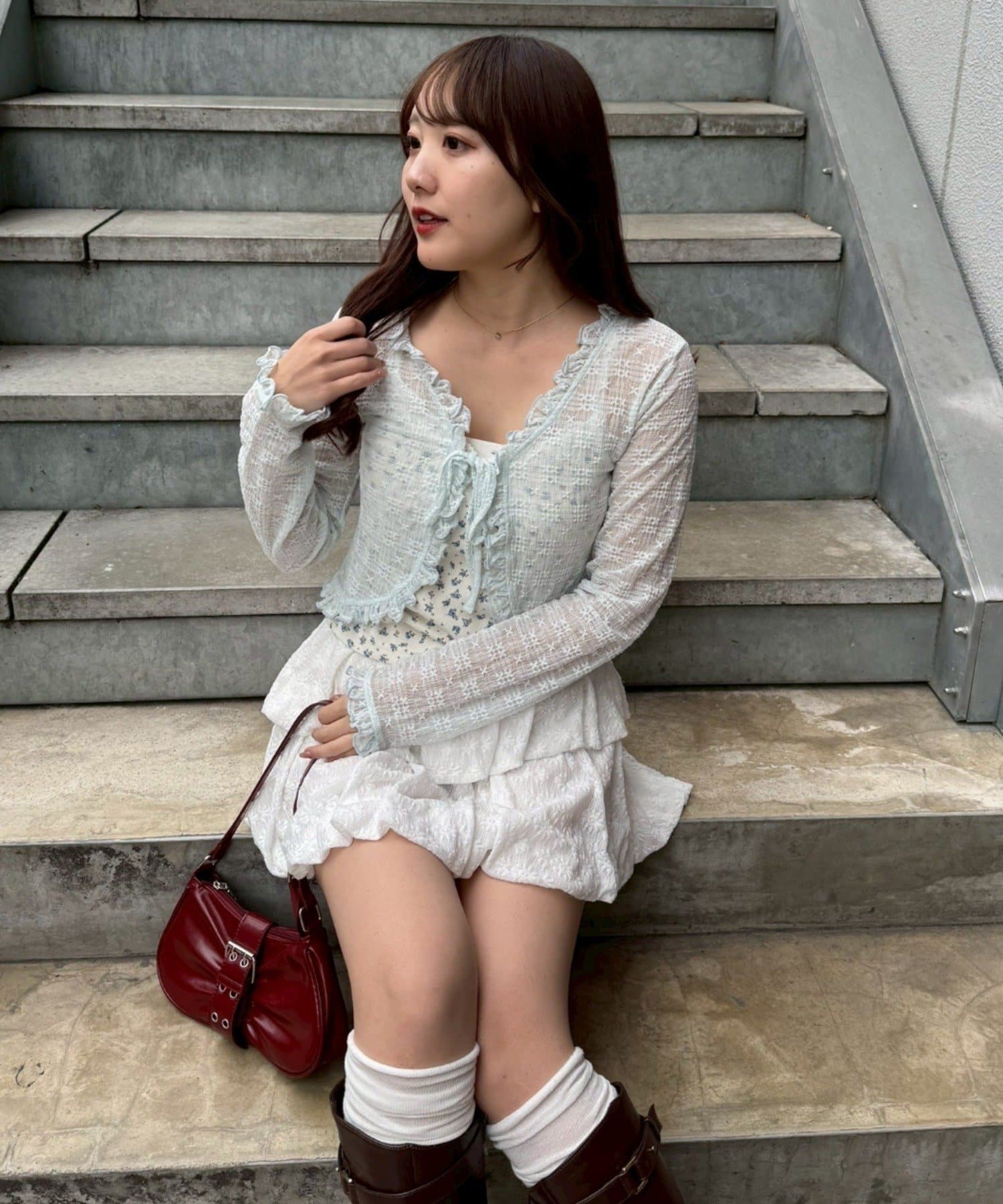 • NICE CLAUP / OLIVE des OLIVE OUTLET(ナイスクラップ  / オリーブ デ オリーブ アウトレット) 【continuer】レースカーディガン×カップ付きレースキャミ