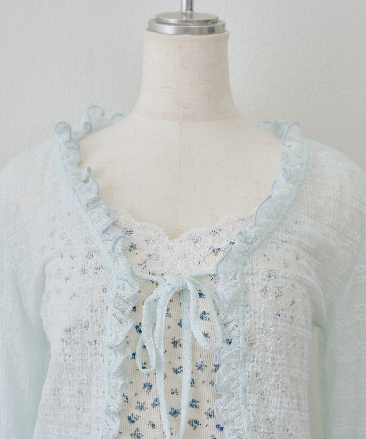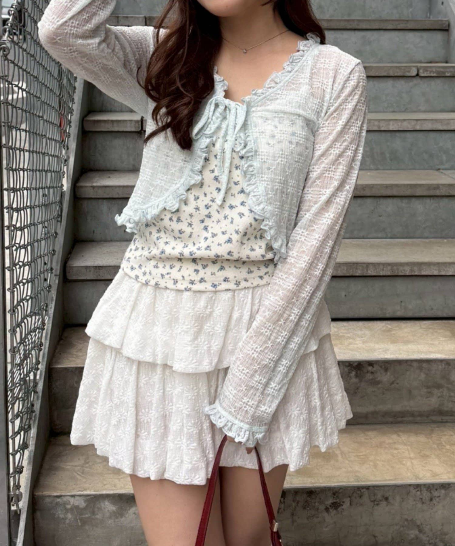 【continuer】レースカーディガン×カップ付きレースキャミ