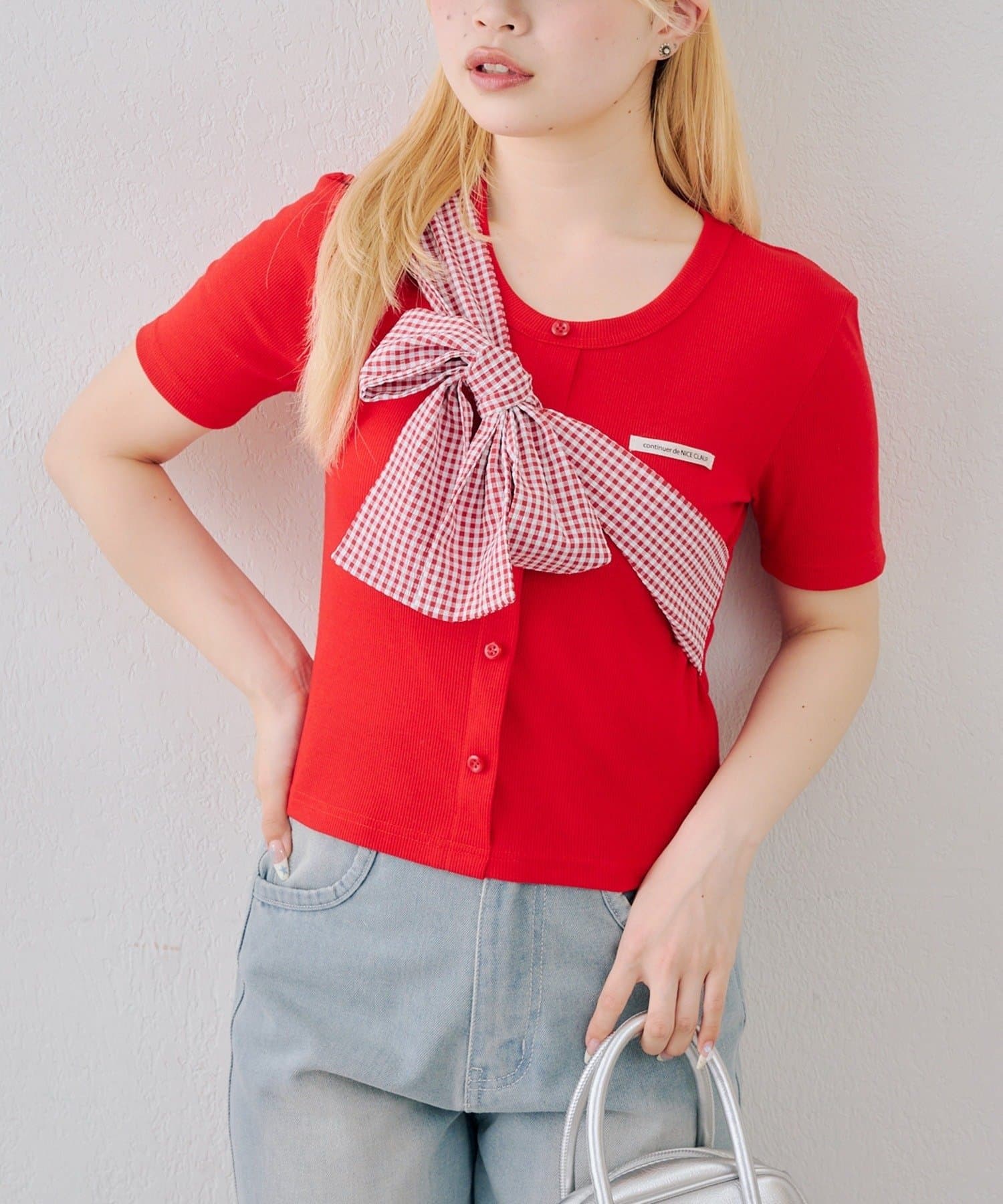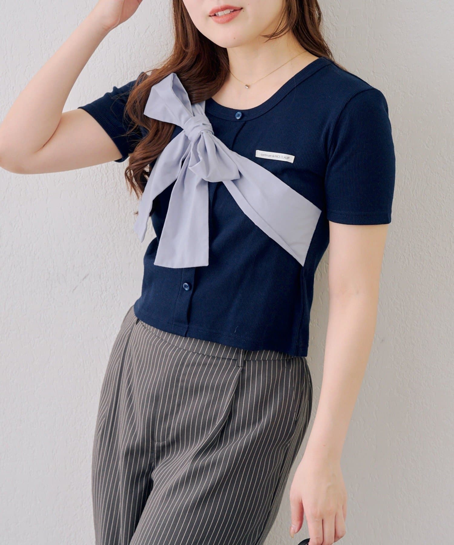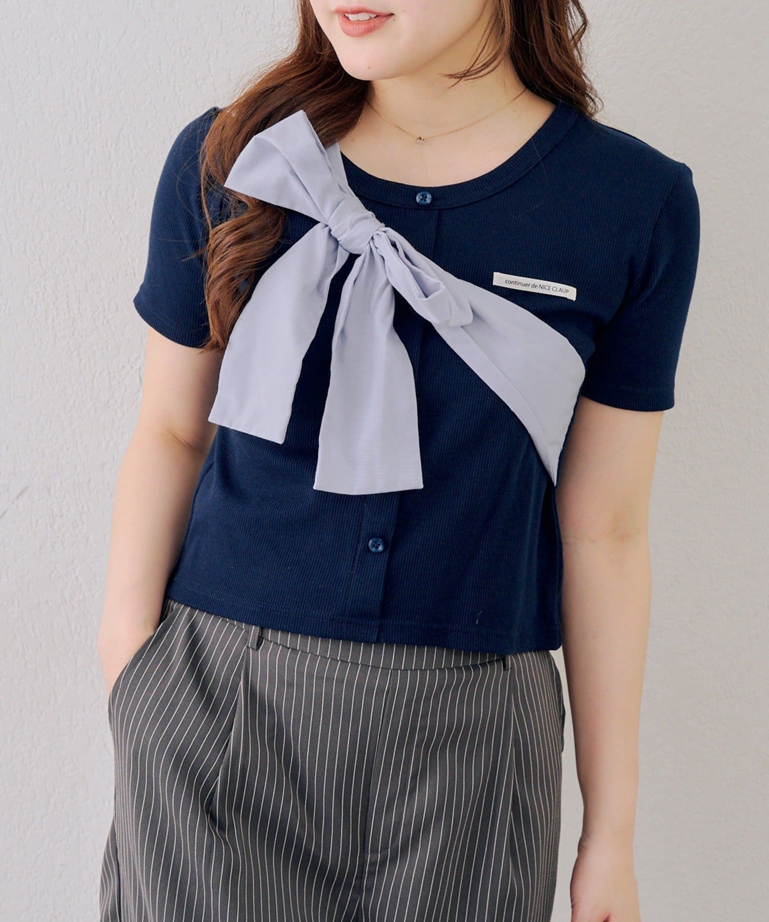 TOP > NICE CLAUP / OLIVE des OLIVE OUTLET > レディース > トップス > Tシャツ/カットソー > 【continuer】ビッグリボンテレコプルオーバー