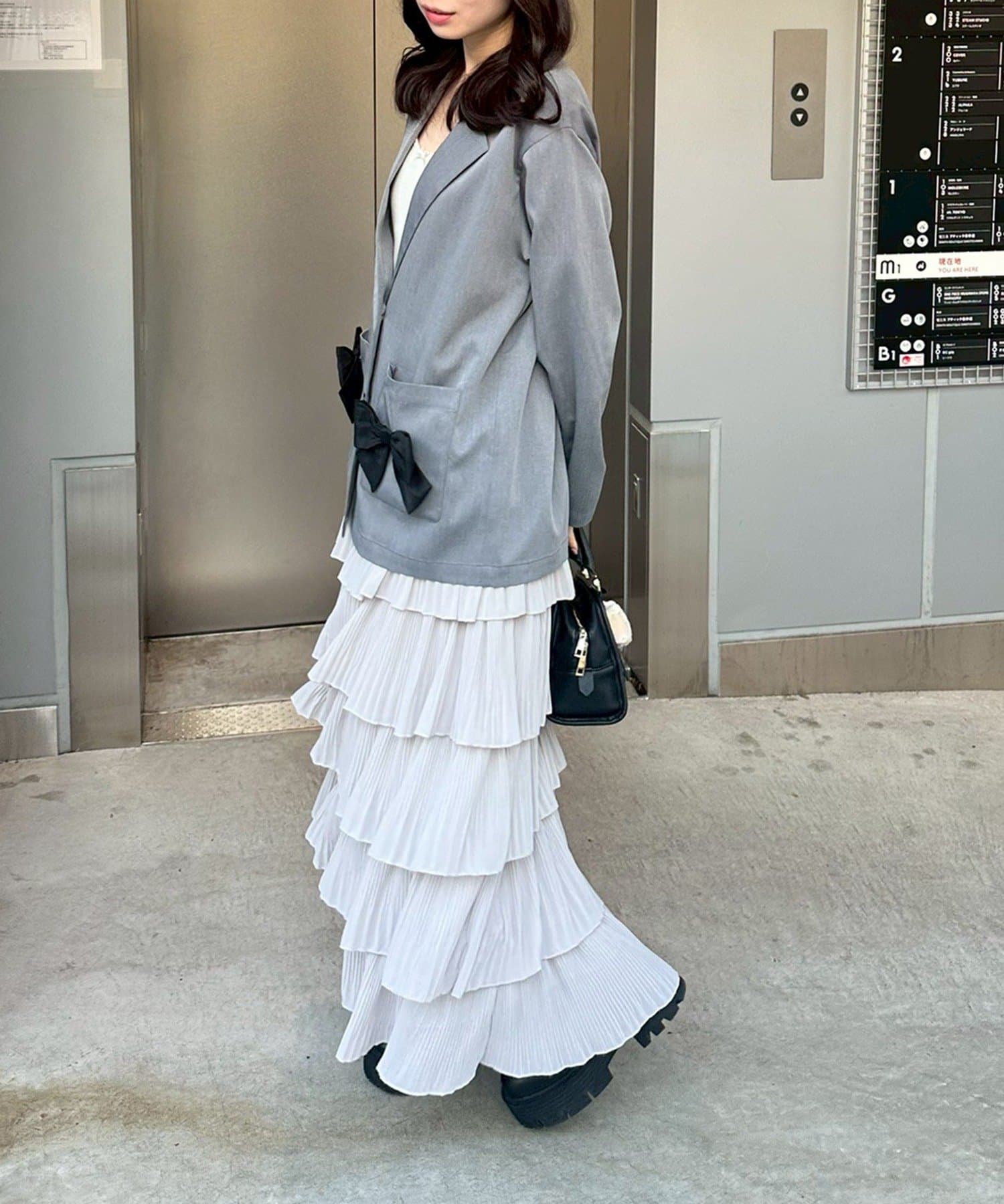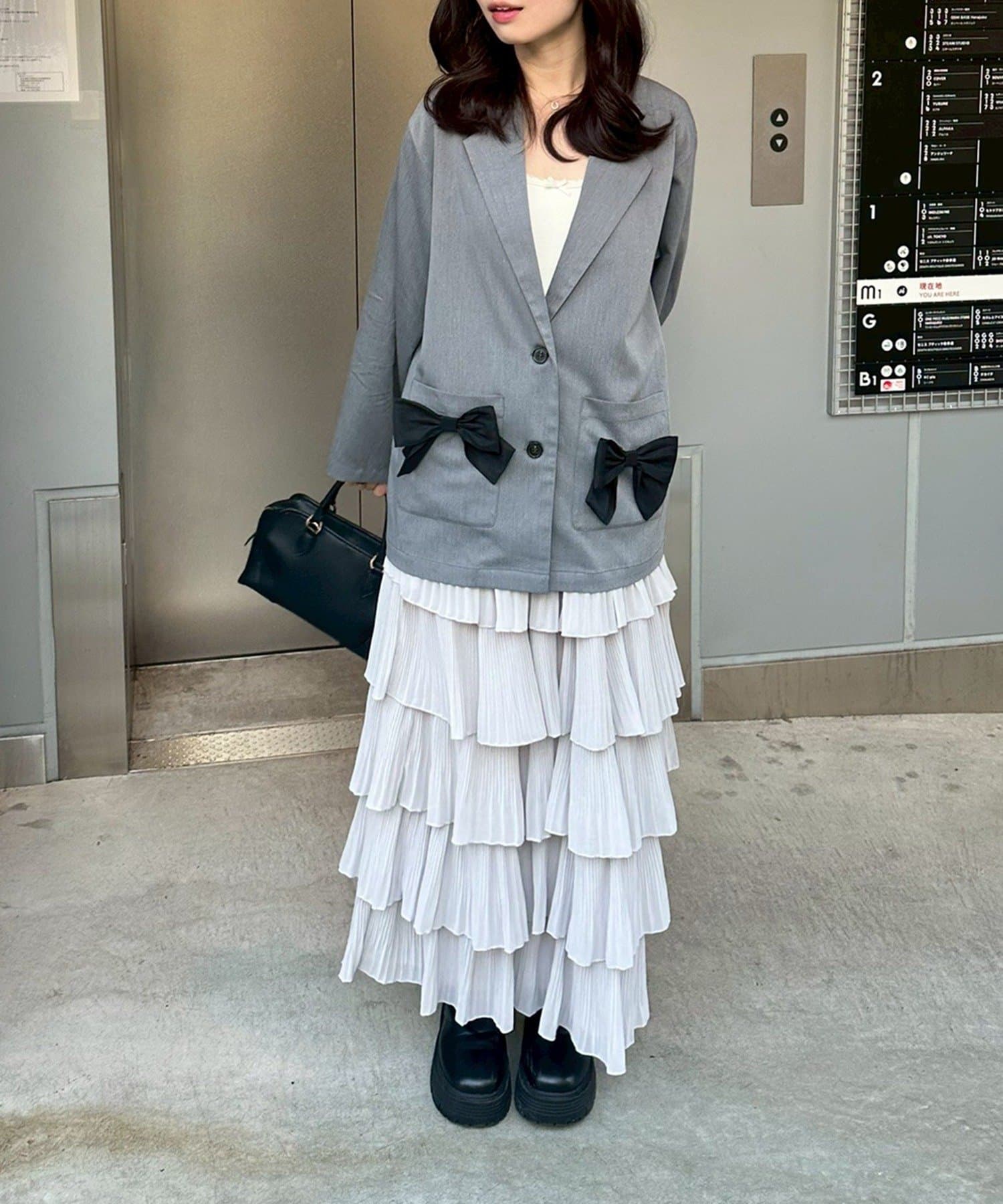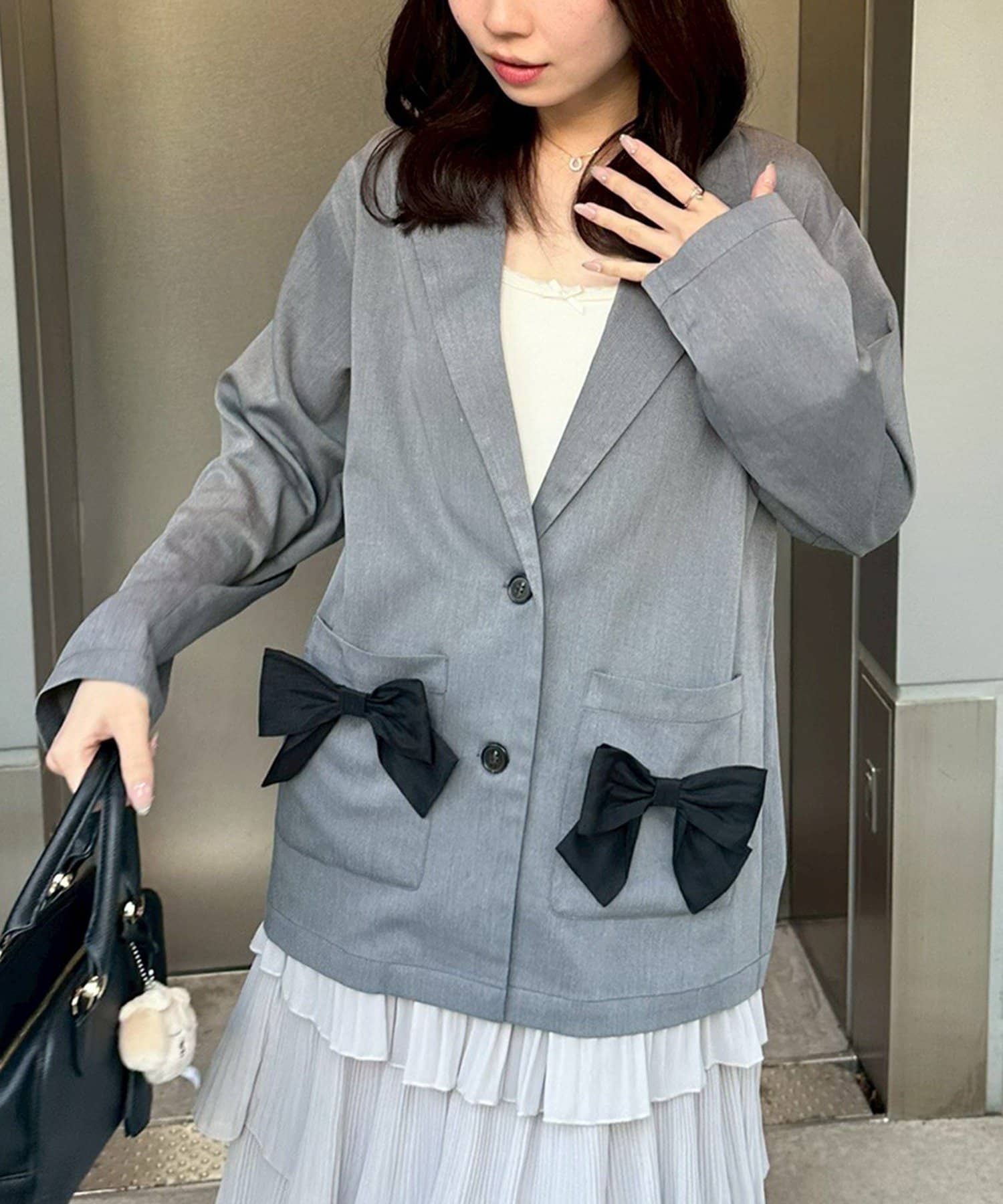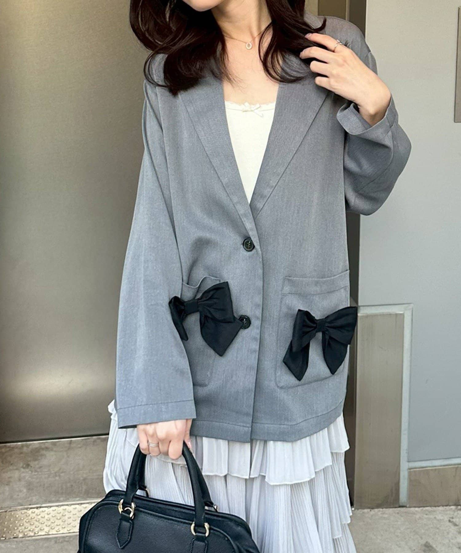 ・取り外し可能なリボン付きでマルチな着こなしを楽しめるテーラードジャケット