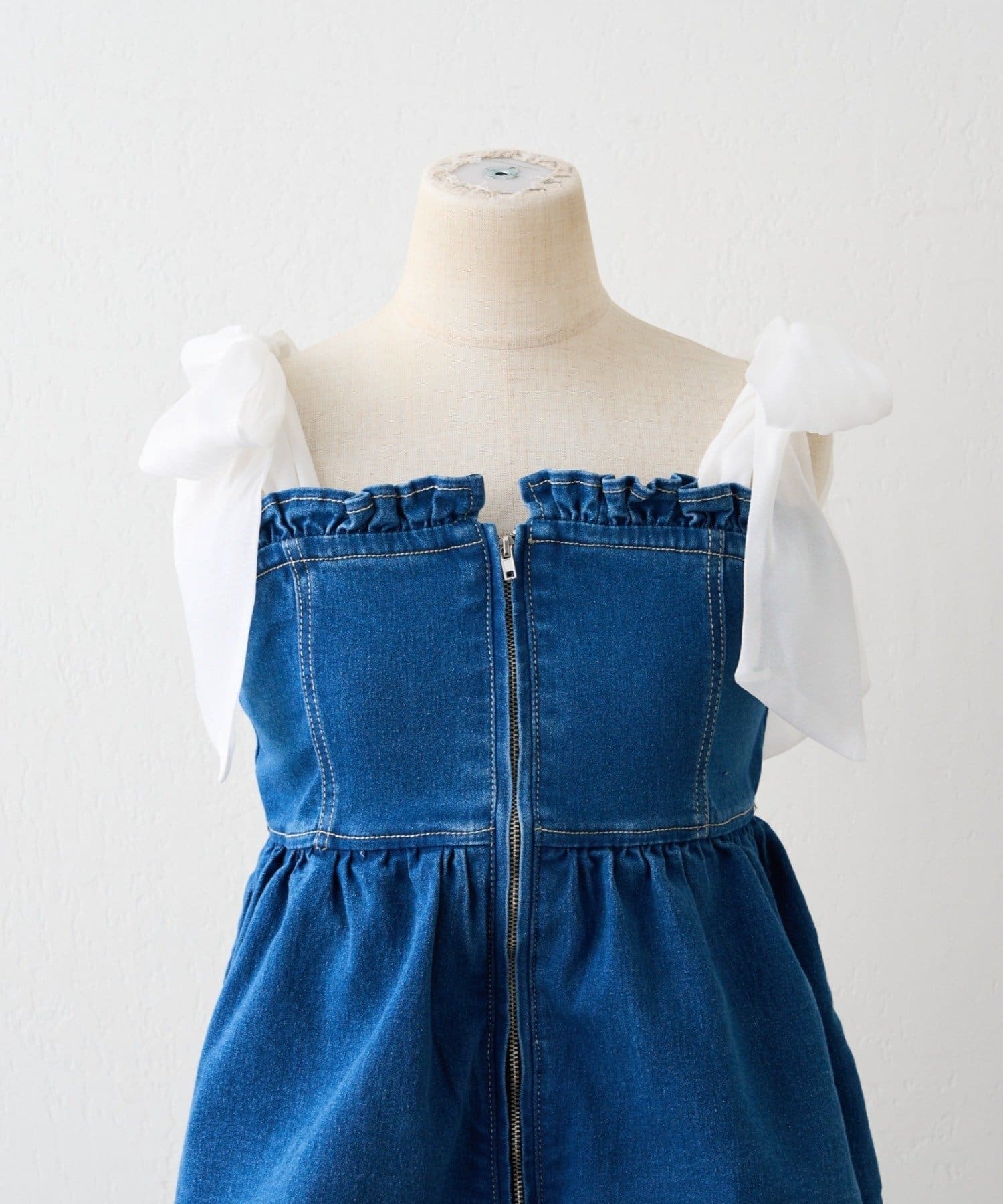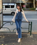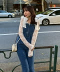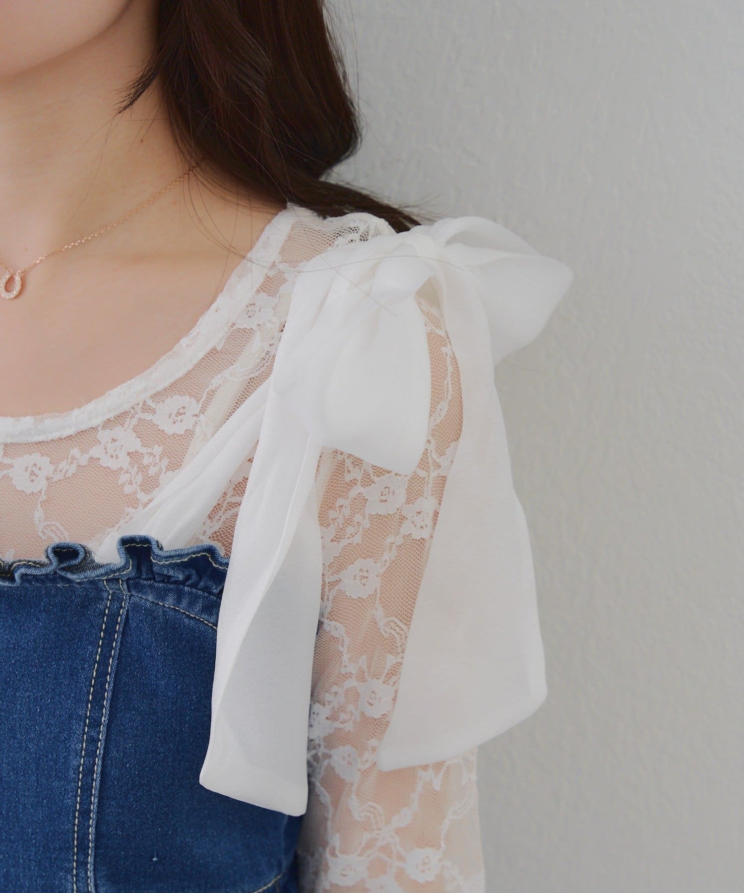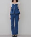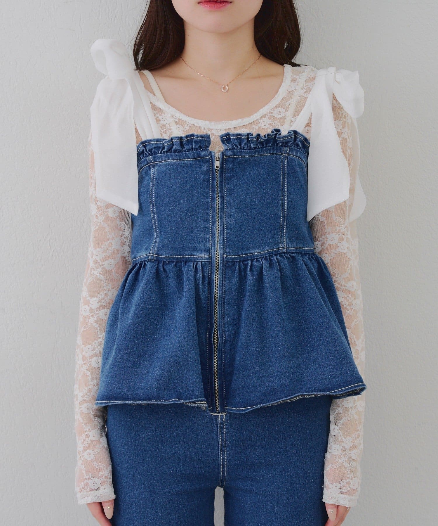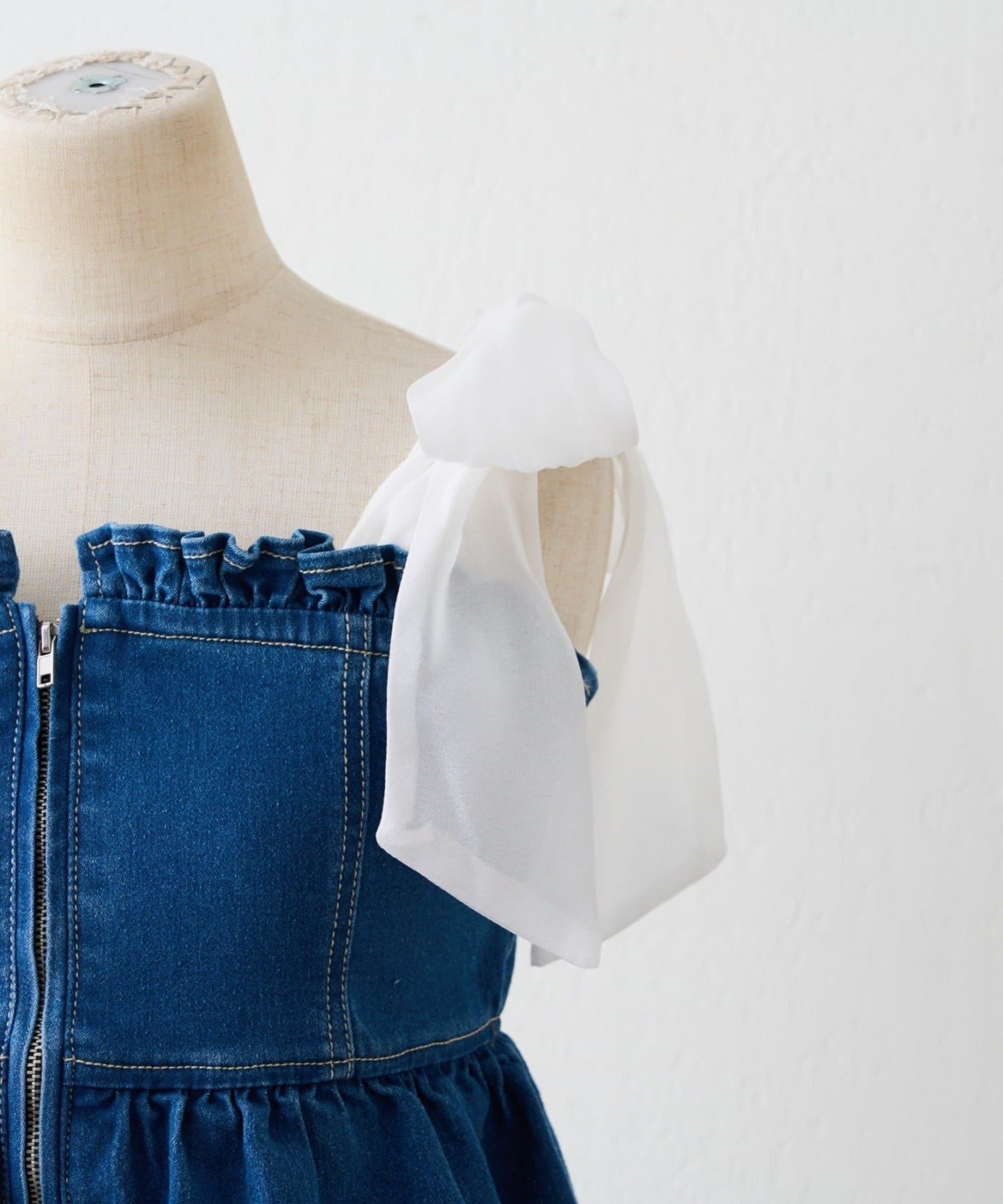 ・オーガン素材の肩リボンがガーリーな印象のデニムサロペ。。
