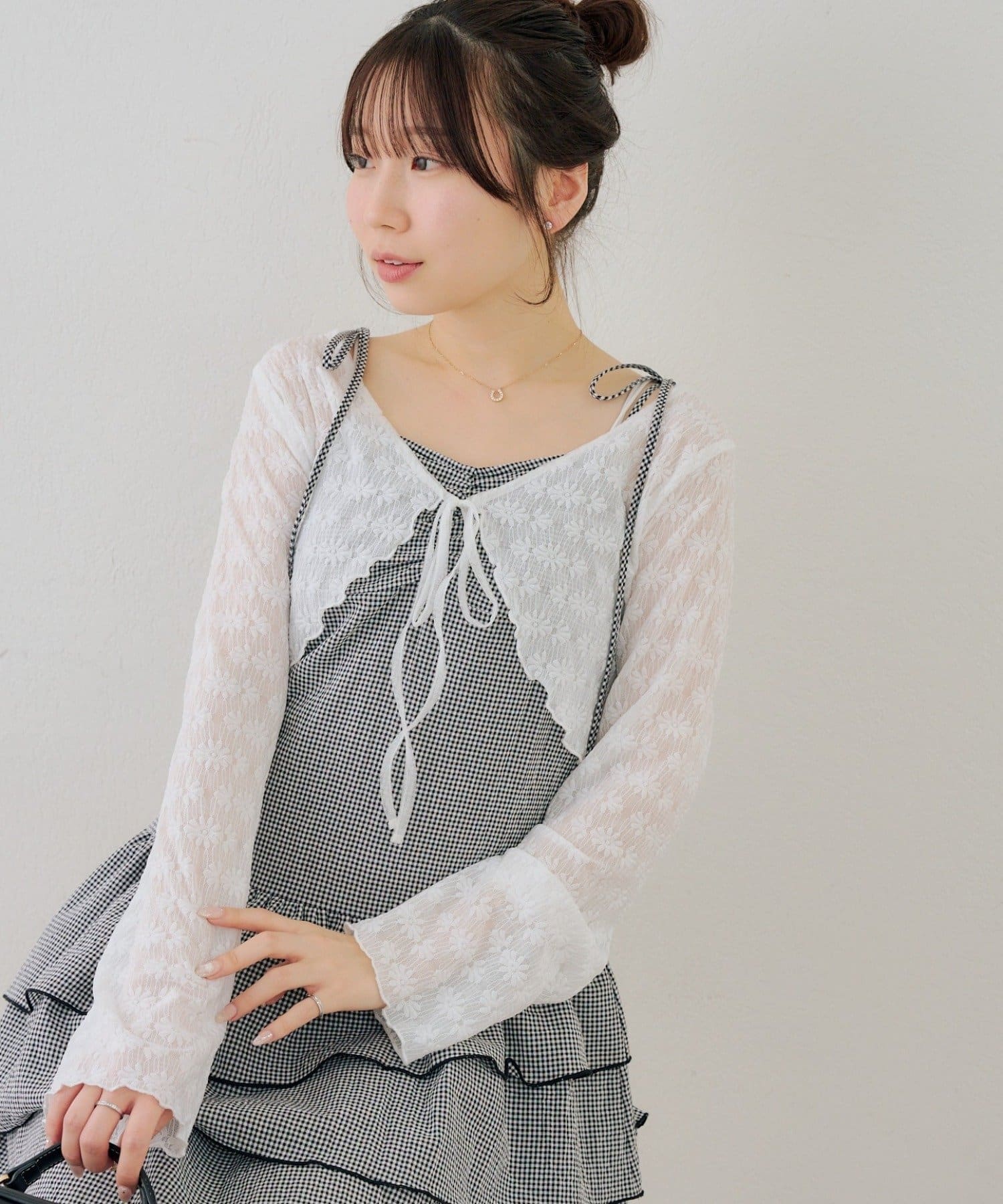 ・レース素材のボレロは春らしい季節感と抜け感を出してくれます◎