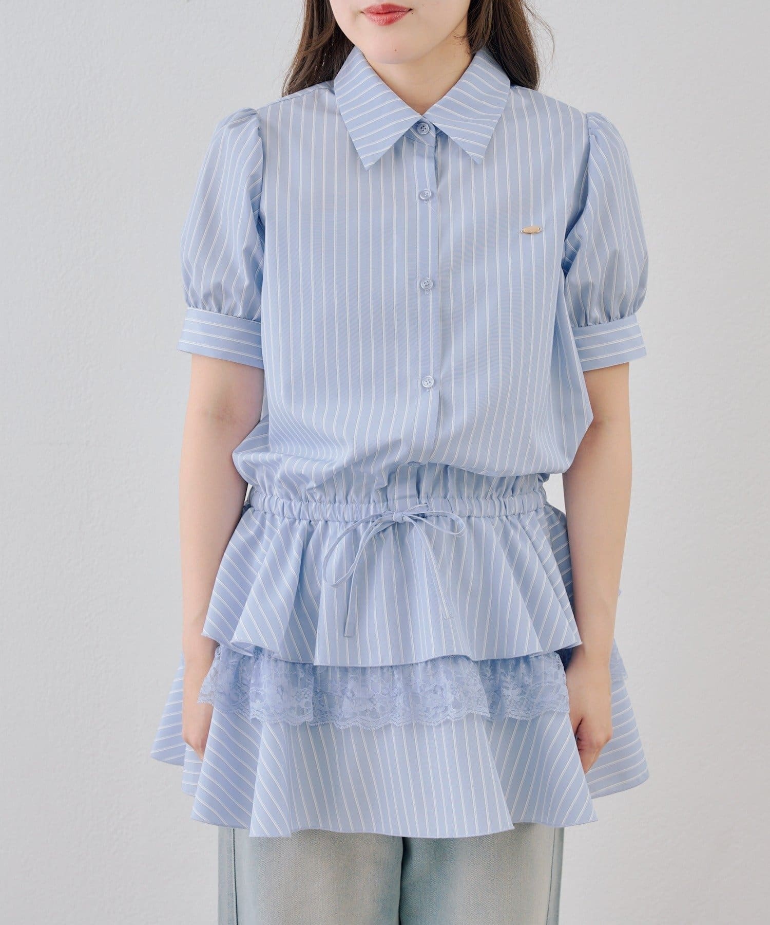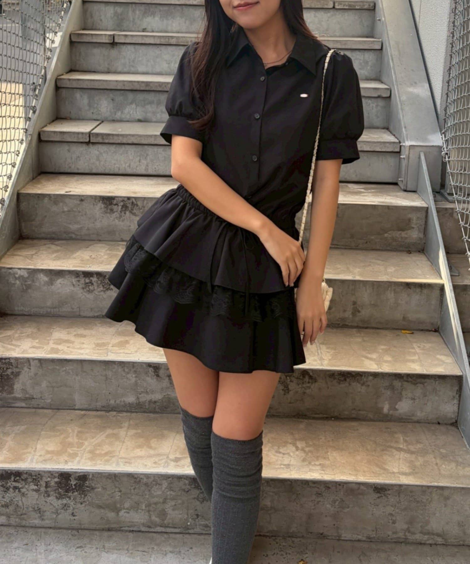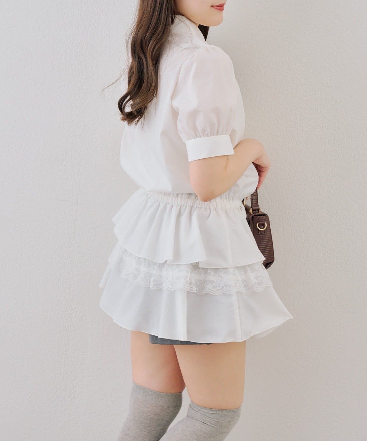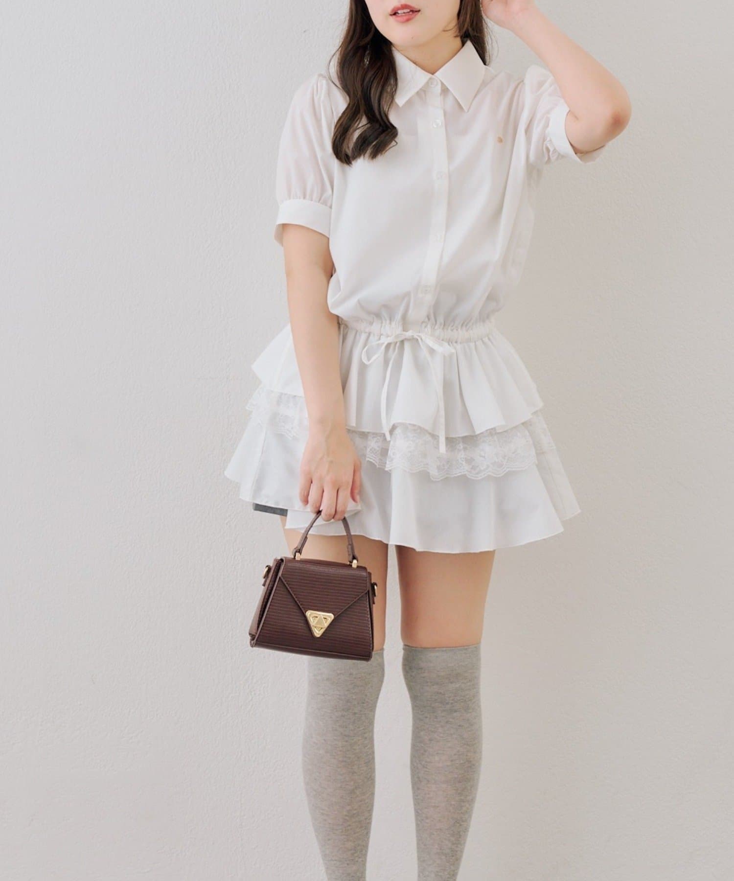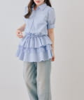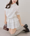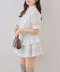 ・裾ティアードデザインでガーリーさをプラスしたミニワンピース