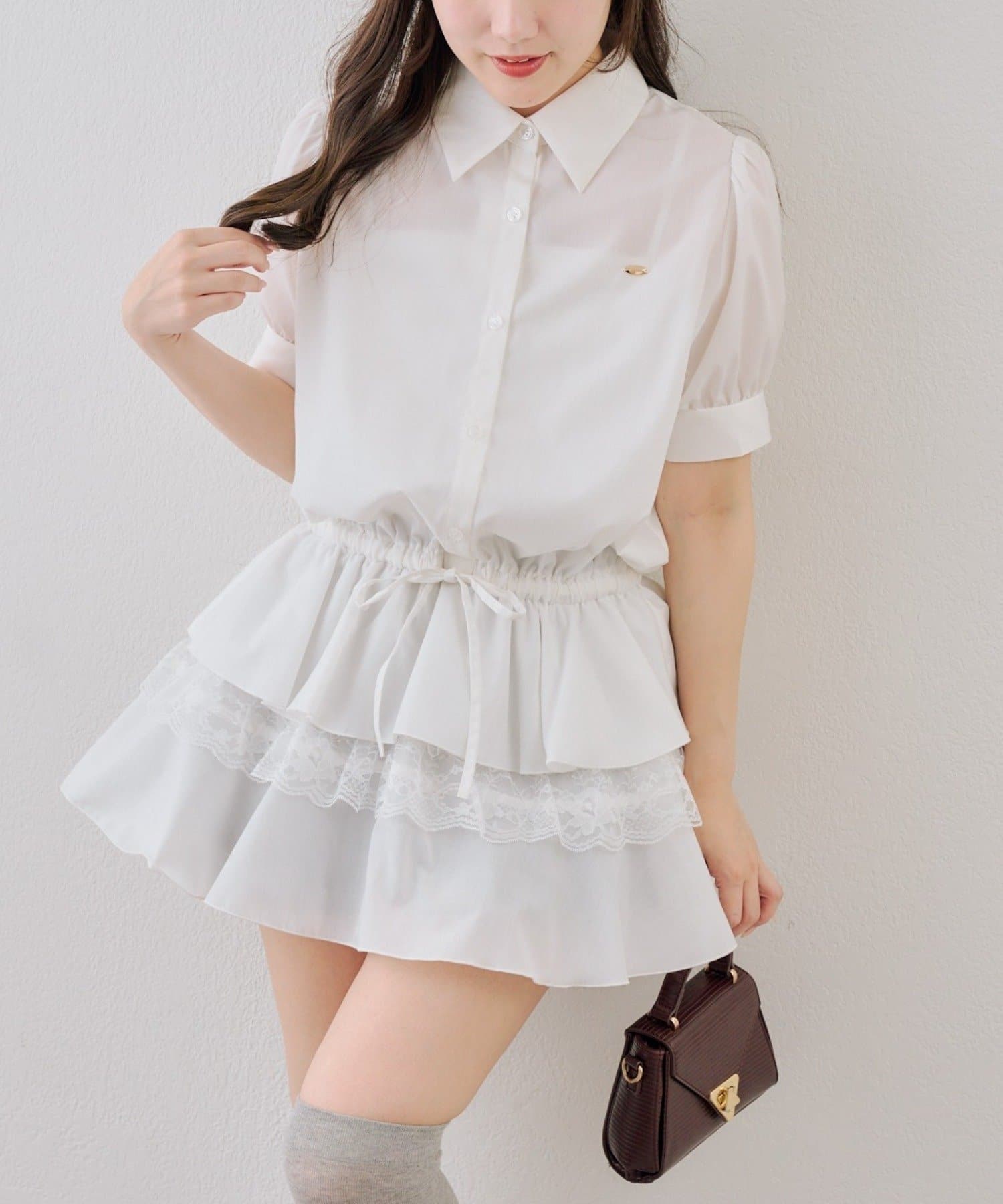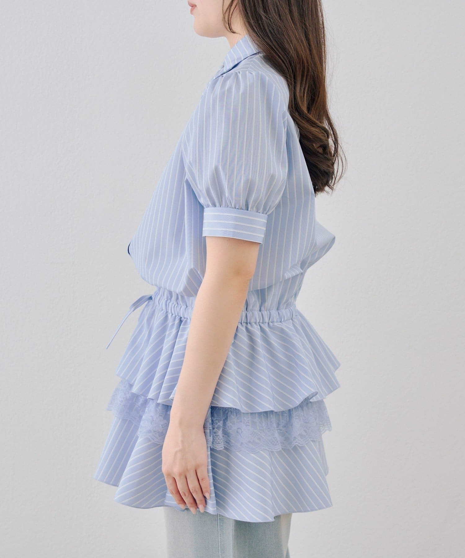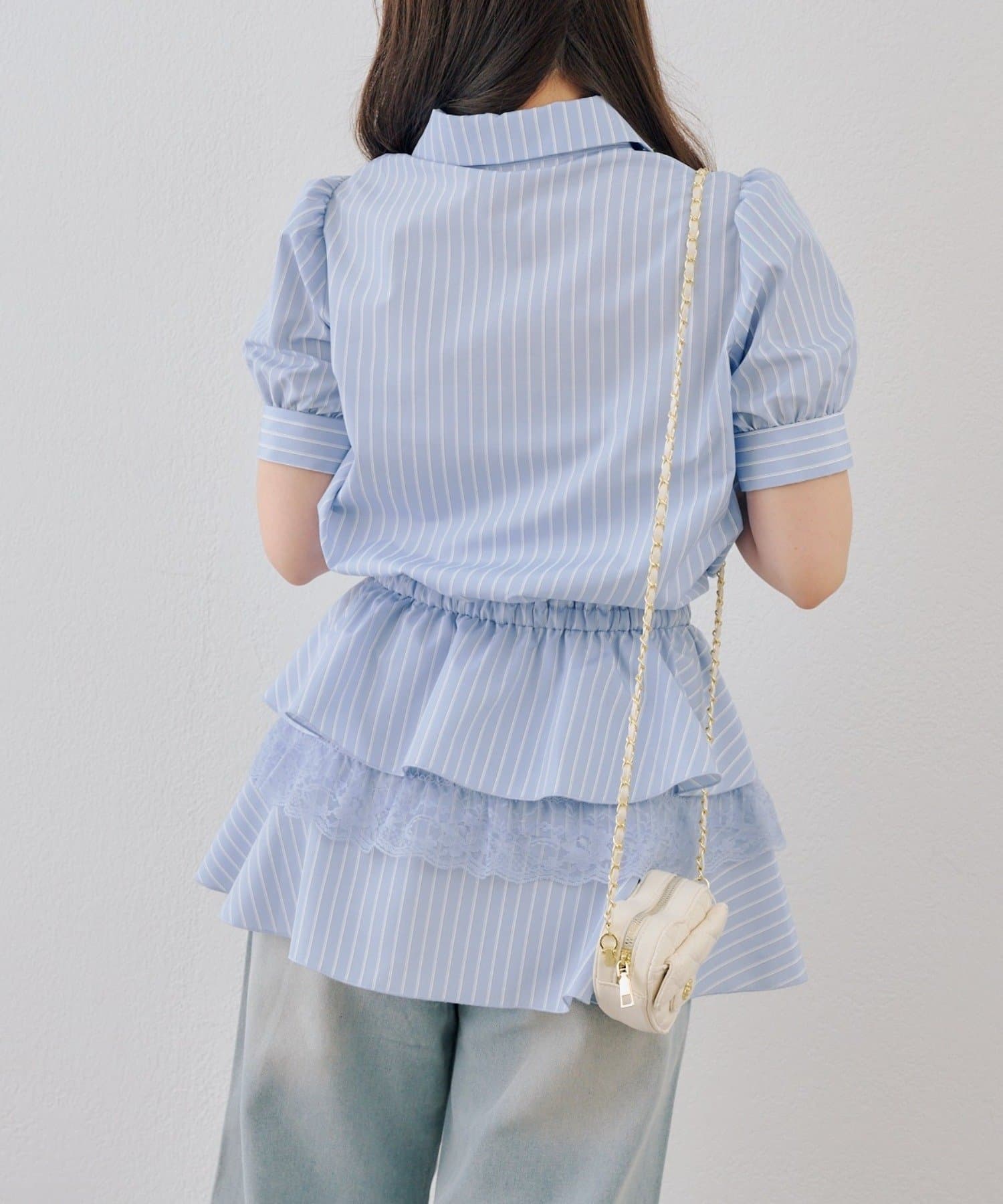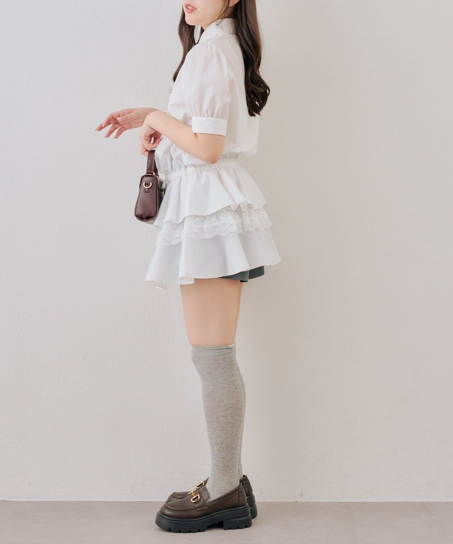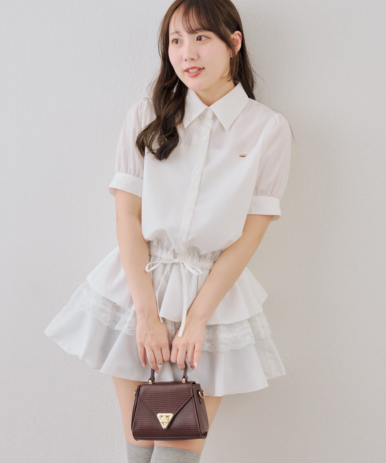 ・裾ティアードデザインでガーリーさをプラスしたミニワンピース