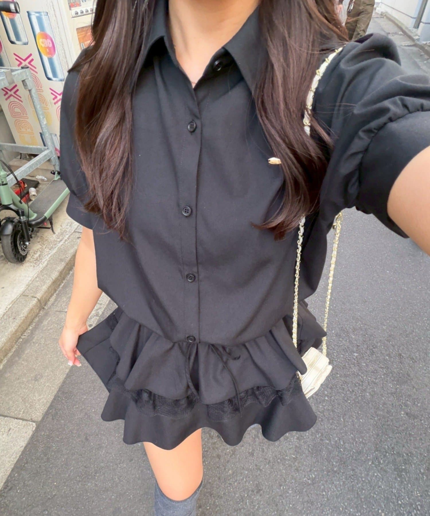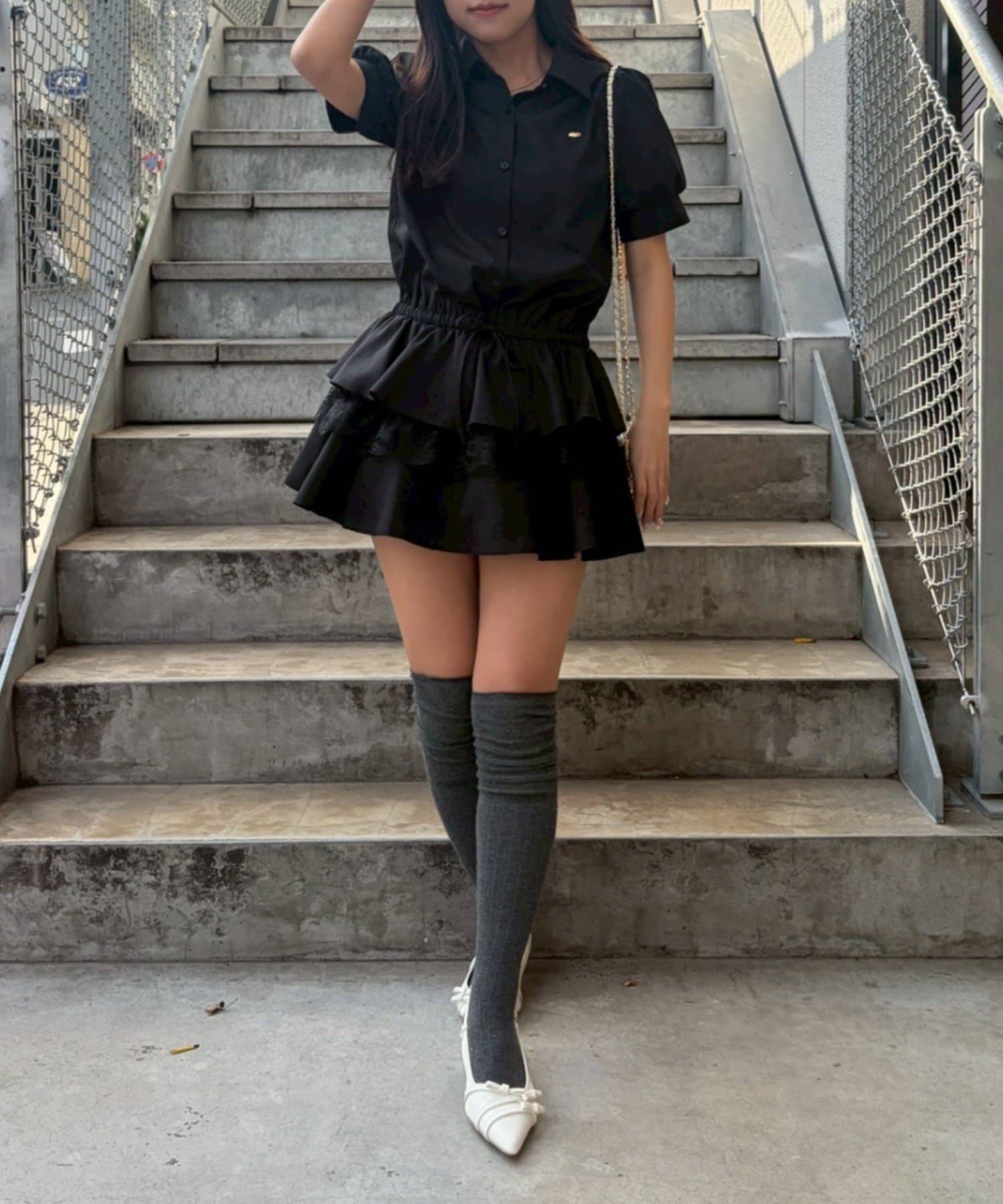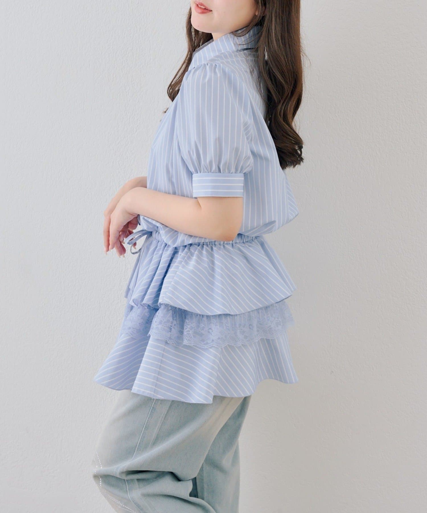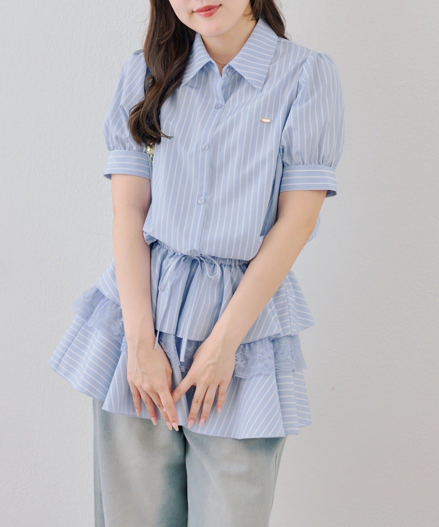 ・裾ティアードデザインでガーリーさをプラスしたミニワンピース