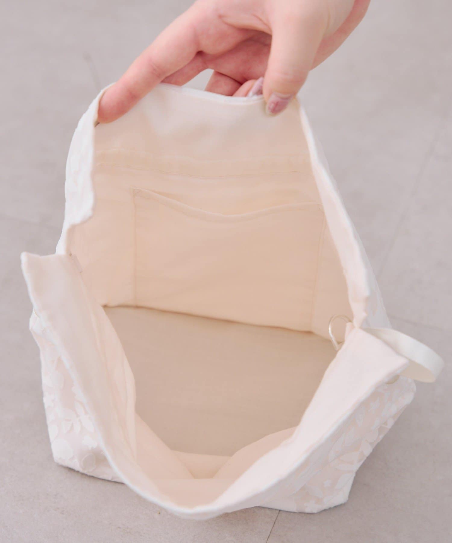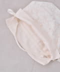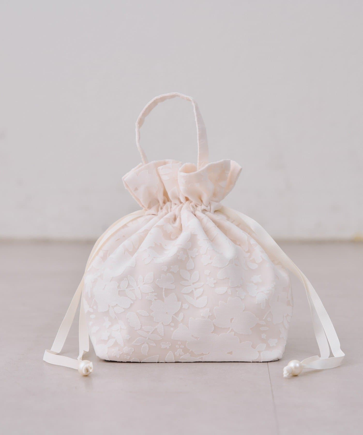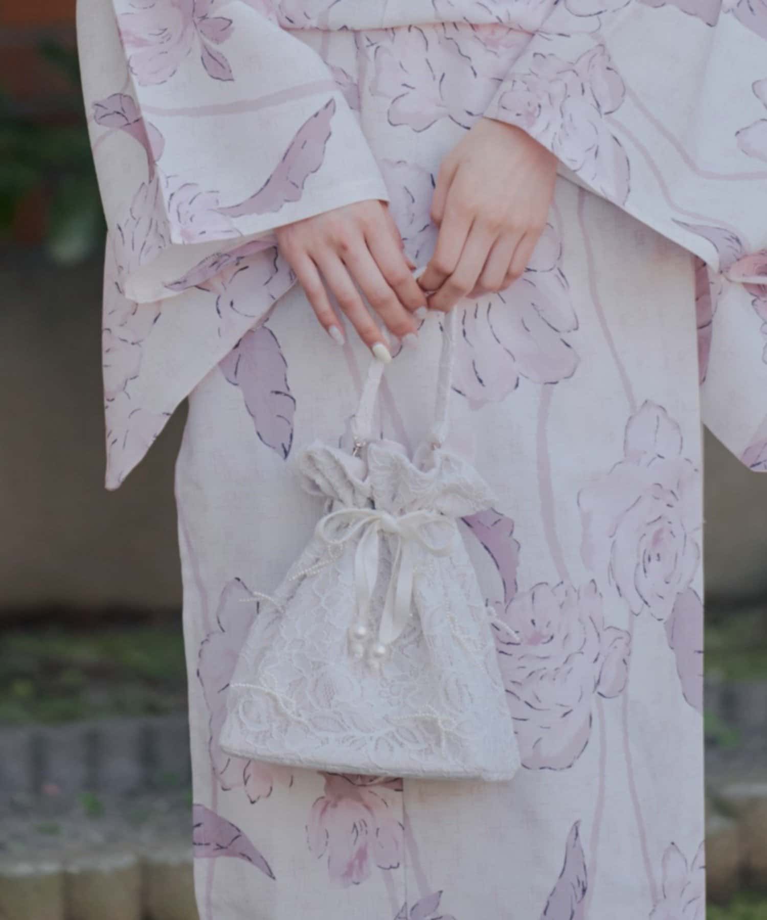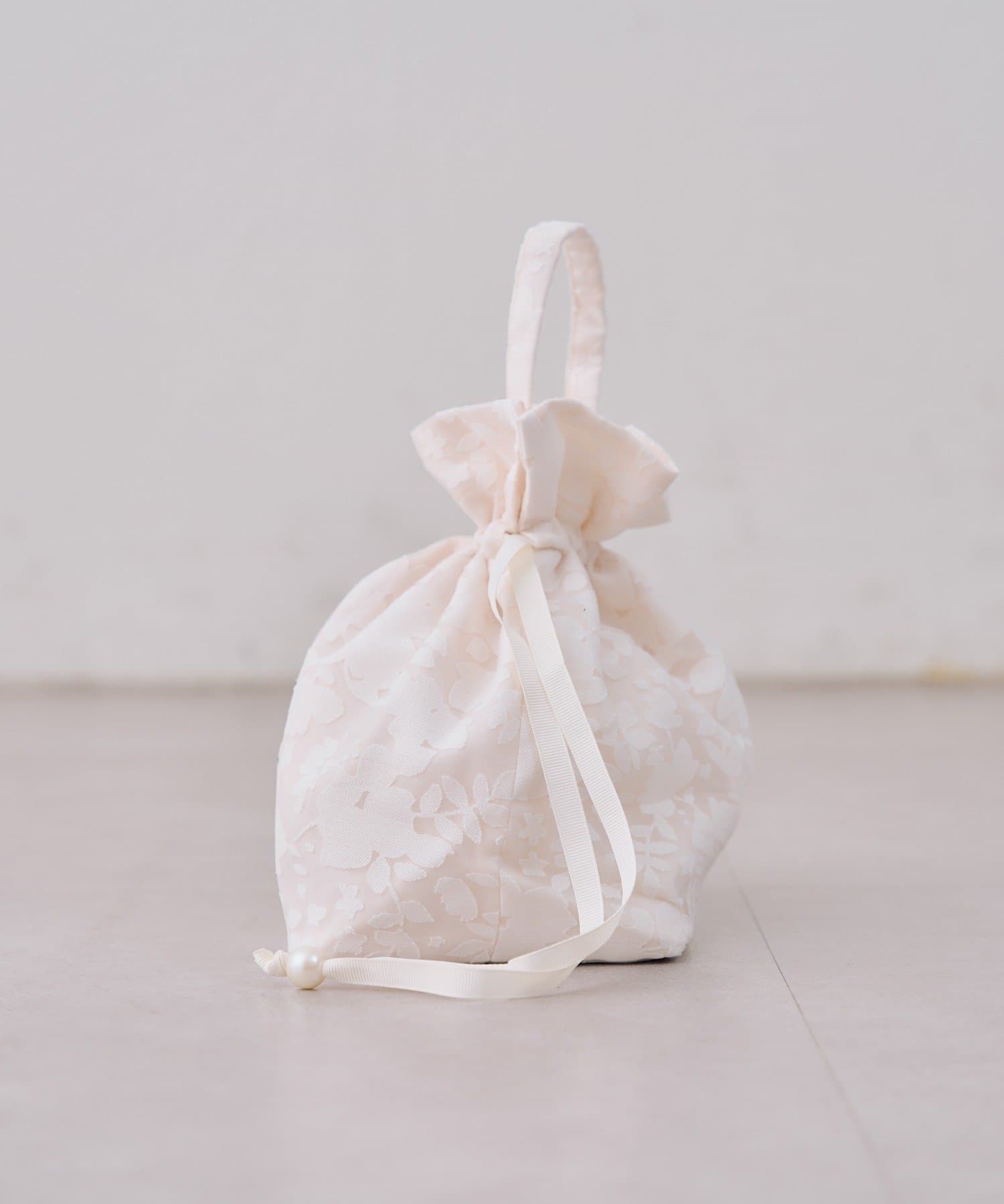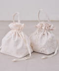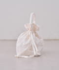 ・繊細なレースと上品な光沢が織りなす、エレガントな巾着バッグ