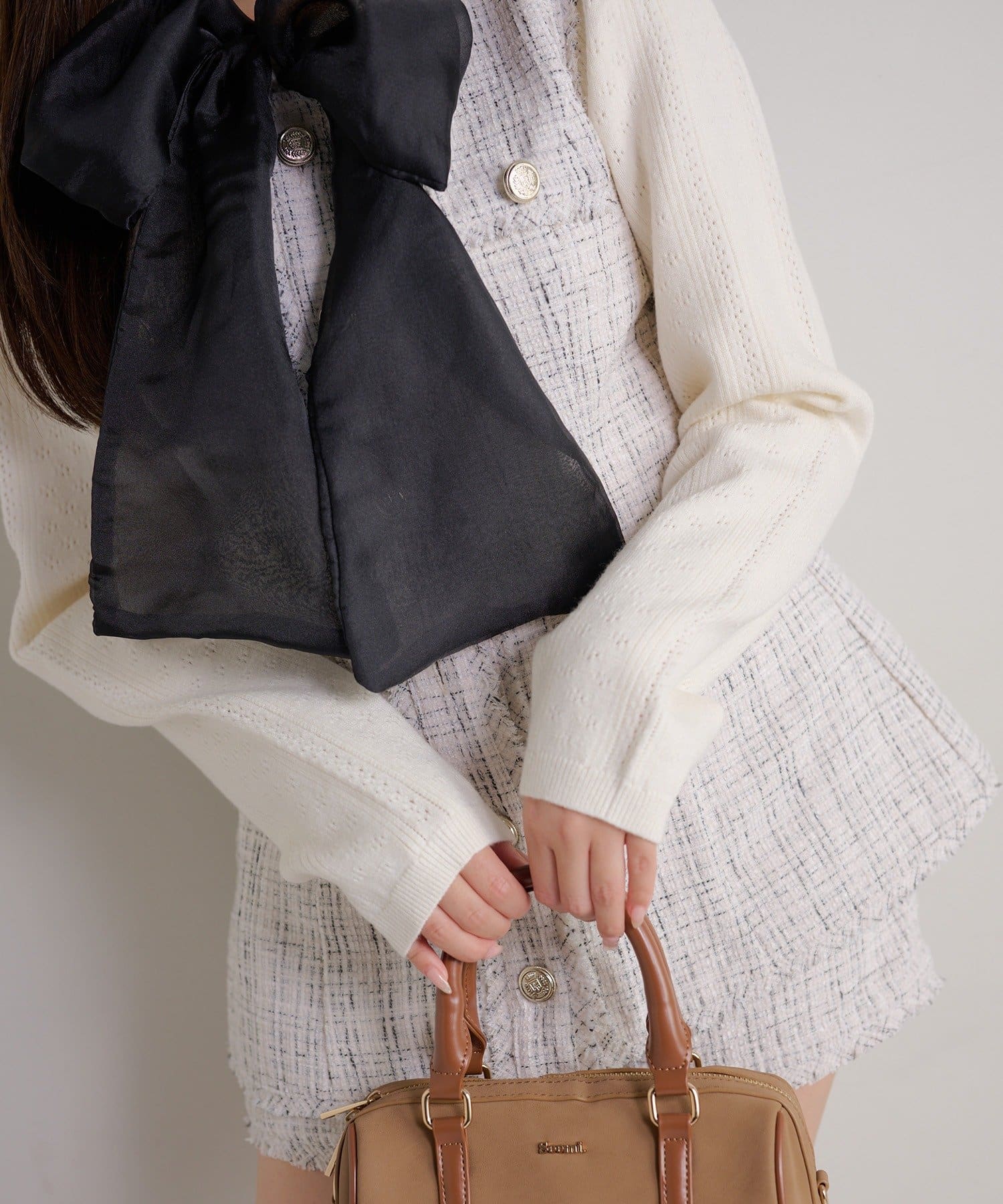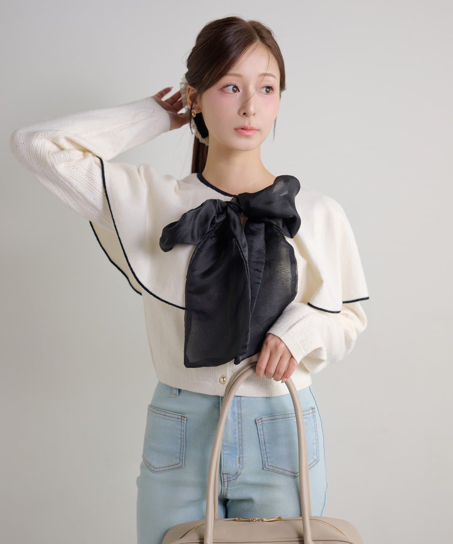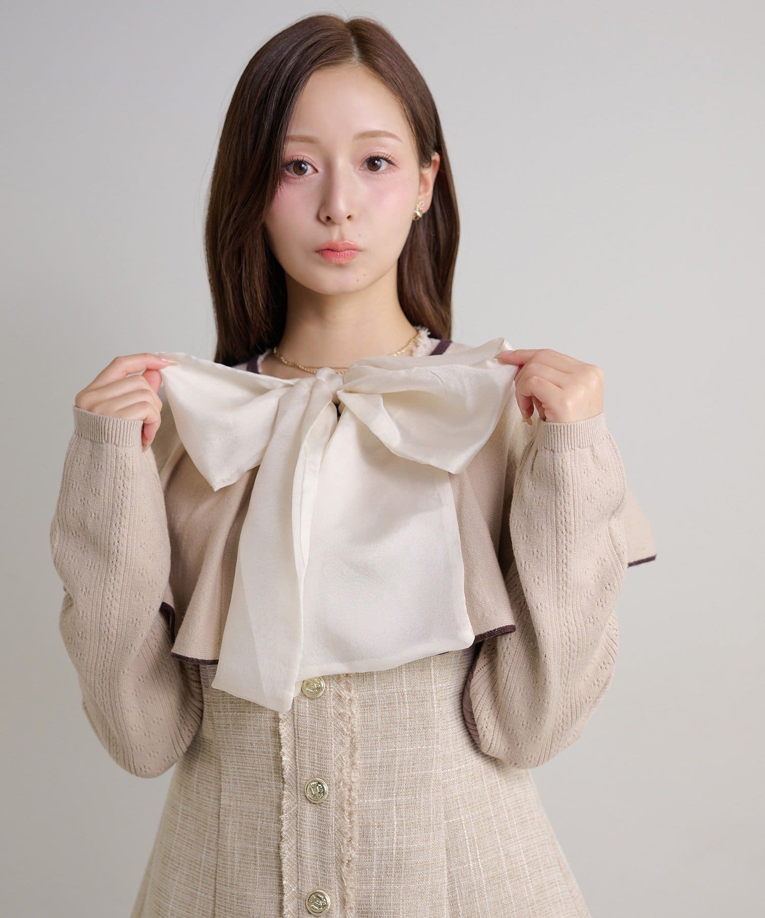 【ケープ取り外し可能】ボウタイアイレットカーディガン