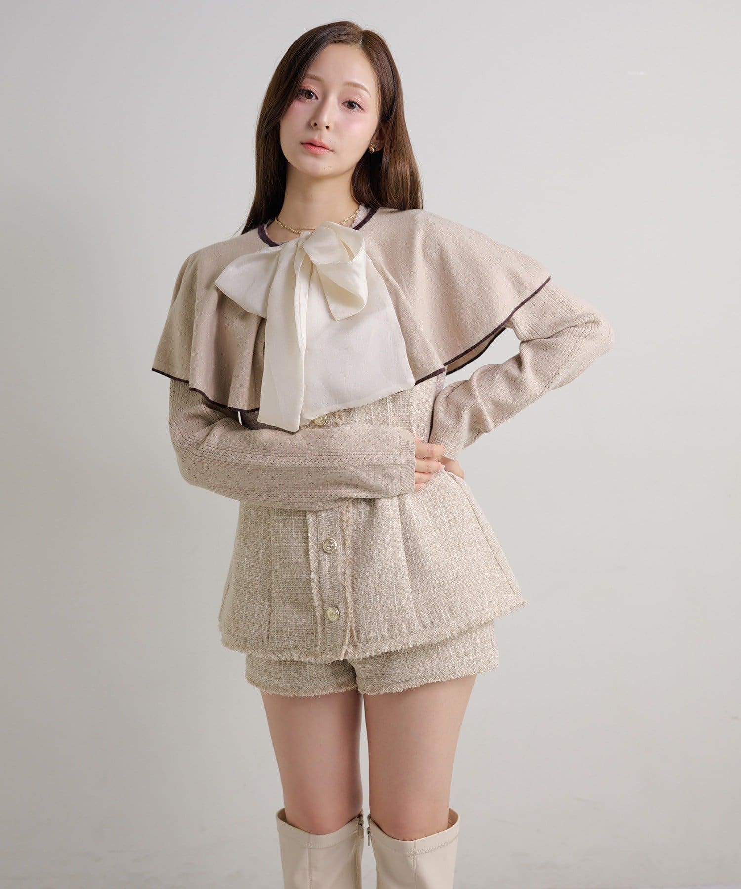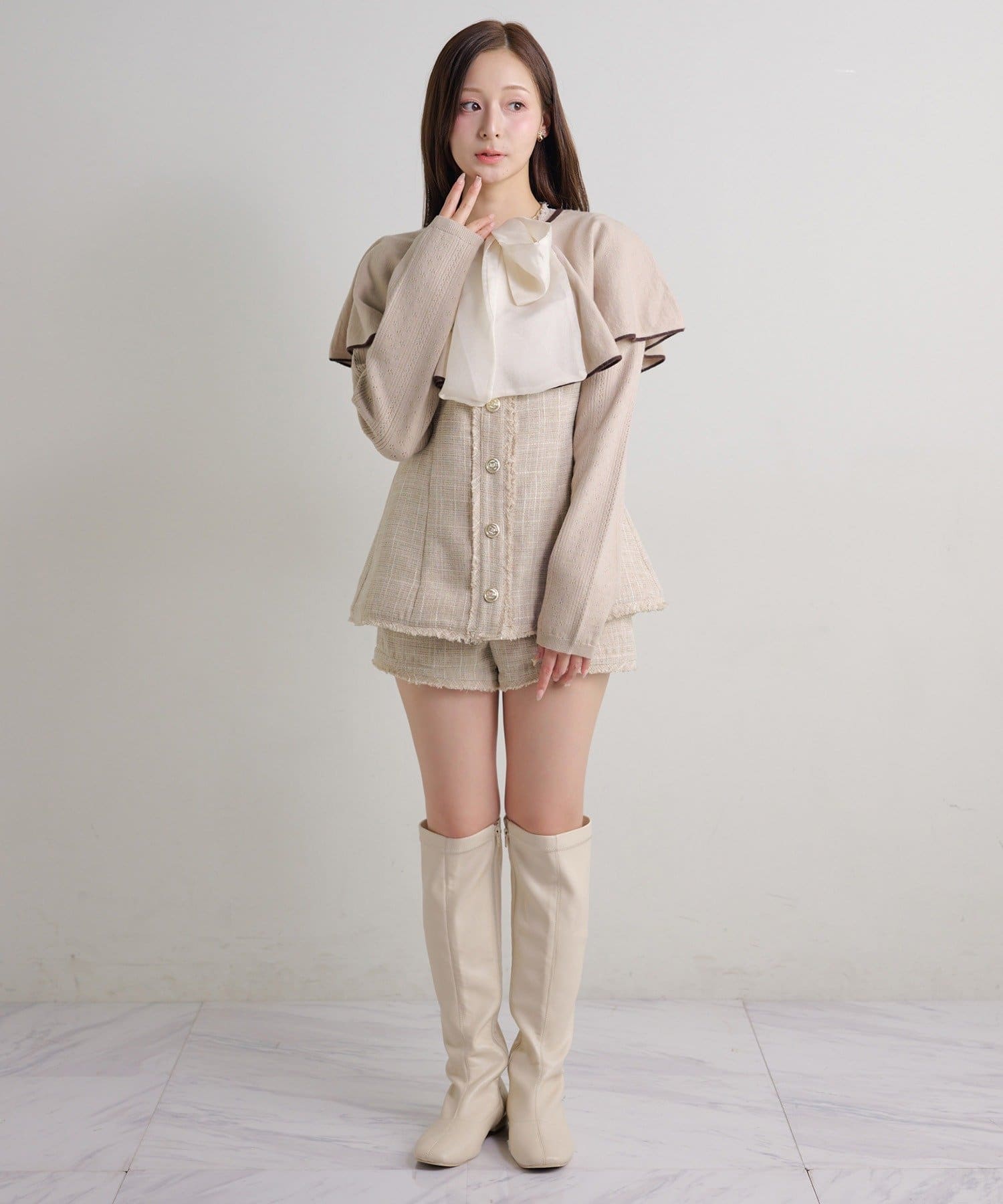 【セットアップ可能】金ボタンツイードミニワンピ