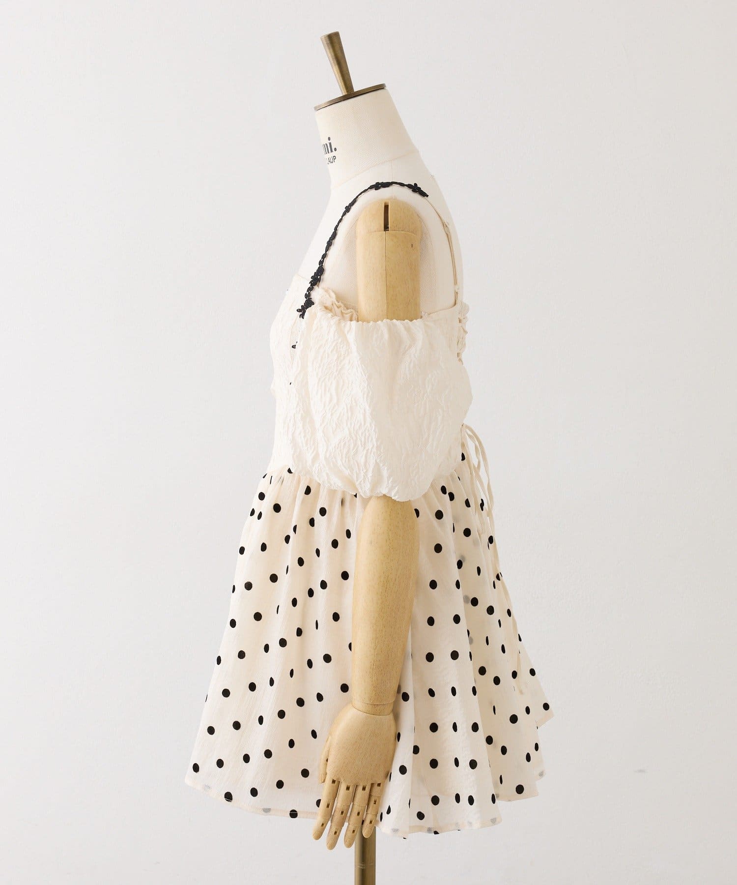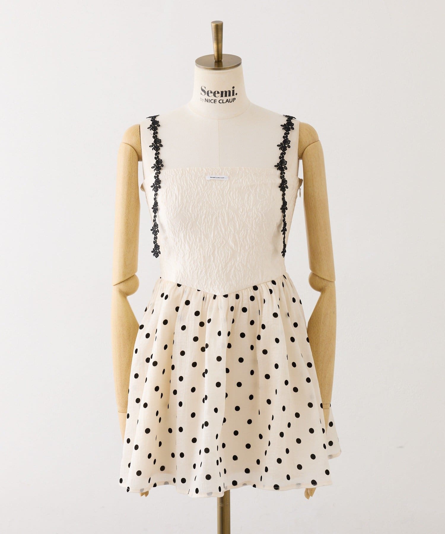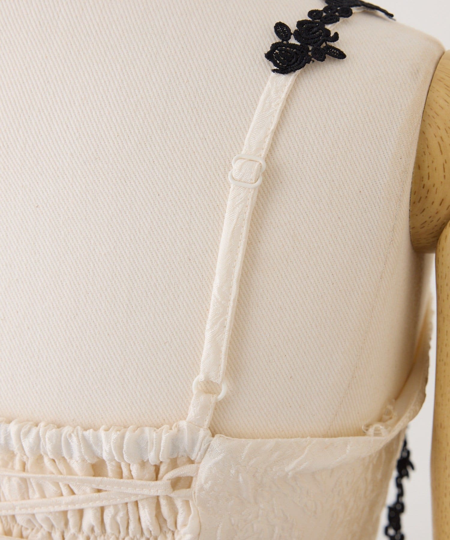 品番 0961090090 素材 【アイボリー】本体:ポリエステル100% 別布:ポリエステル50% ナイロン45% ポリウレタン5% レース:ポリエステル100% 裏地:ポリエステル100%