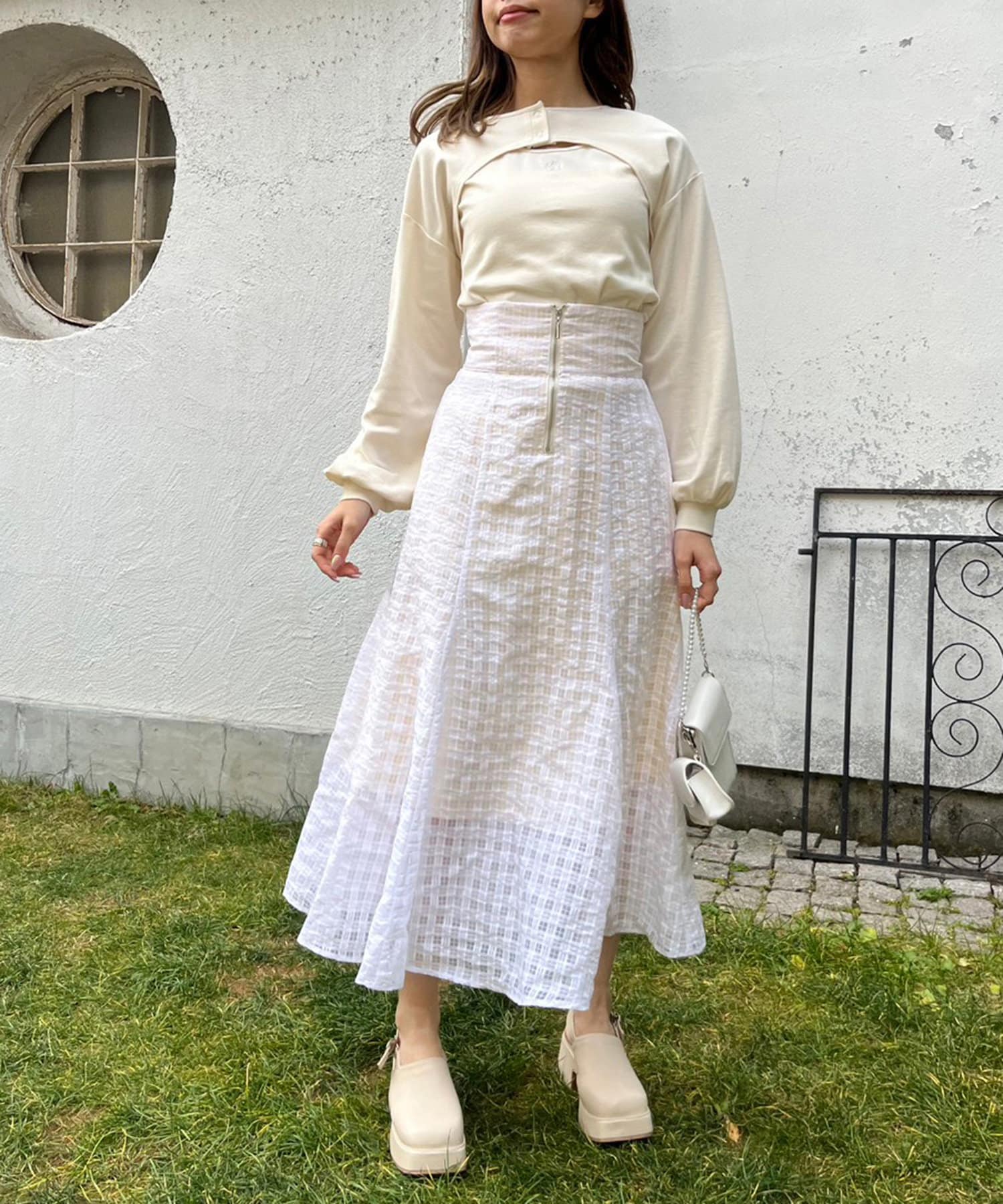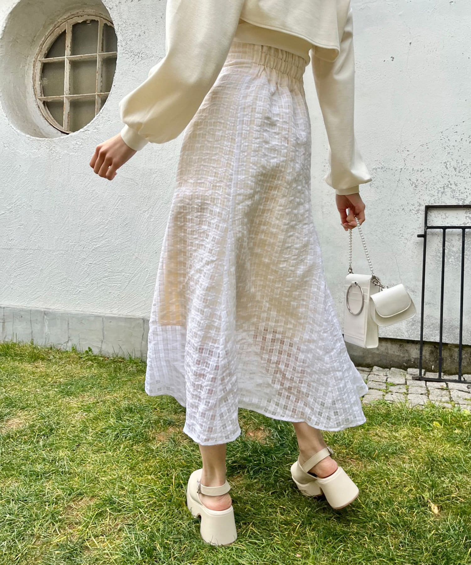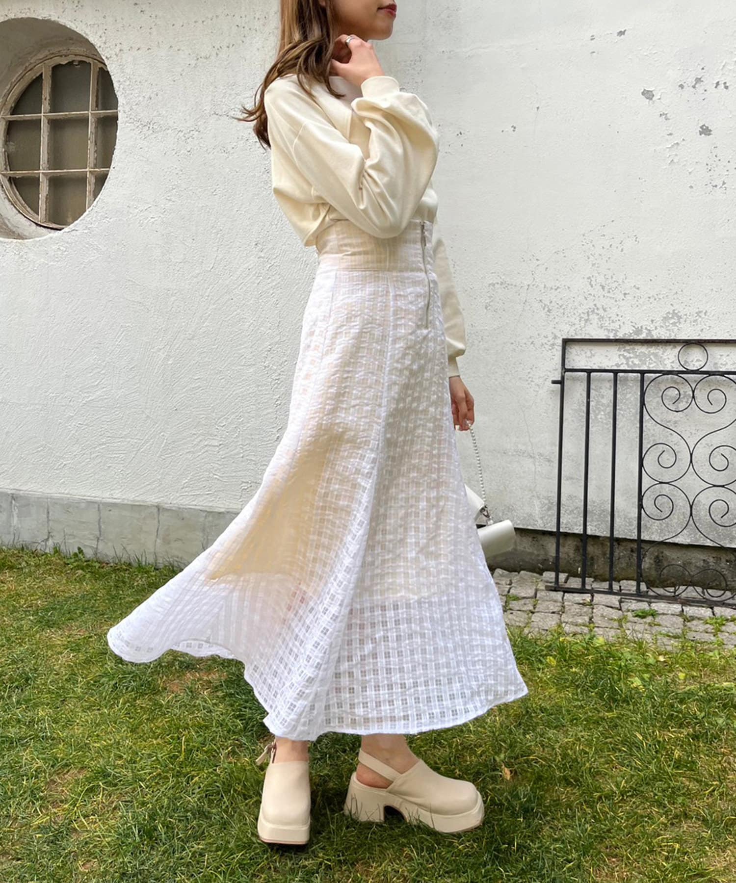 ・オフはレース素材、イエローは透け感のあるシアーチェック。足元が透けるデザインで今年らしく仕上げました。