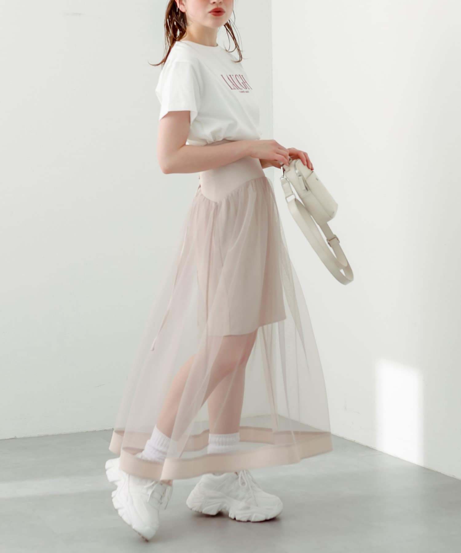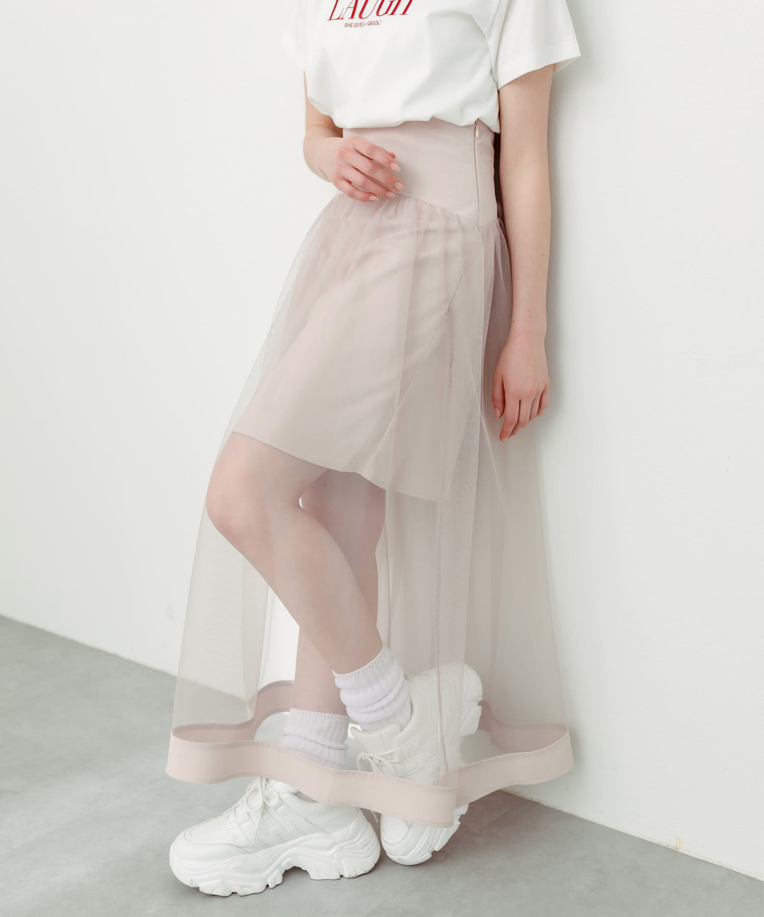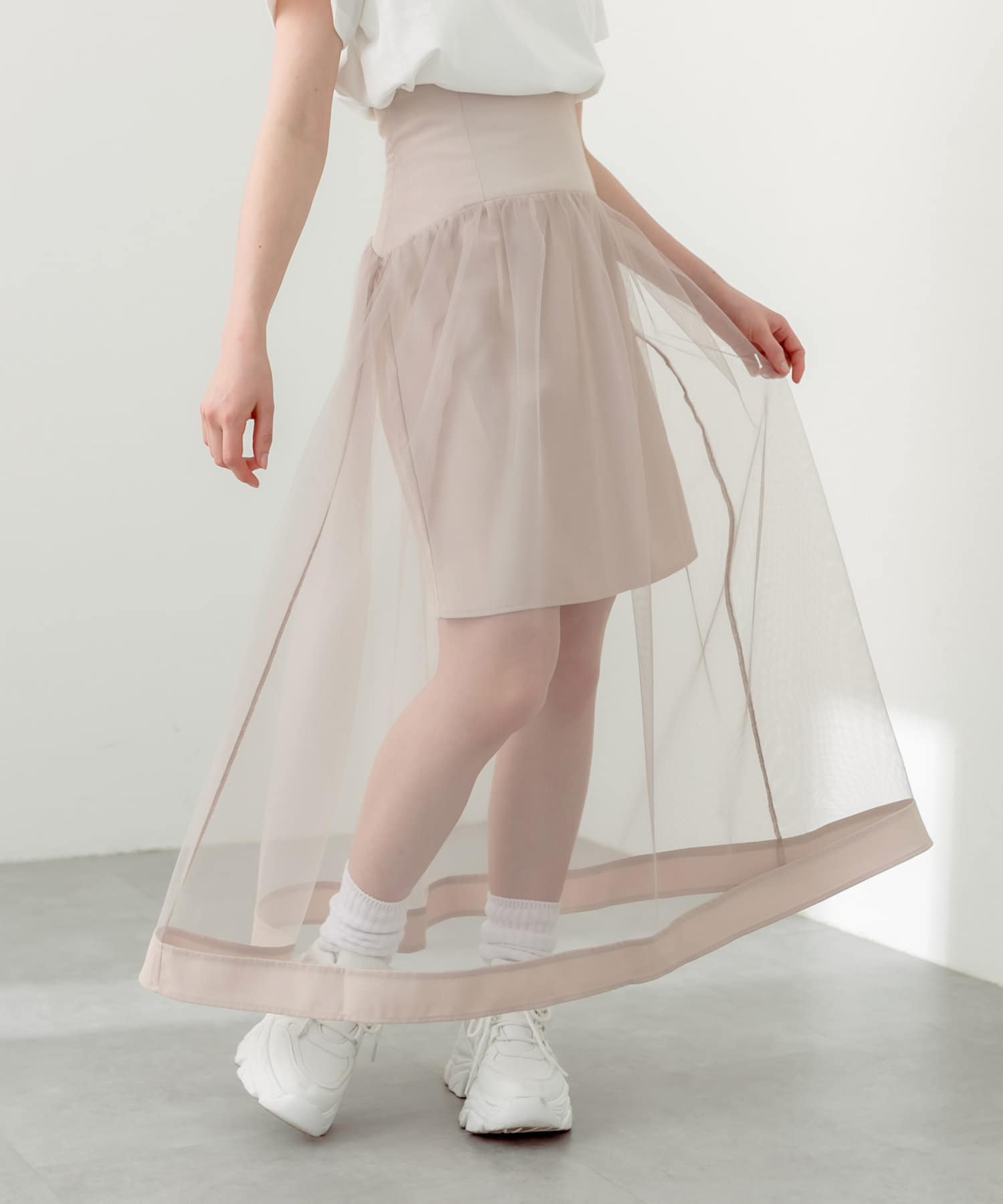 スタイリングの主役になるチュール重ねスカート
