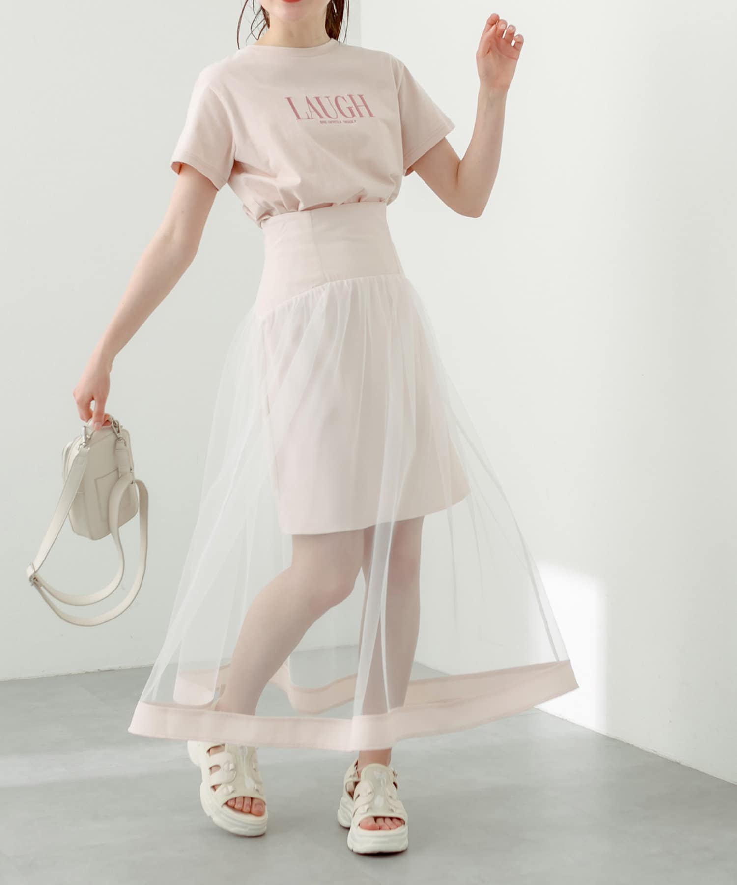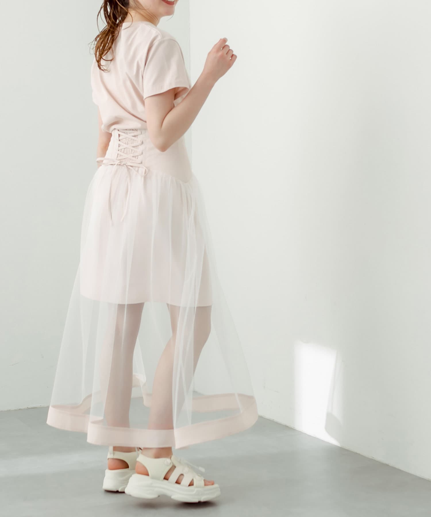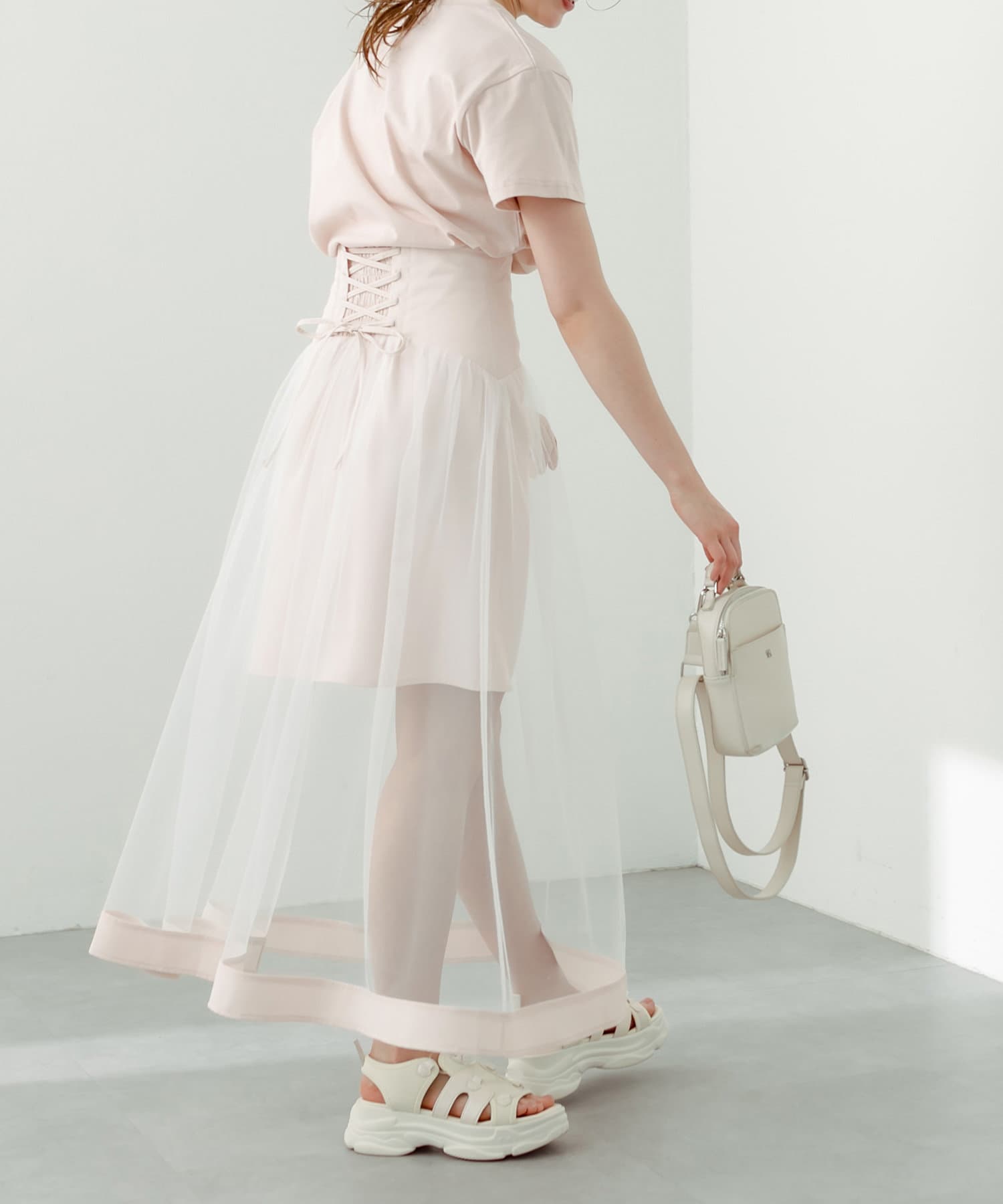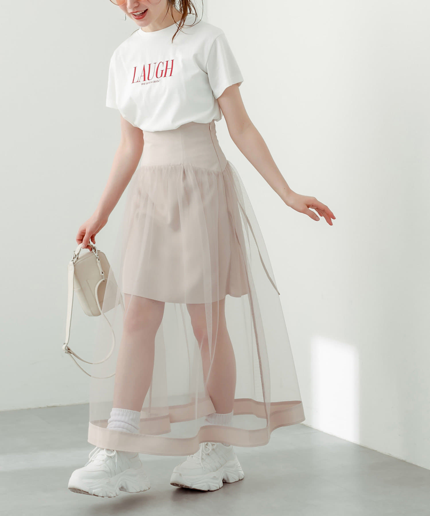 スタイリングの主役になるチュール重ねスカート