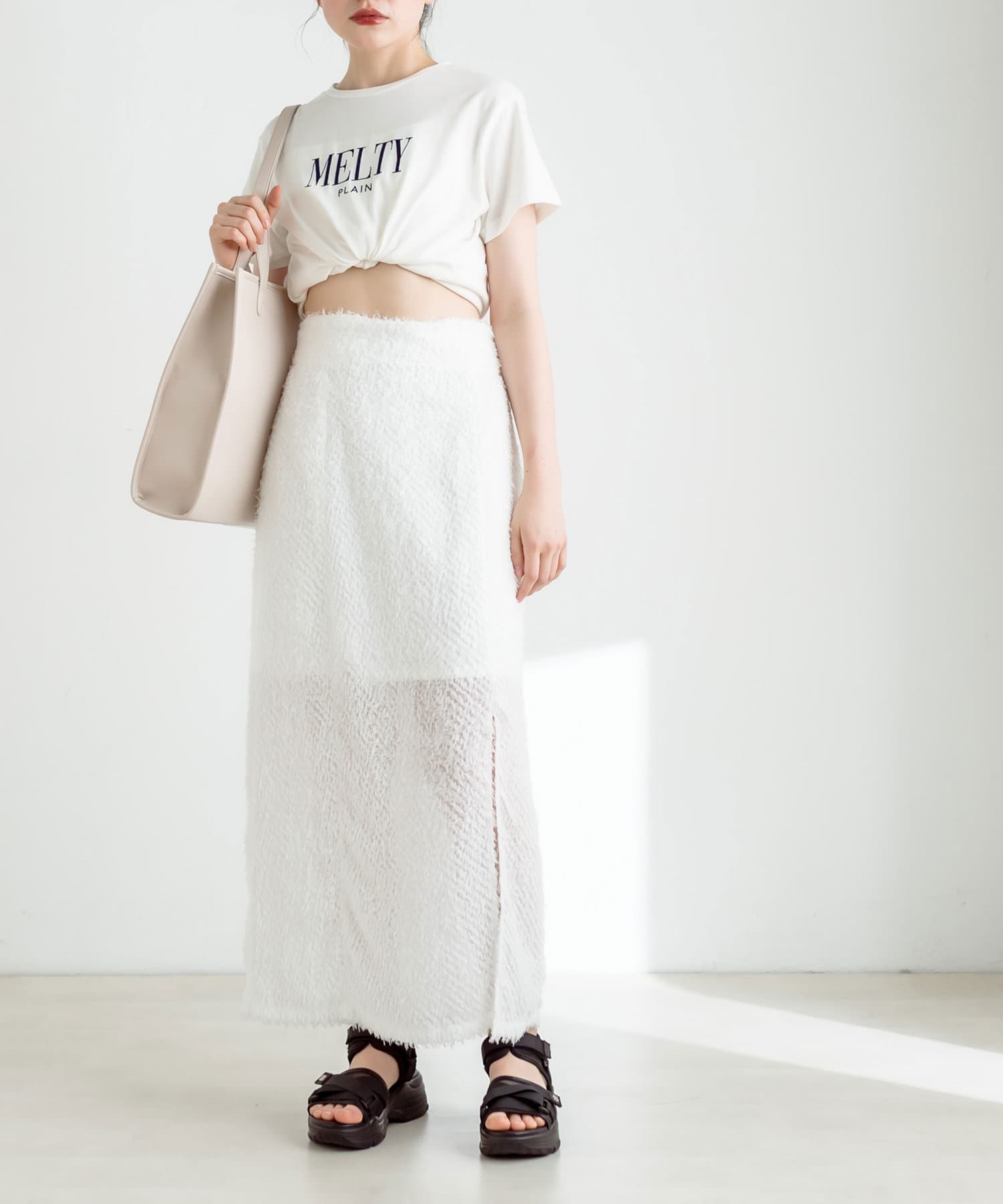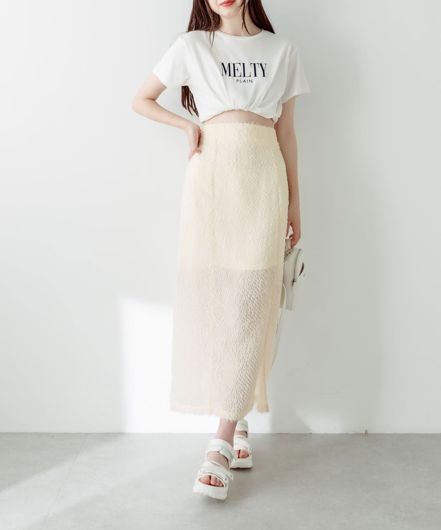 ふわふわタイトロングスカート