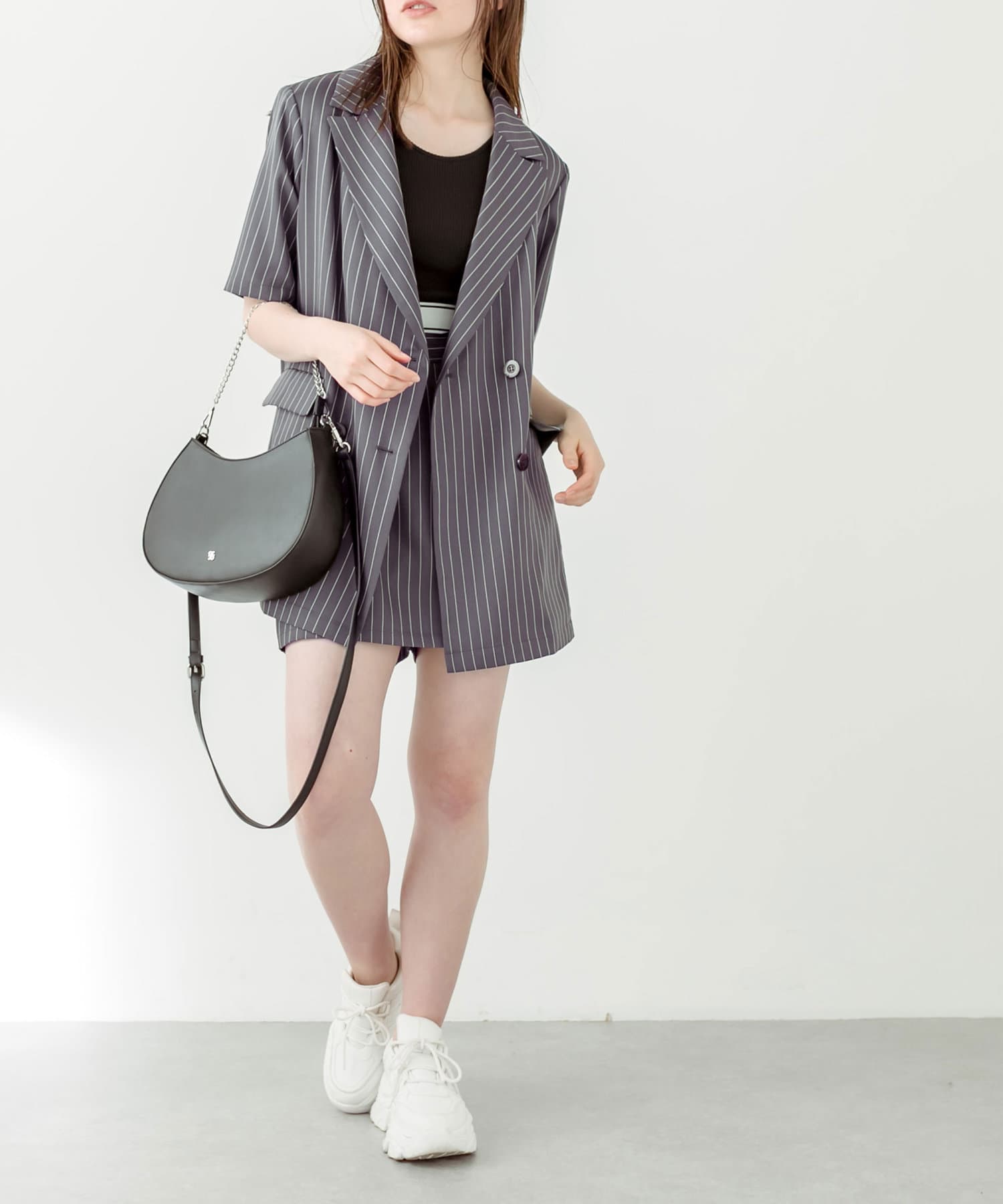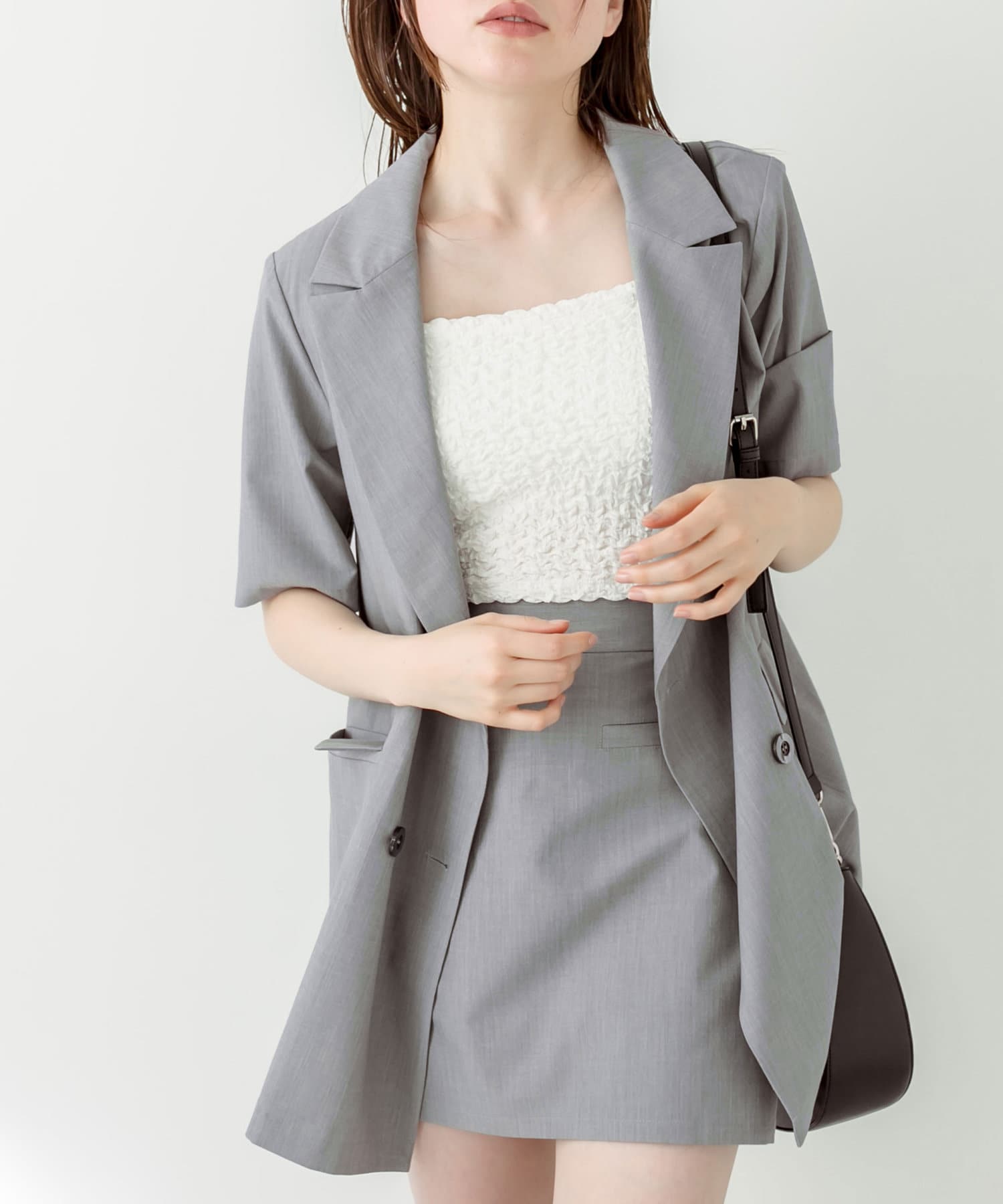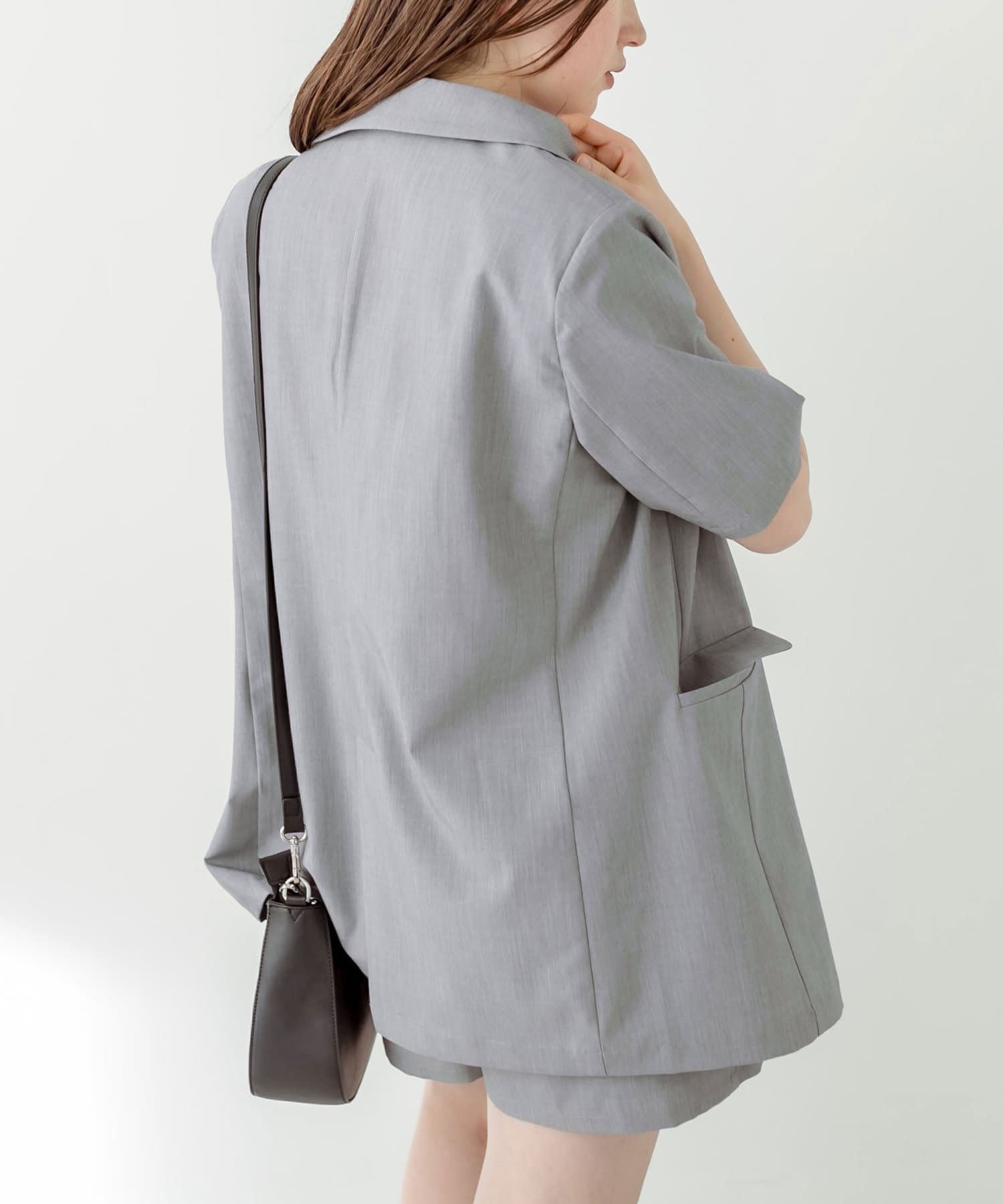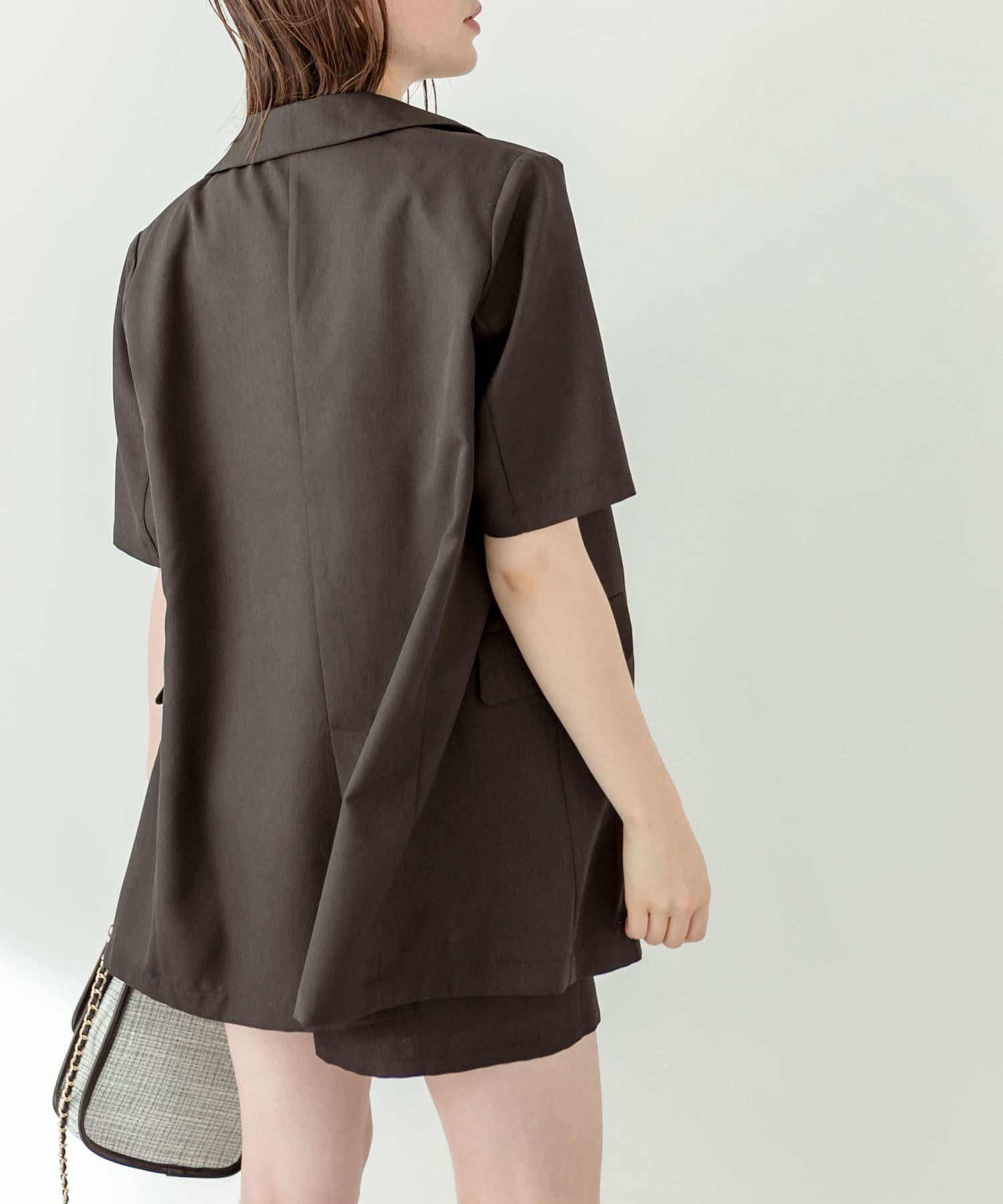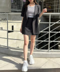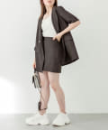 ・神バランス半袖テーラードジャケットと相性抜群の丈感。セットアップで着用すると〝神バランス"コーデが叶います。
