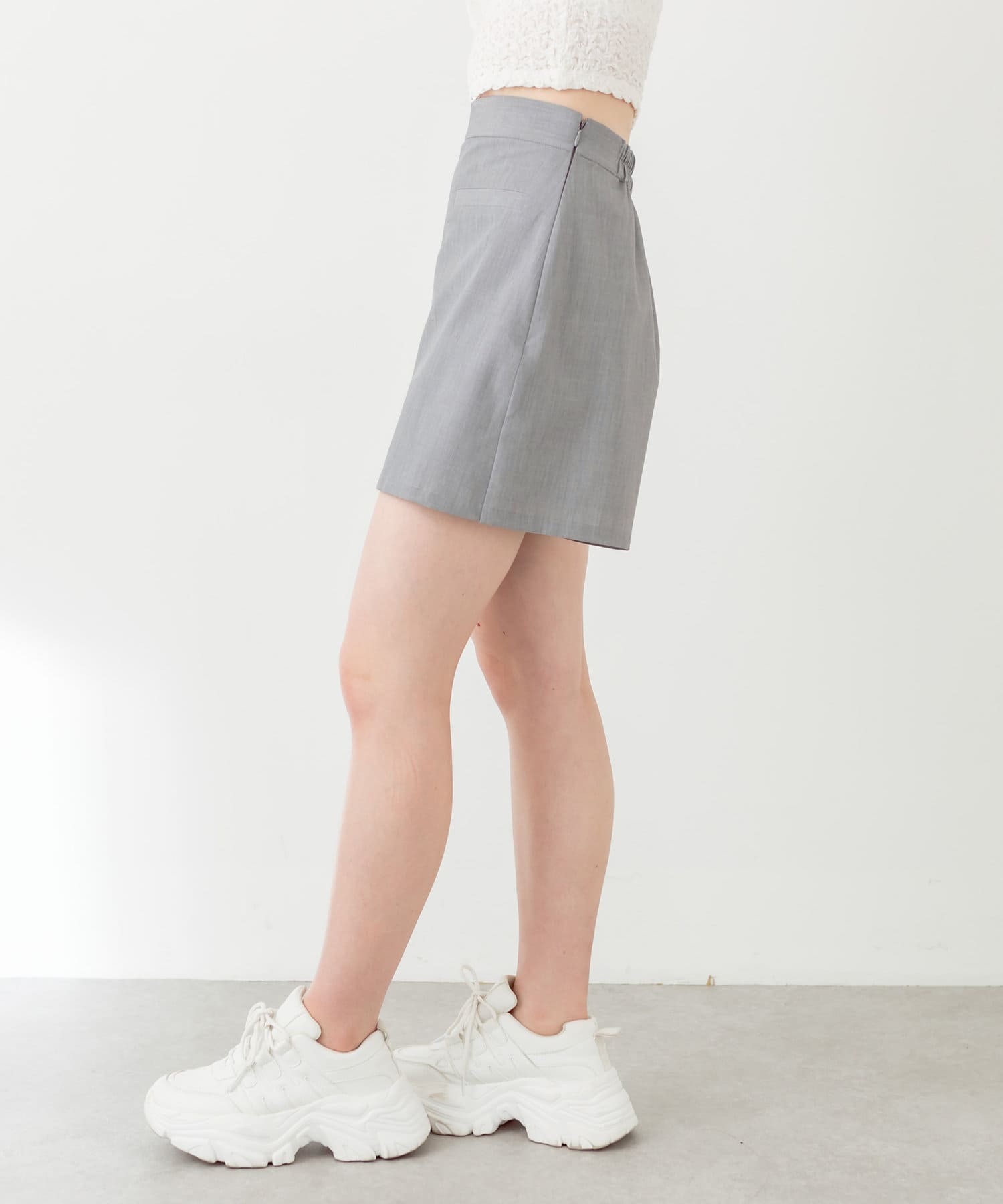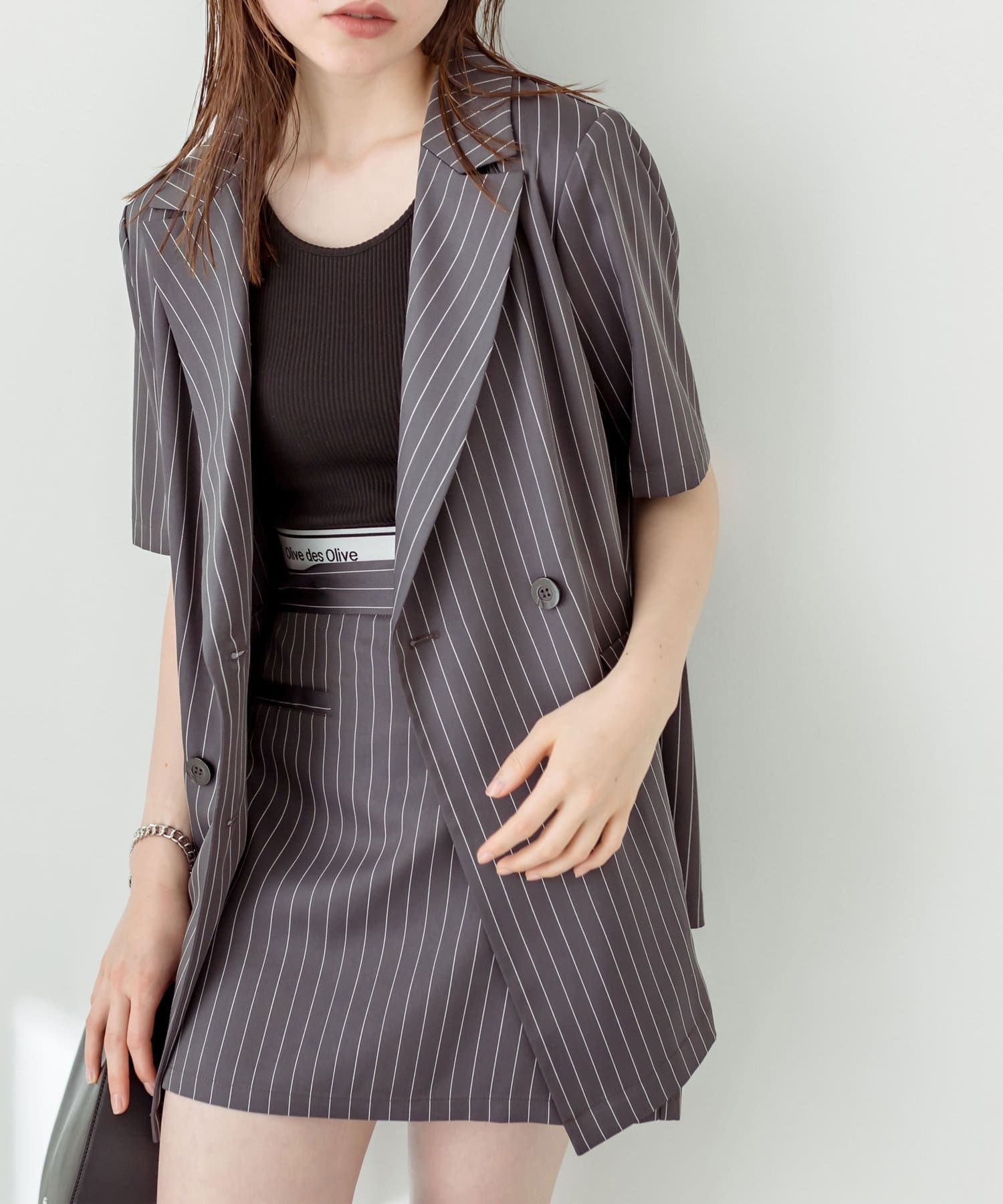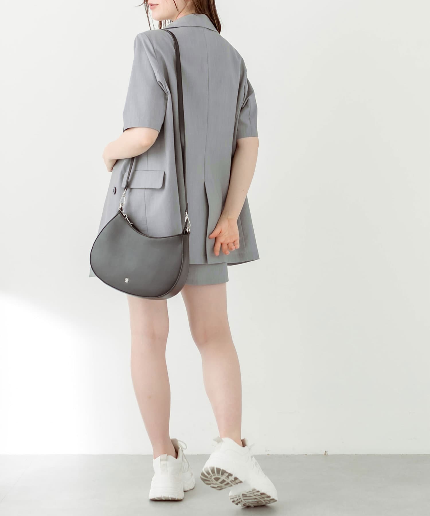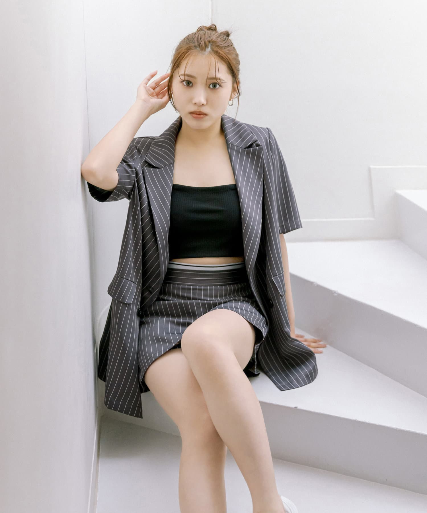 ・神バランス半袖テーラードジャケットと相性抜群の丈感。セットアップで着用すると〝神バランス"コーデが叶います。