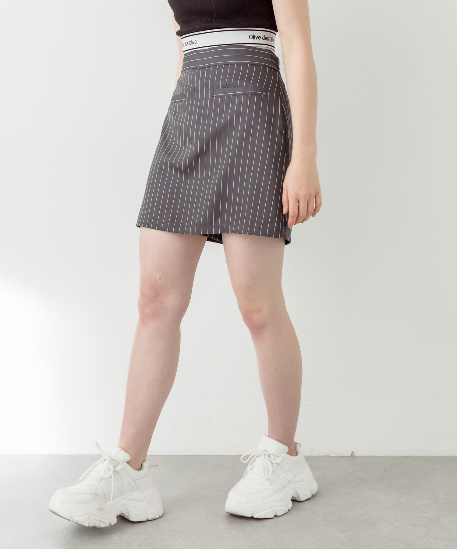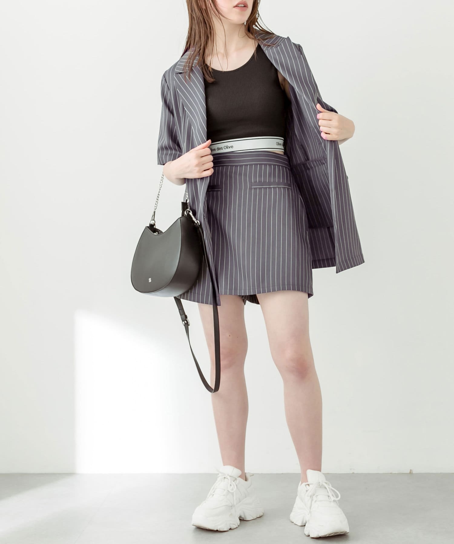 ・足元はソックスに厚底スニーカーで合わせるのが今年らしくおすすめです。