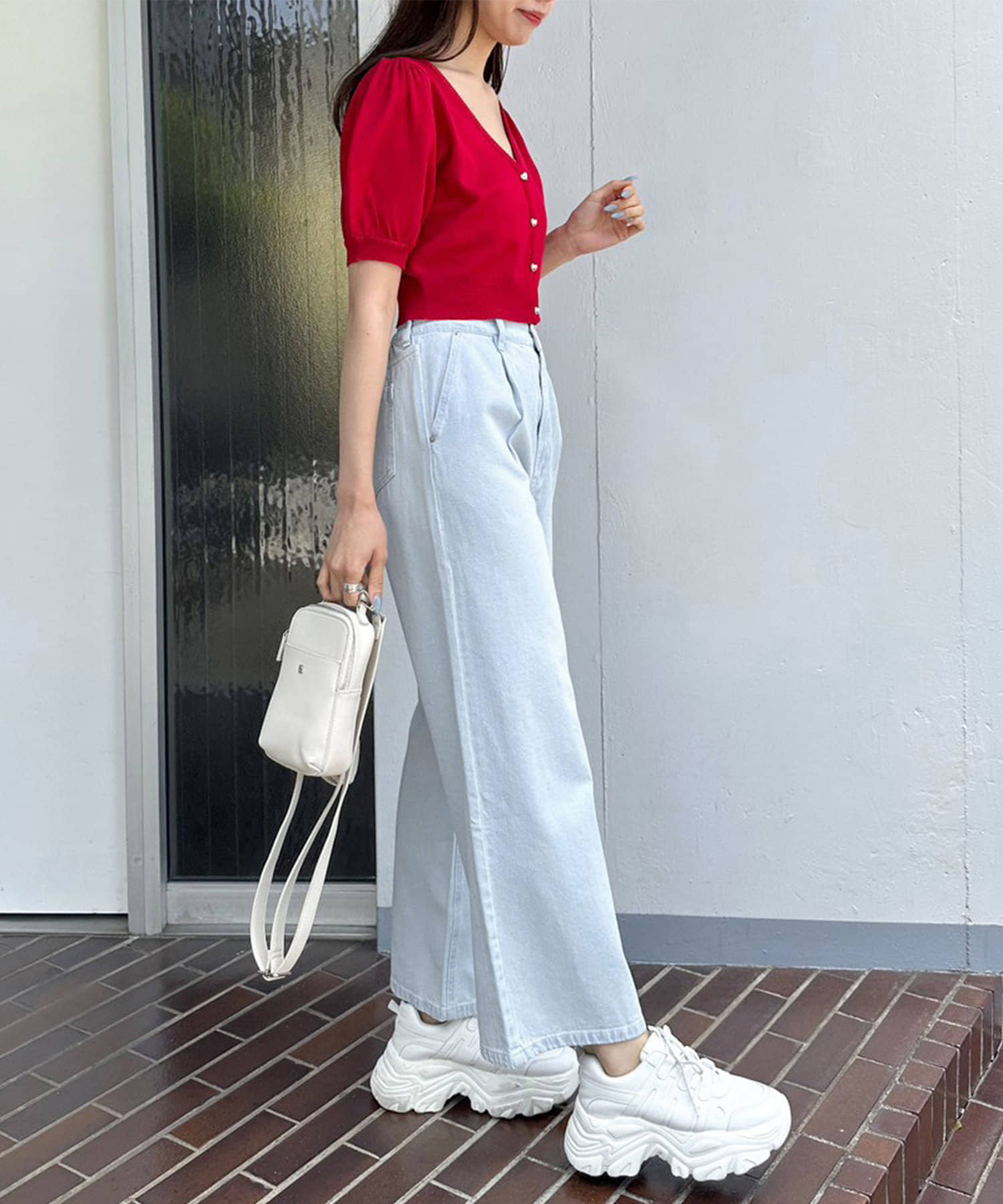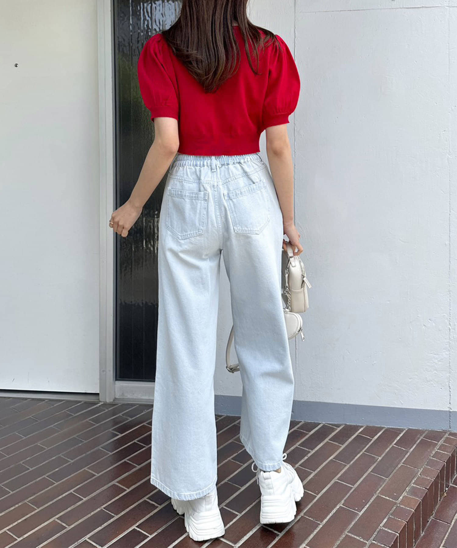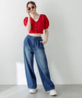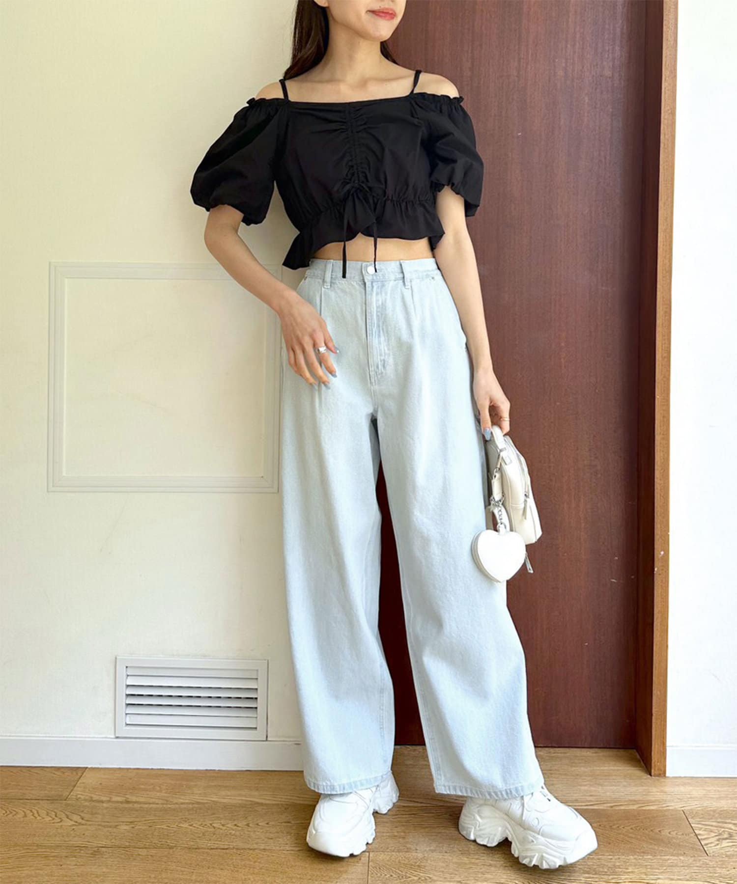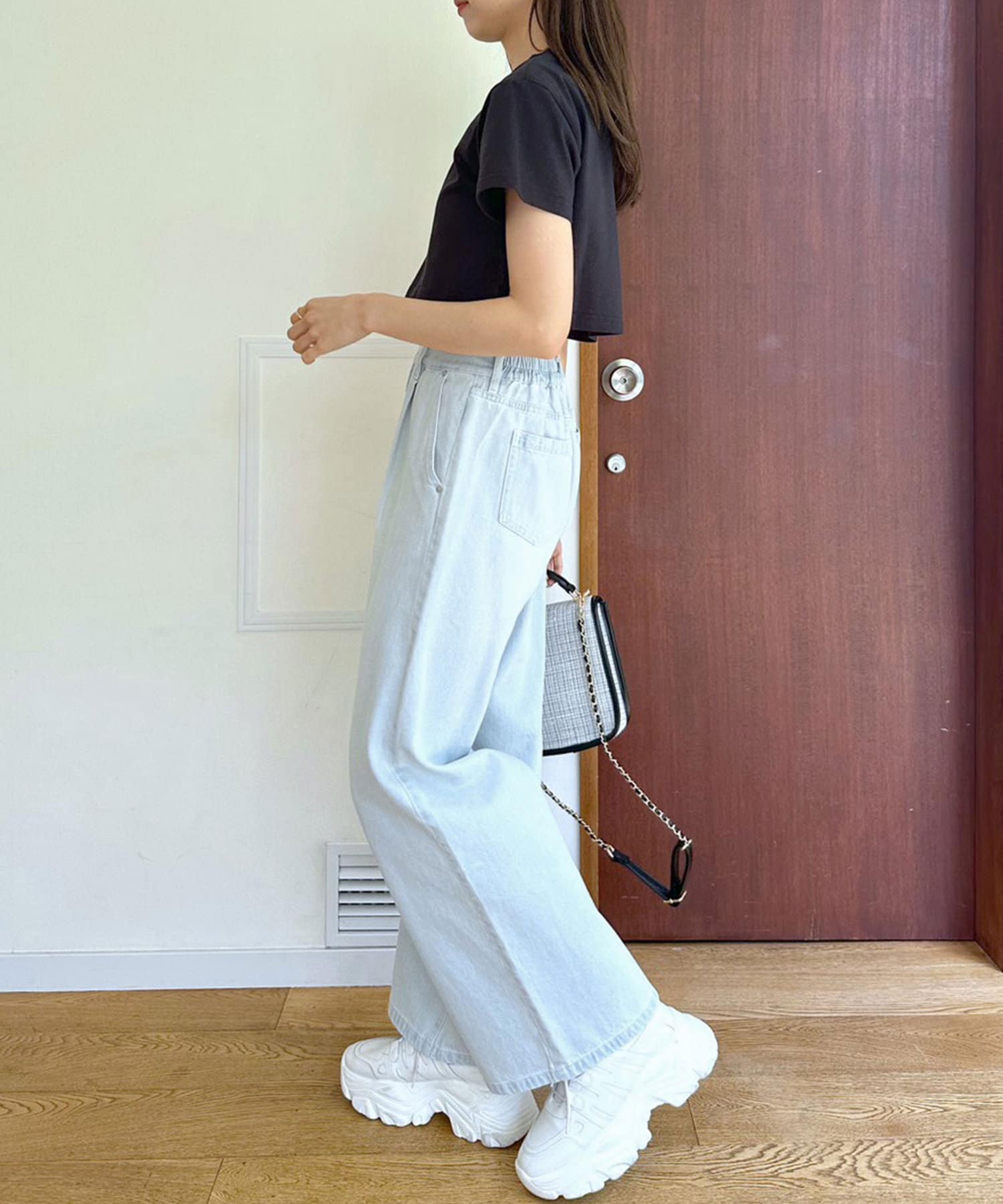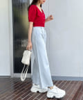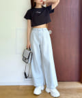 ・ハイウエストなので、コンパクトなトップスで合わせるとバランスが良いです。