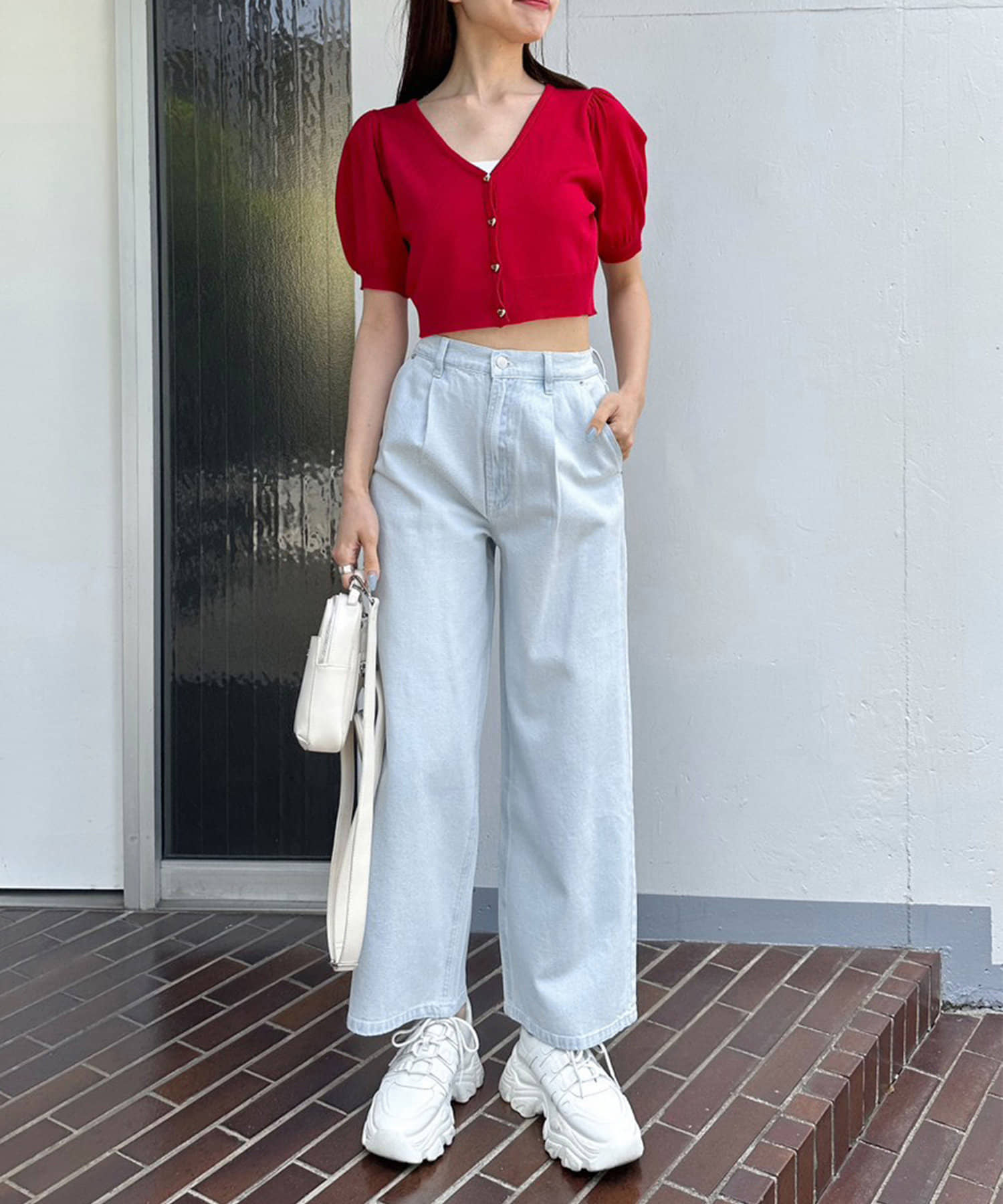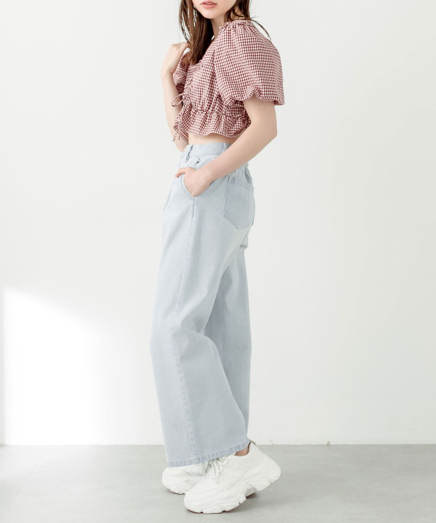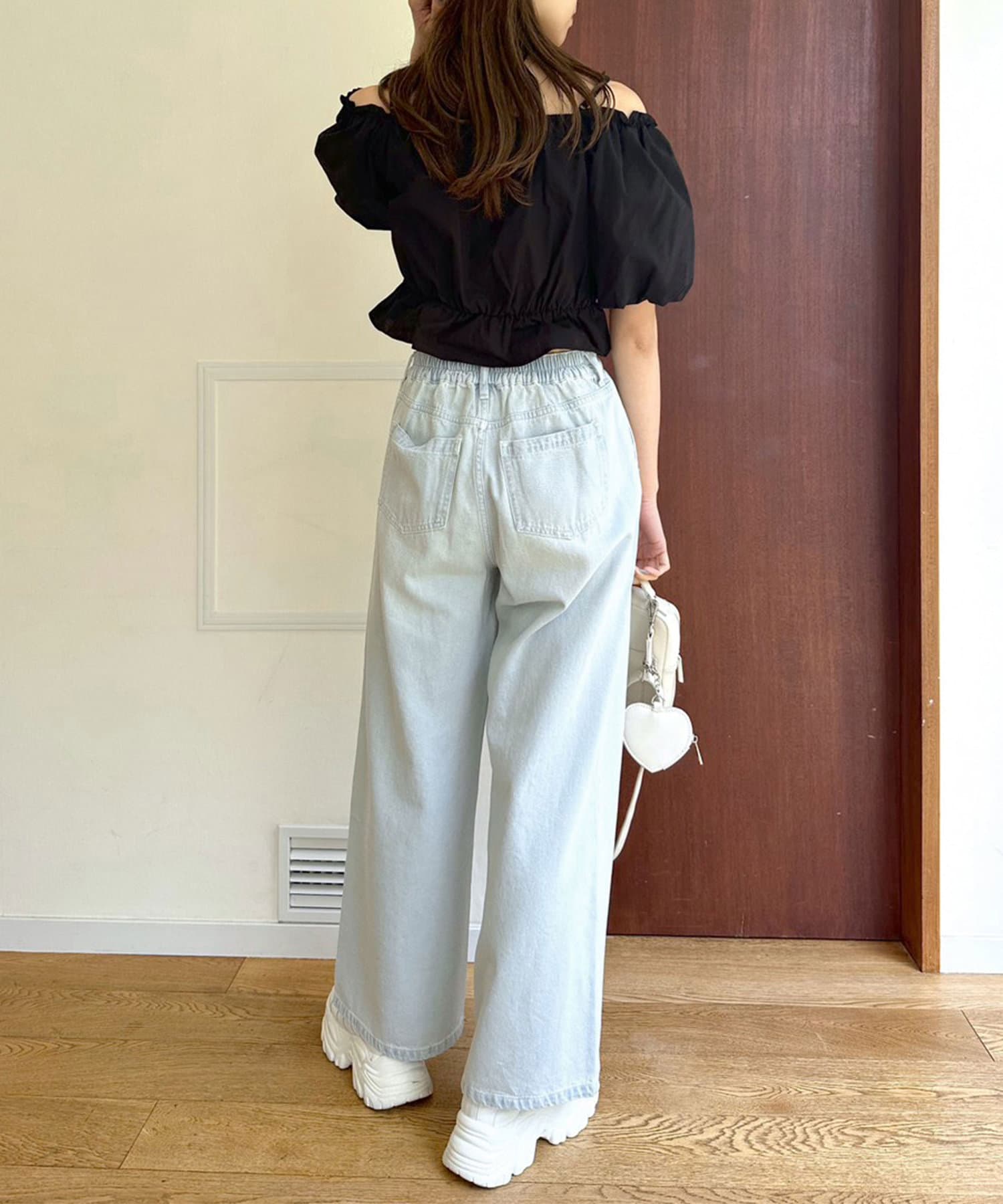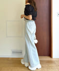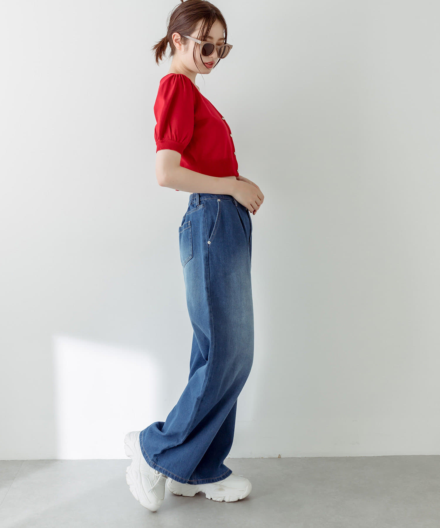 ・ハイウエストなので、コンパクトなトップスで合わせるとバランスが良いです。