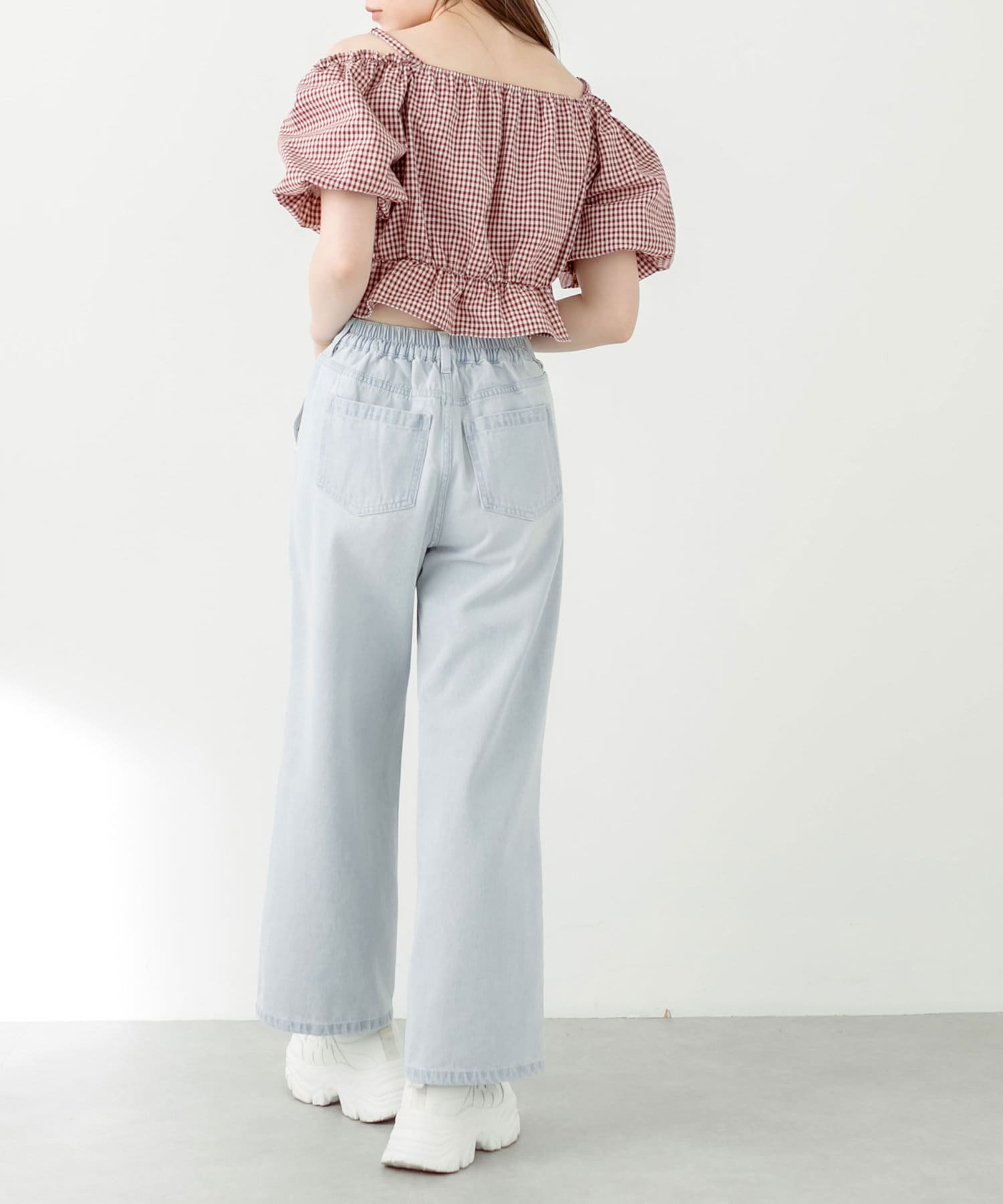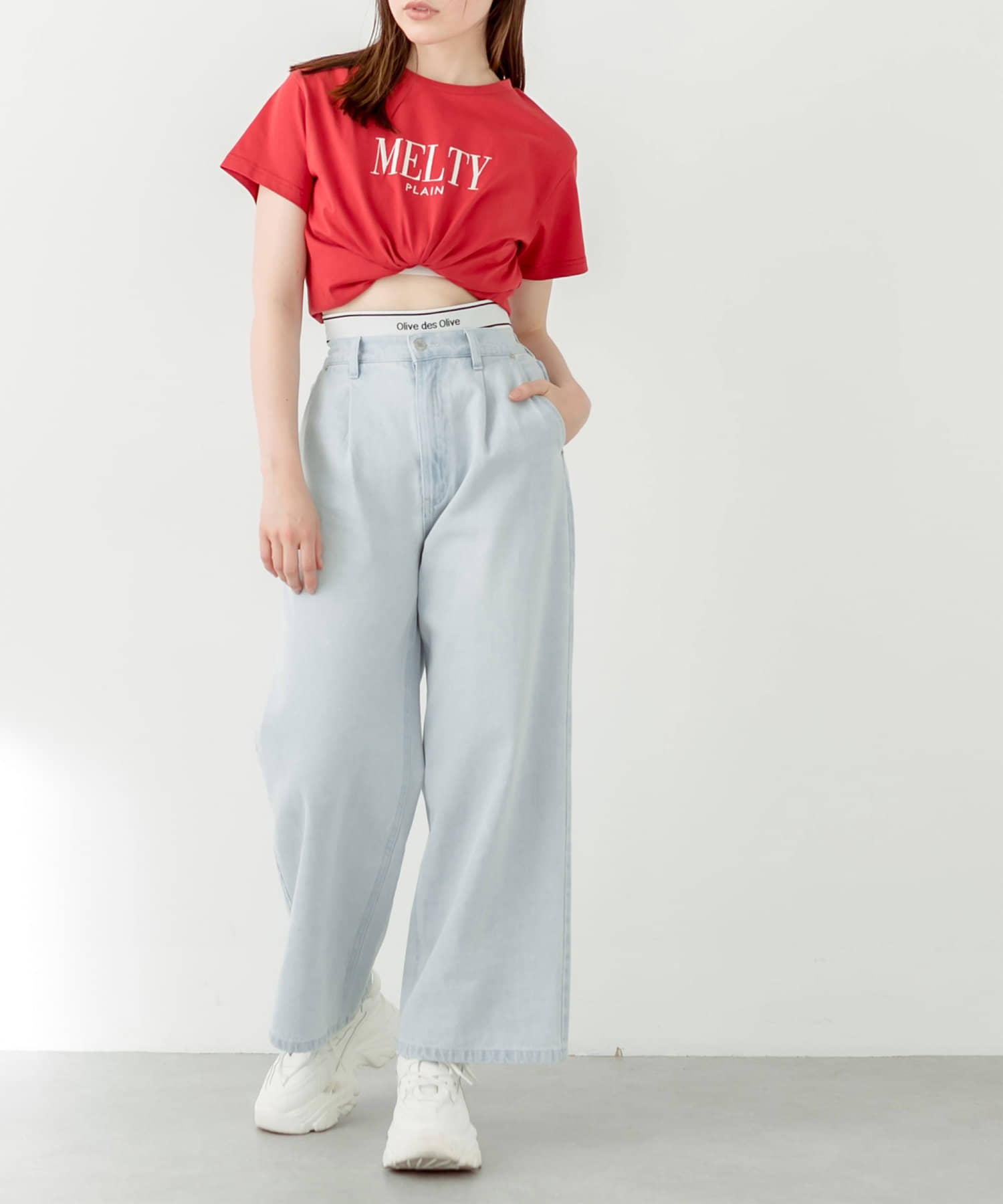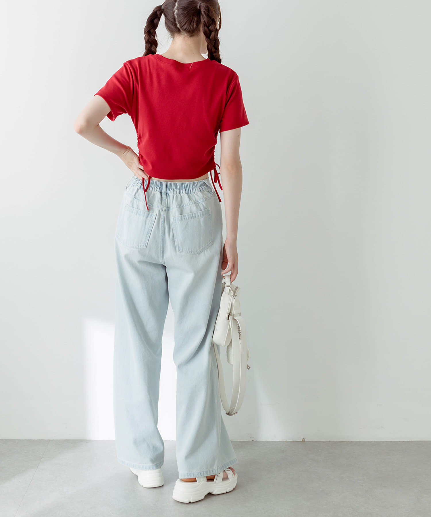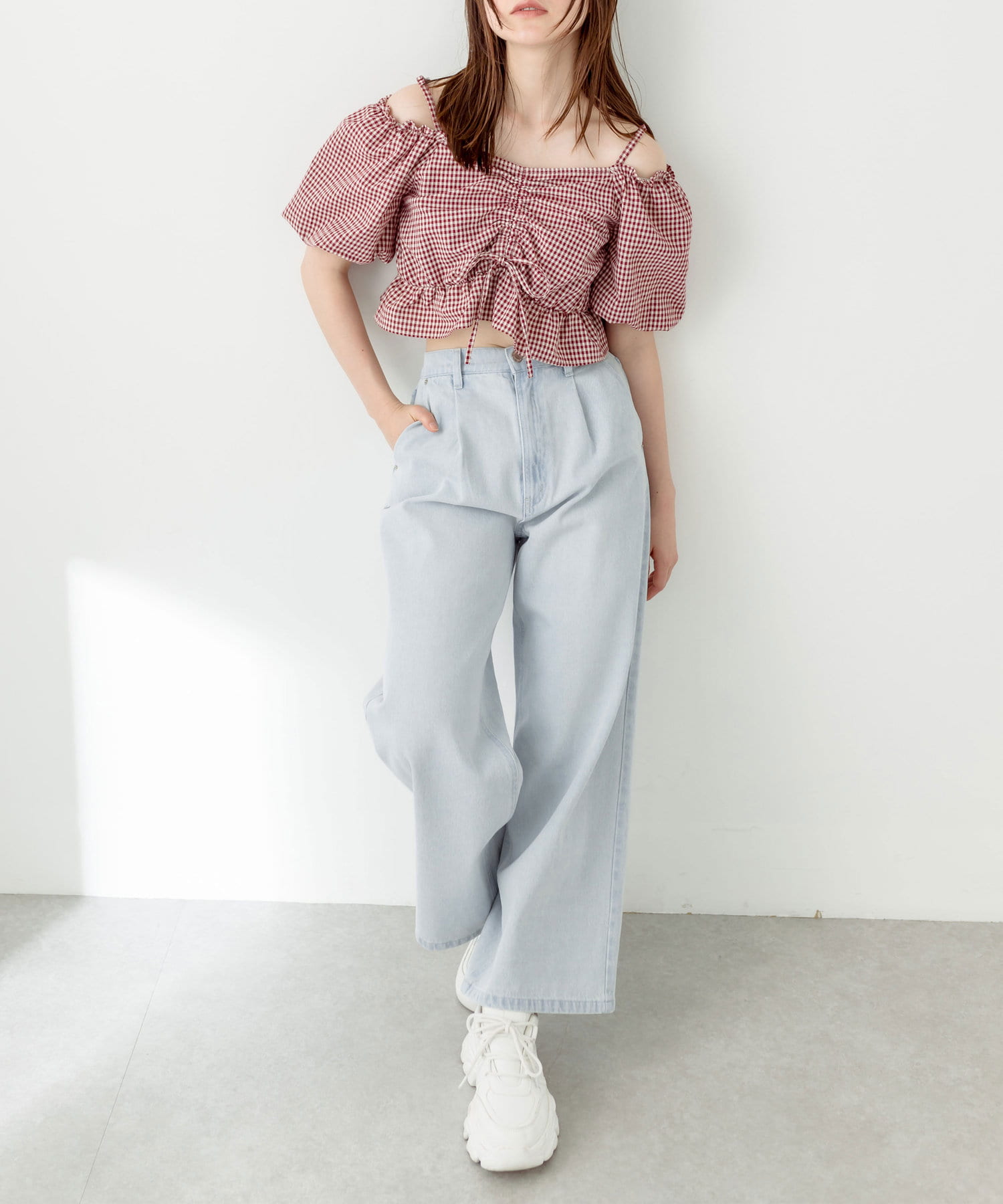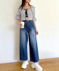 ・ハイウエストなので、コンパクトなトップスで合わせるとバランスが良いです。