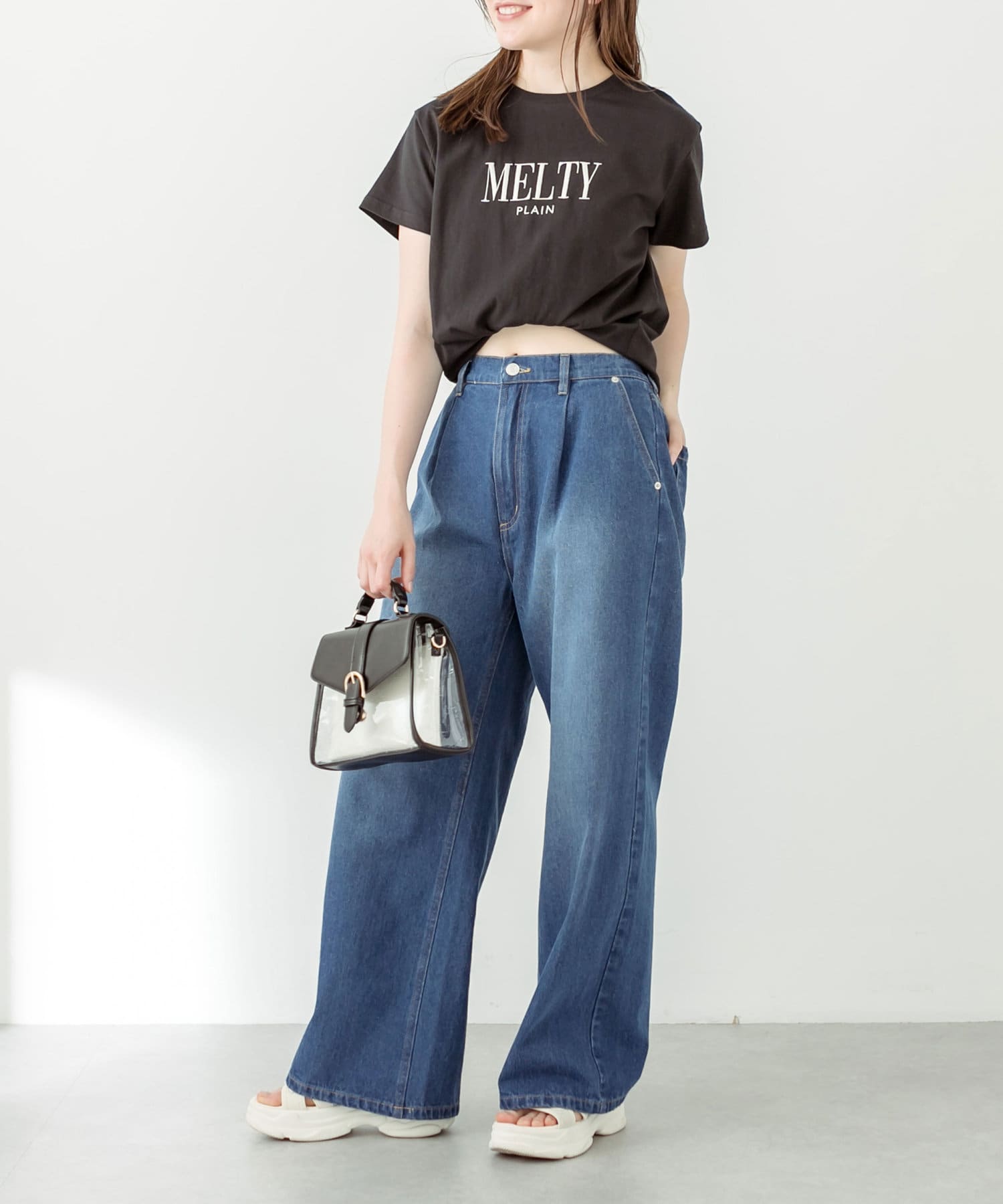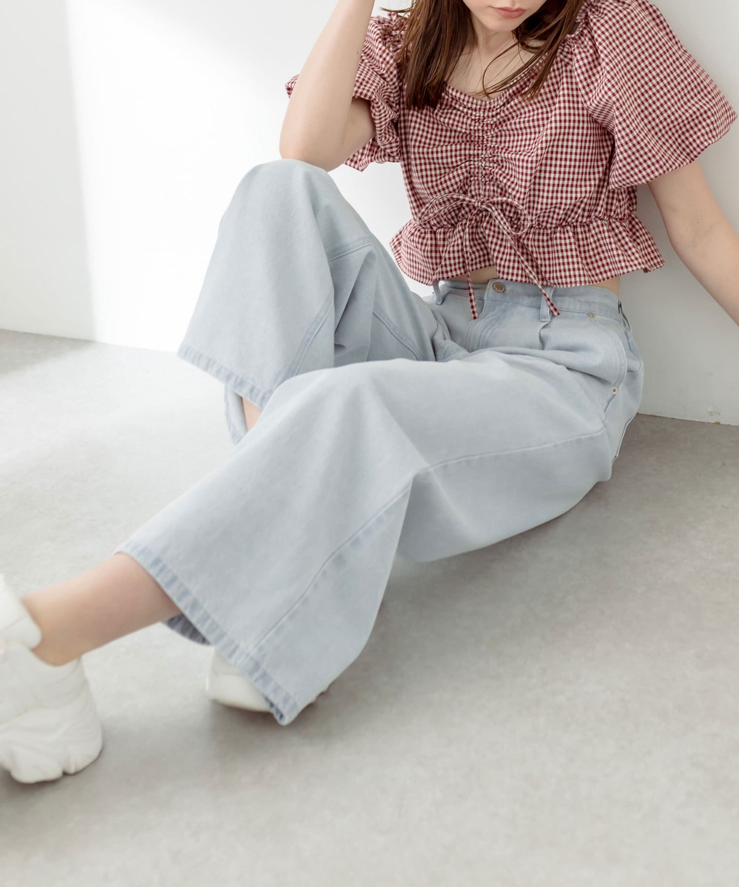 【S/Mサイズ展開】ゆる盛れハイウエストデニムパンツ