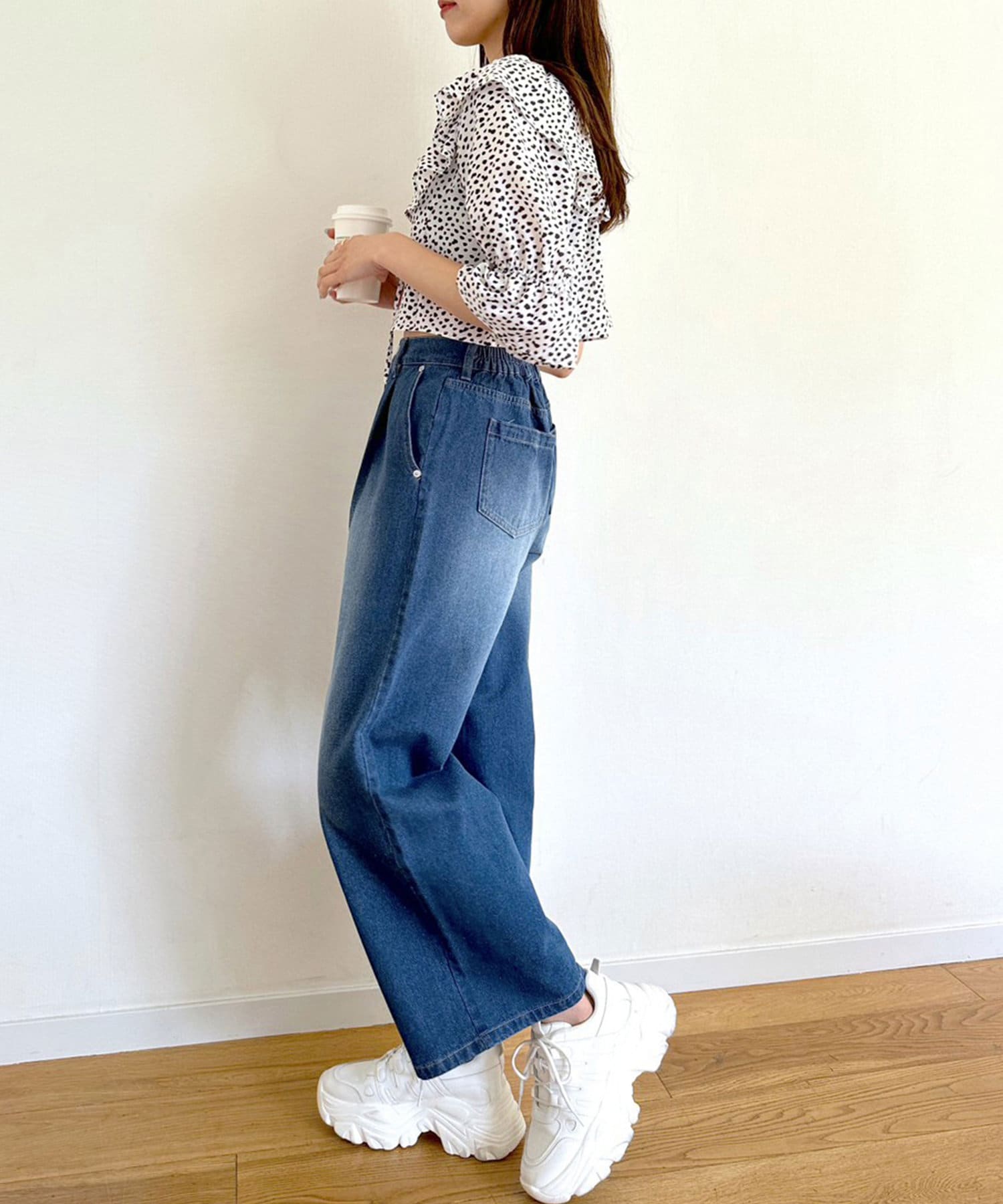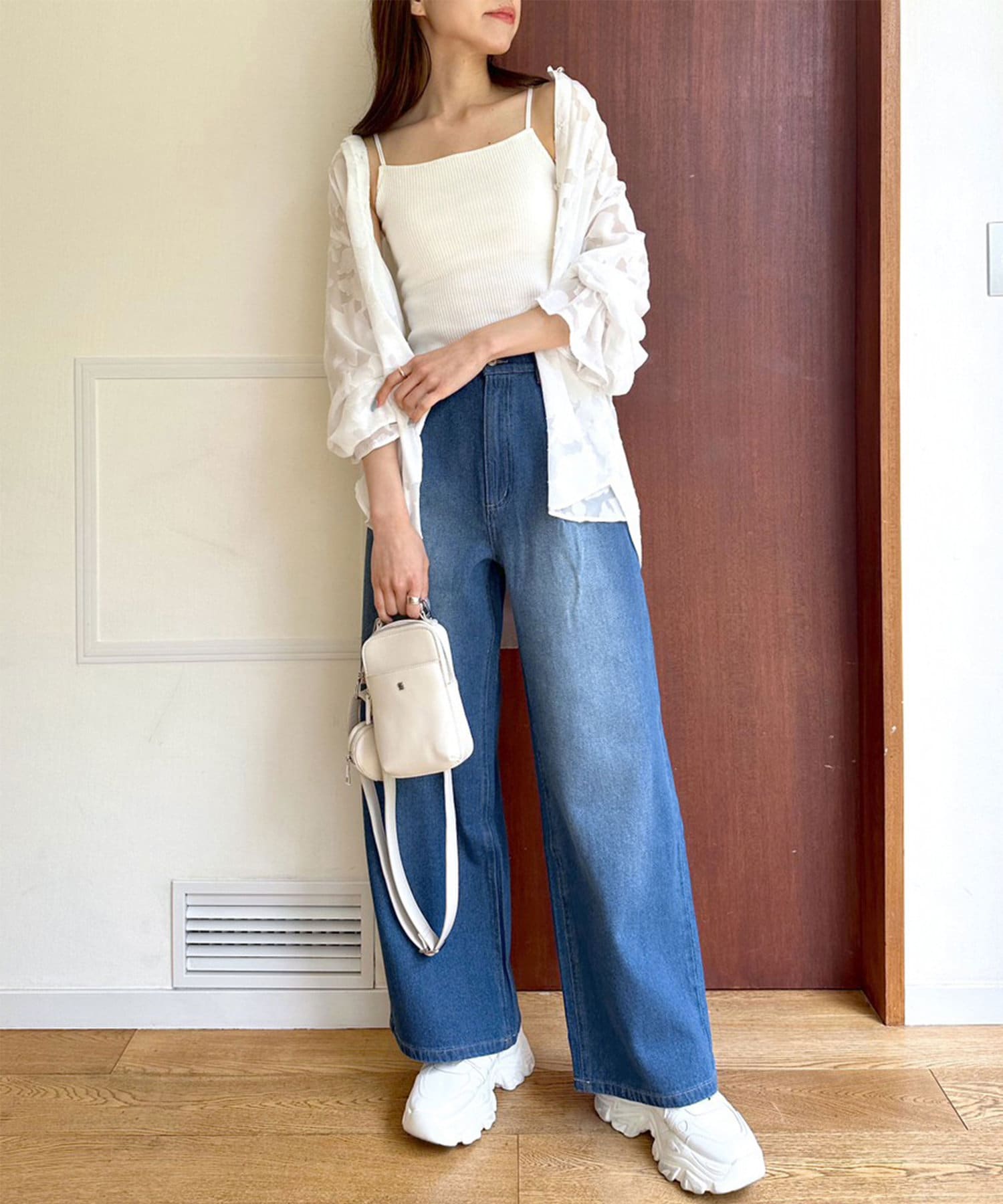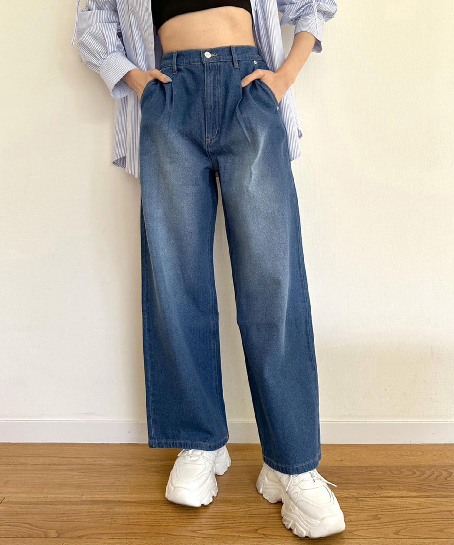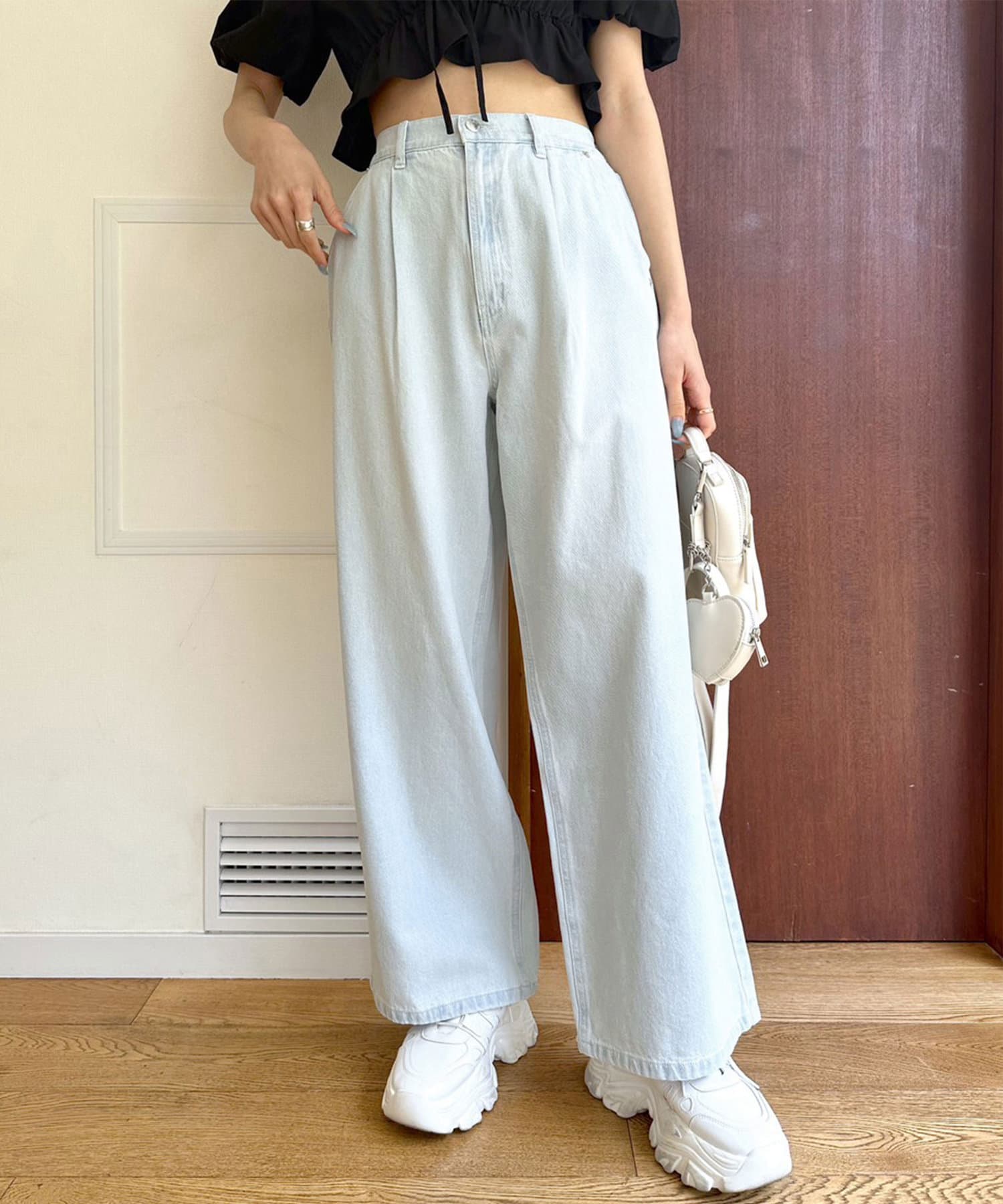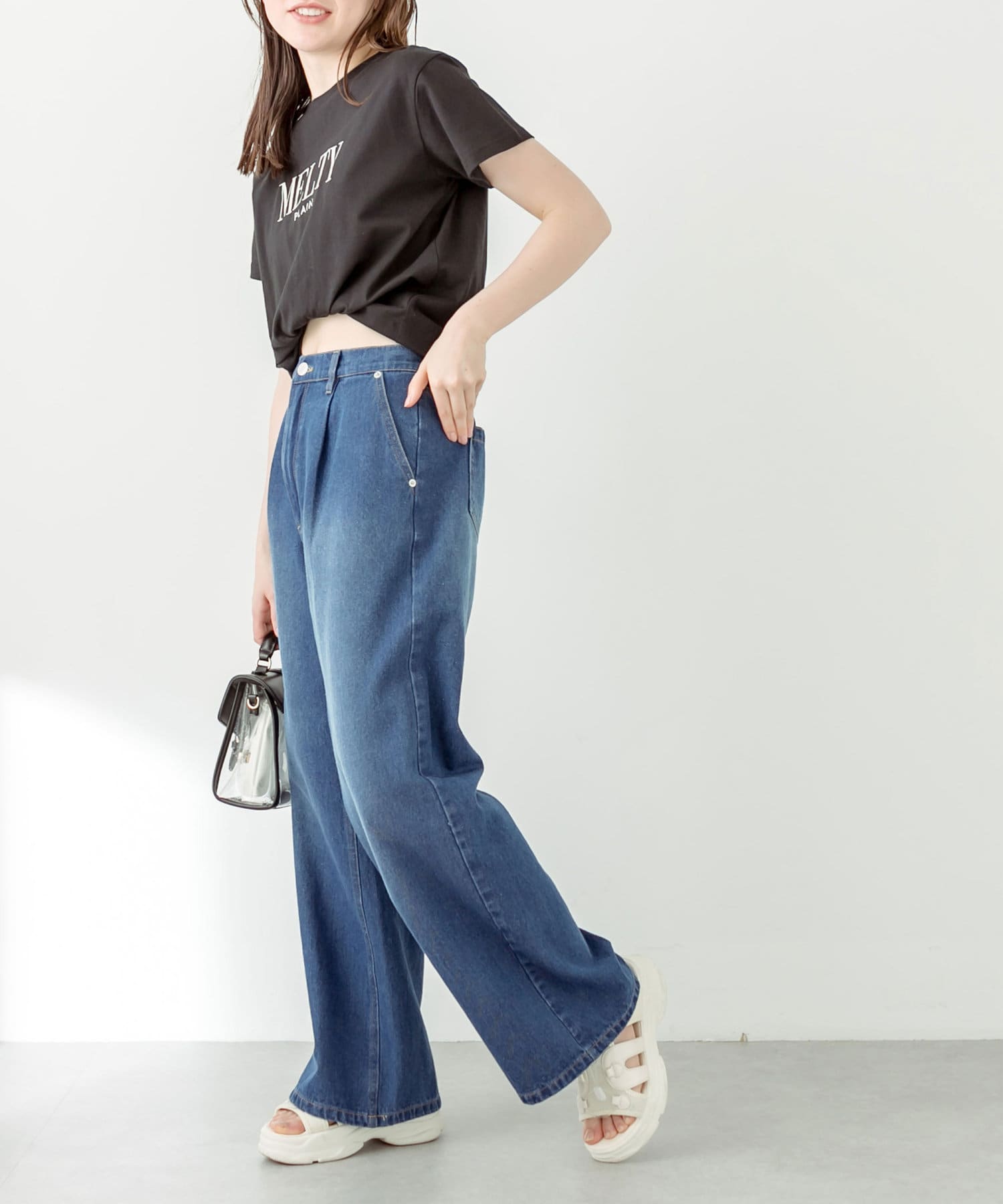 ・トレンドのゆるシルエットがポイントのデニムパンツ。