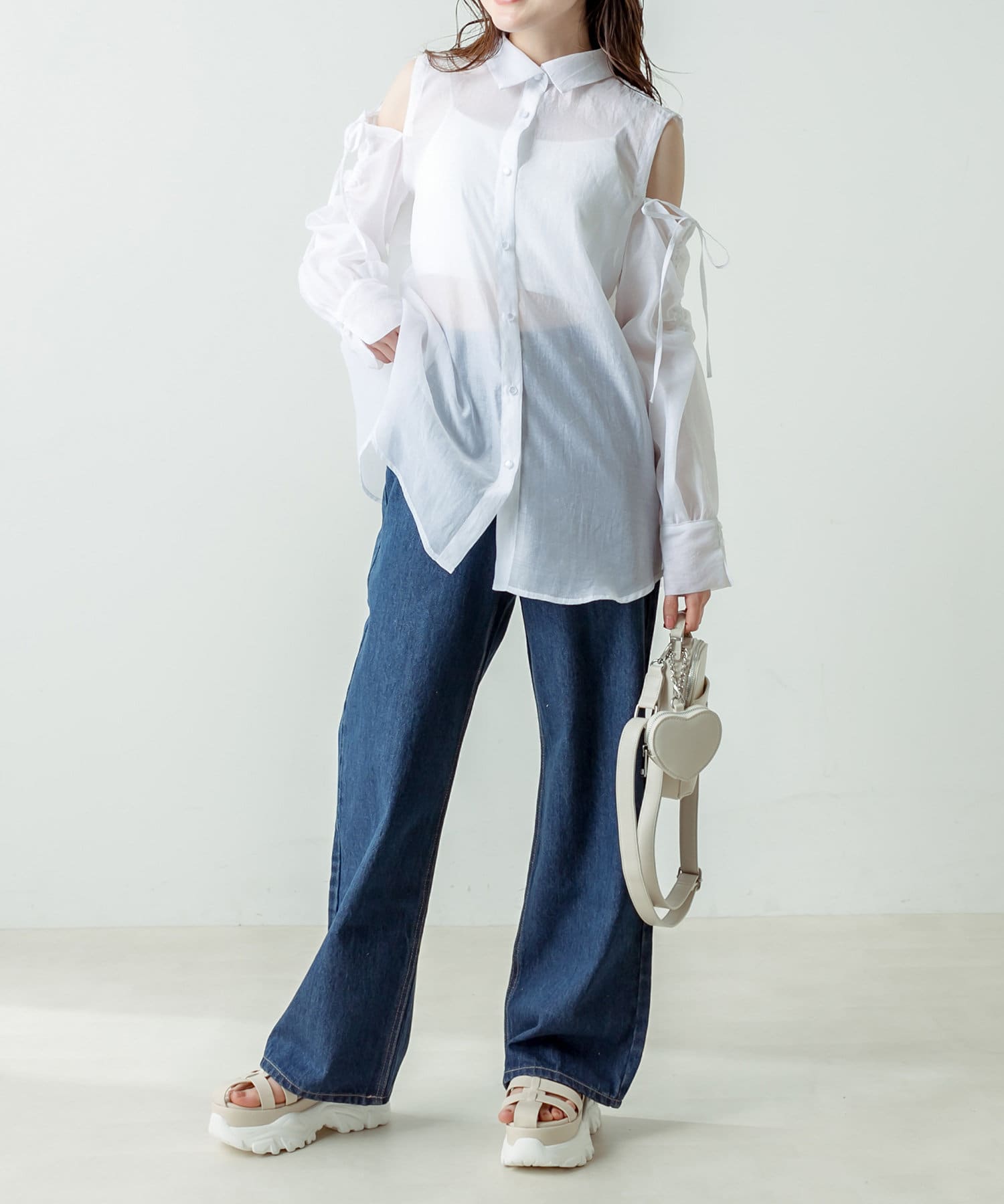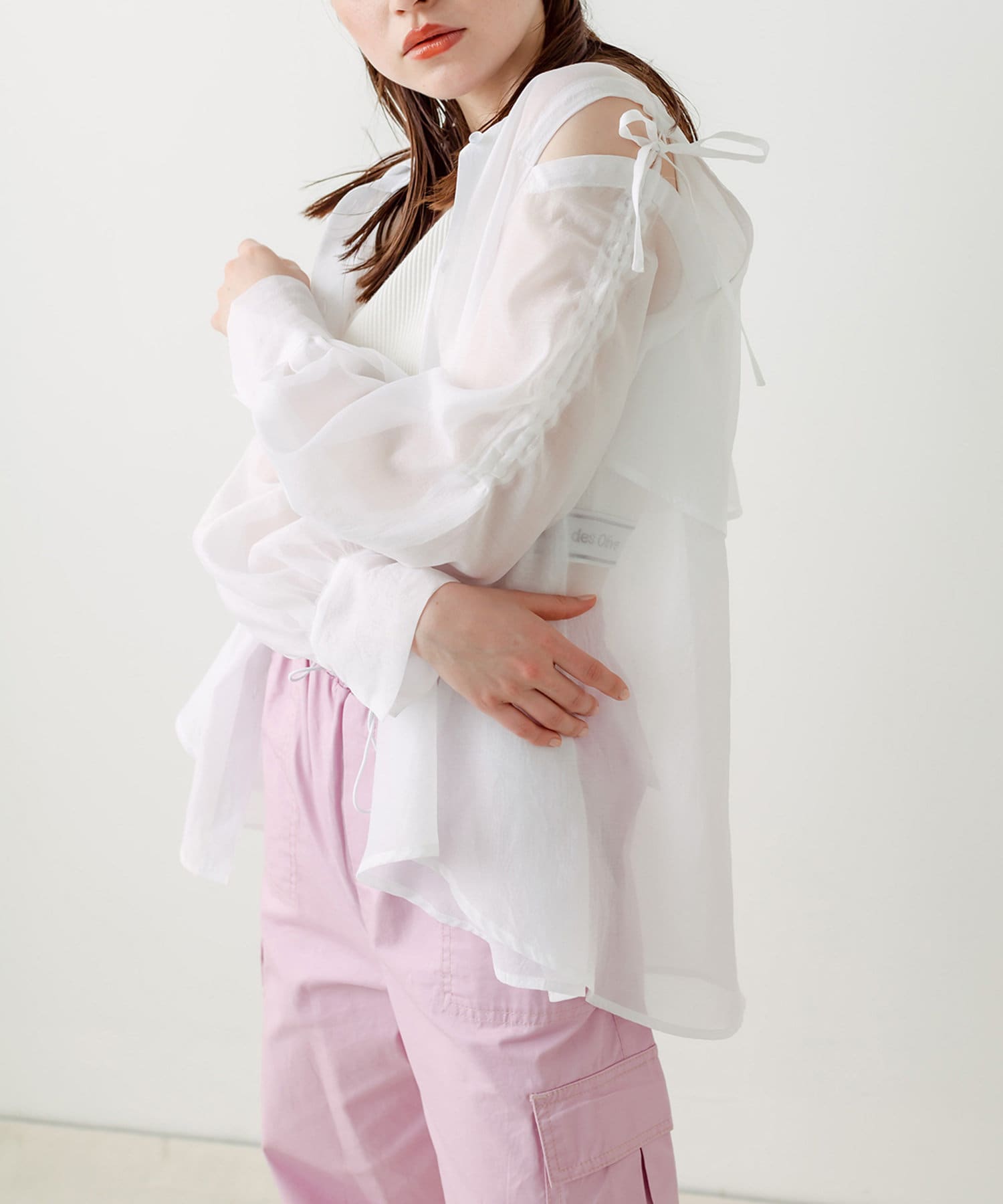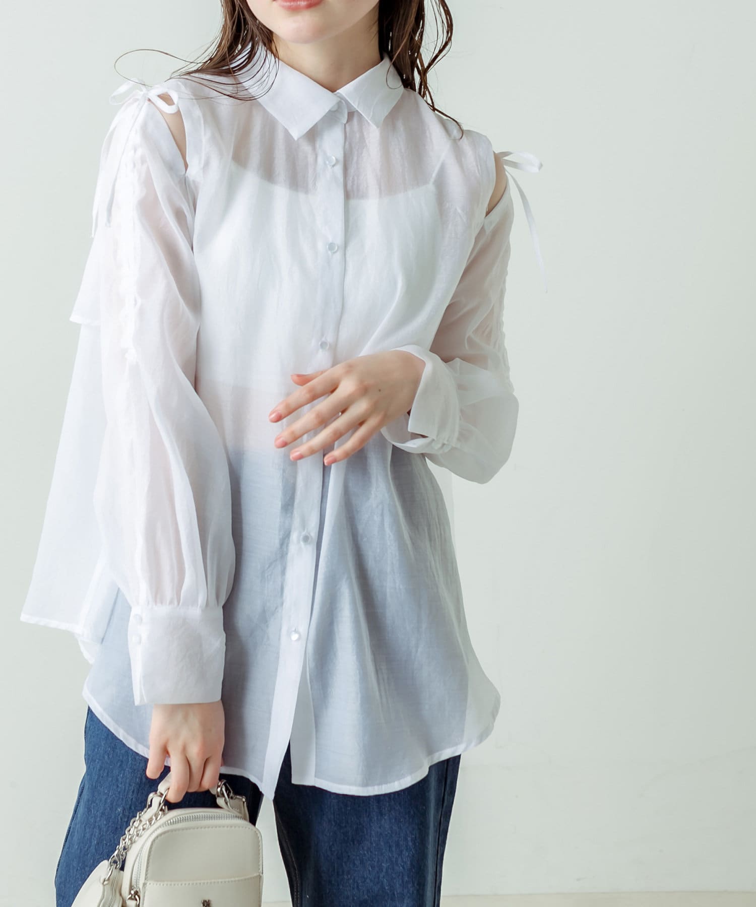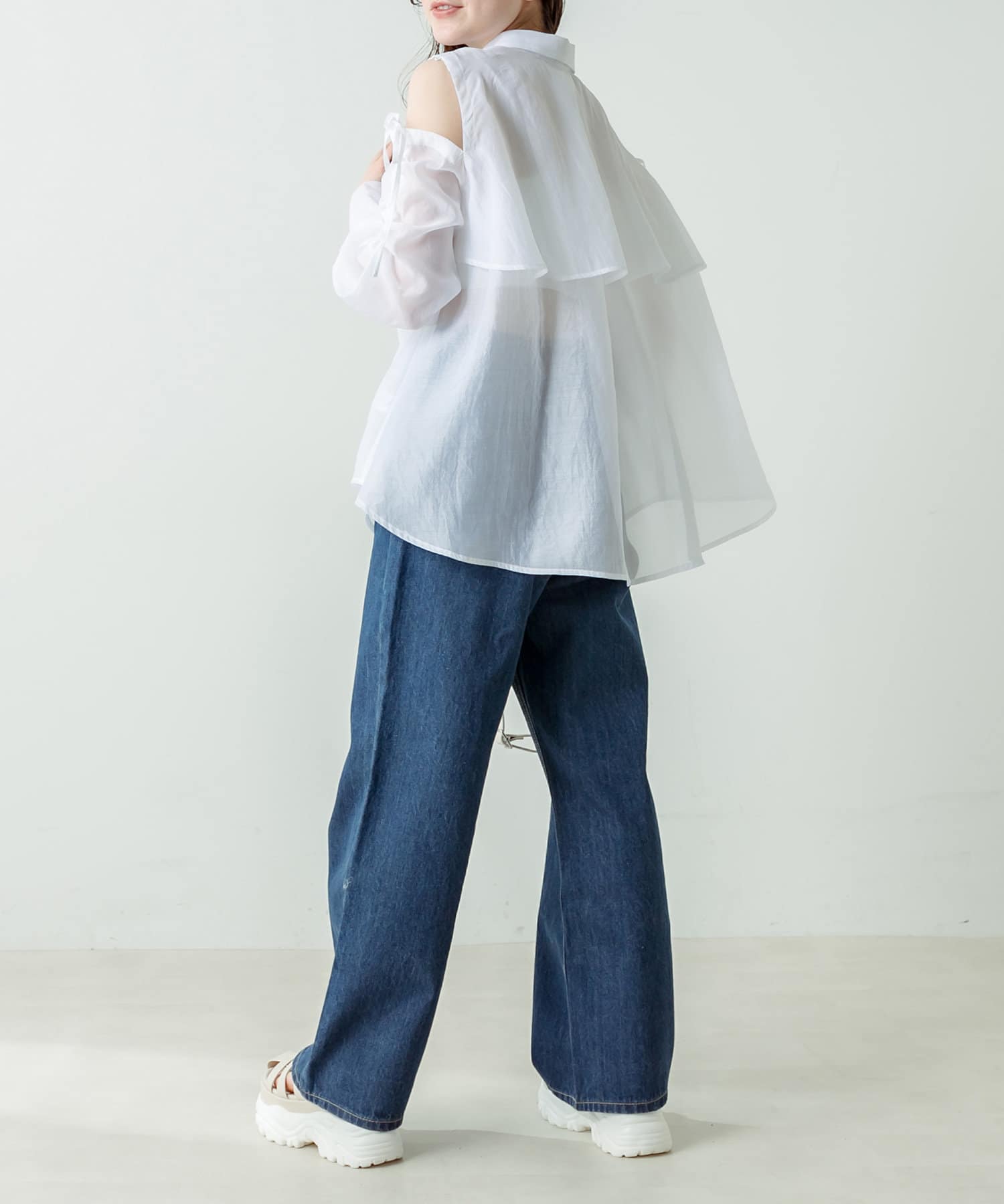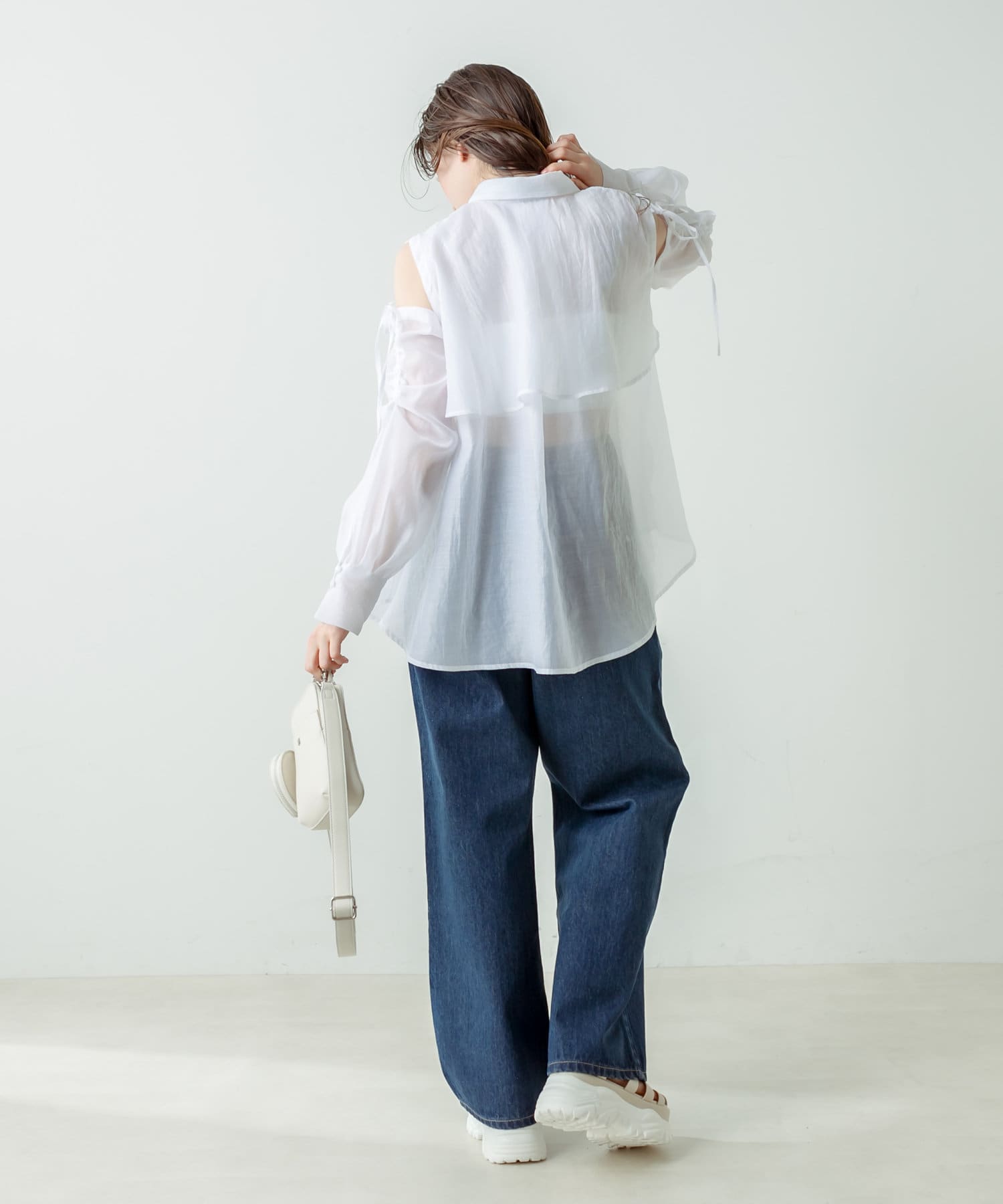 【めざましTV紹介アイテム】肩あきフレアシャツ/シアー