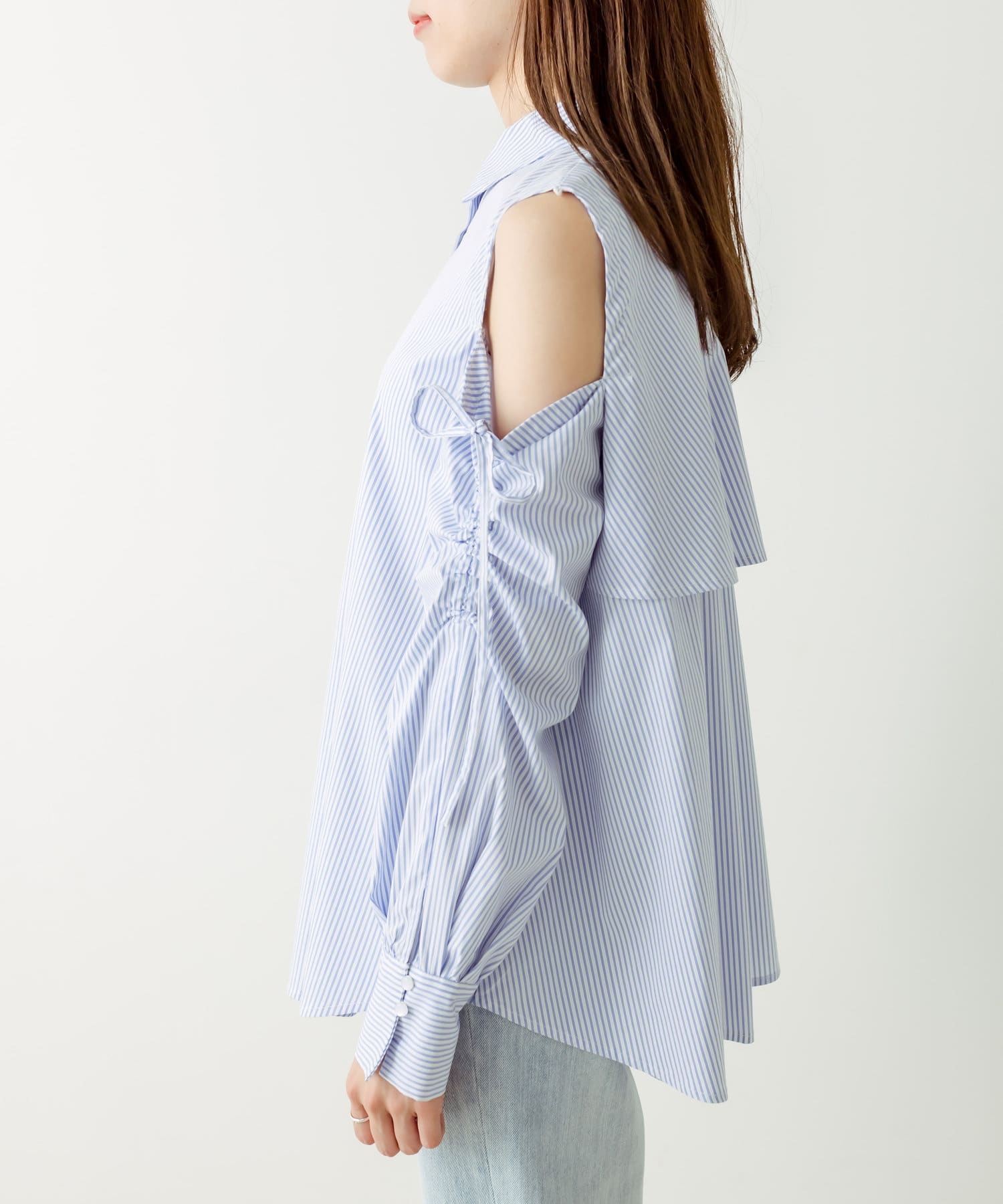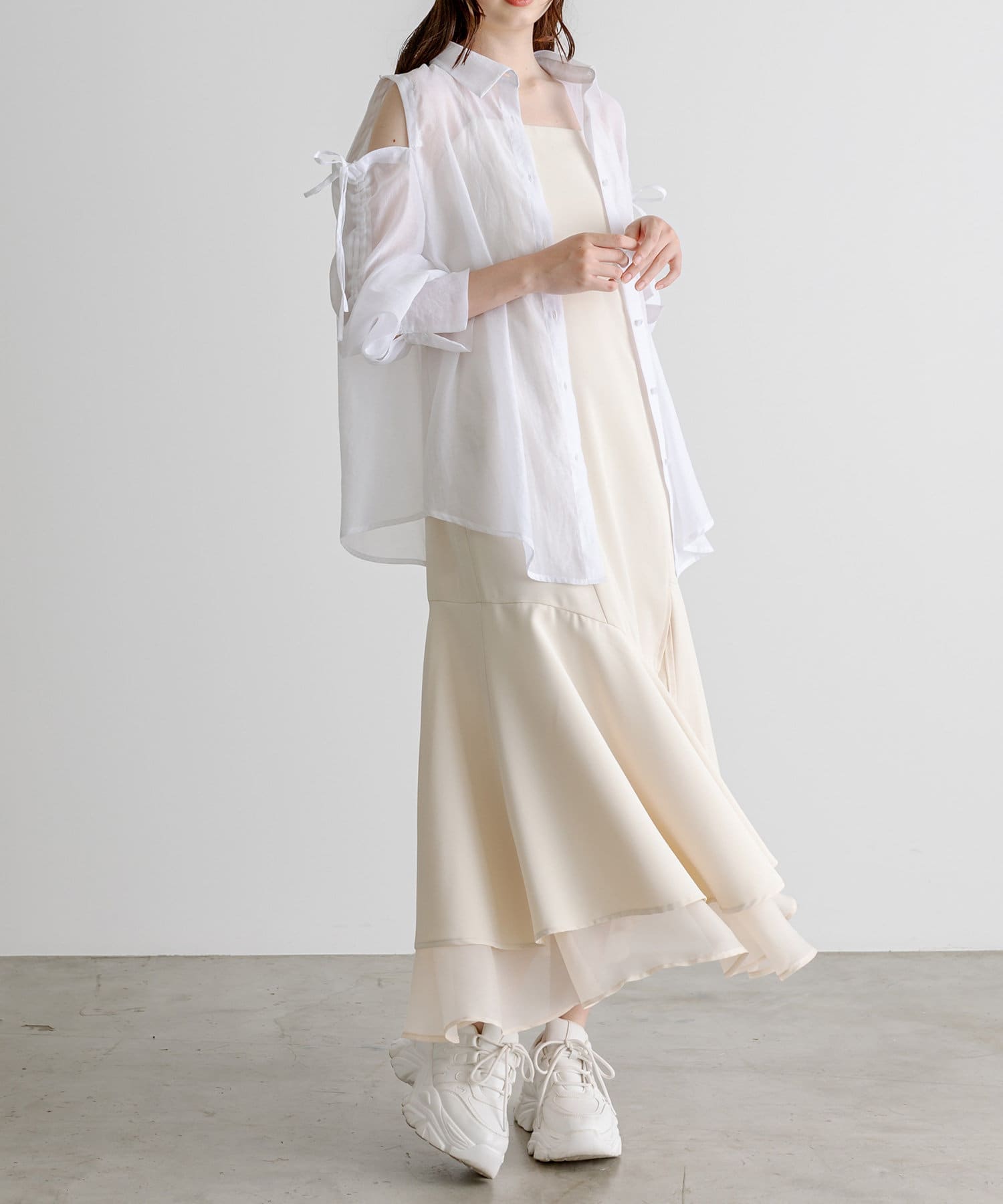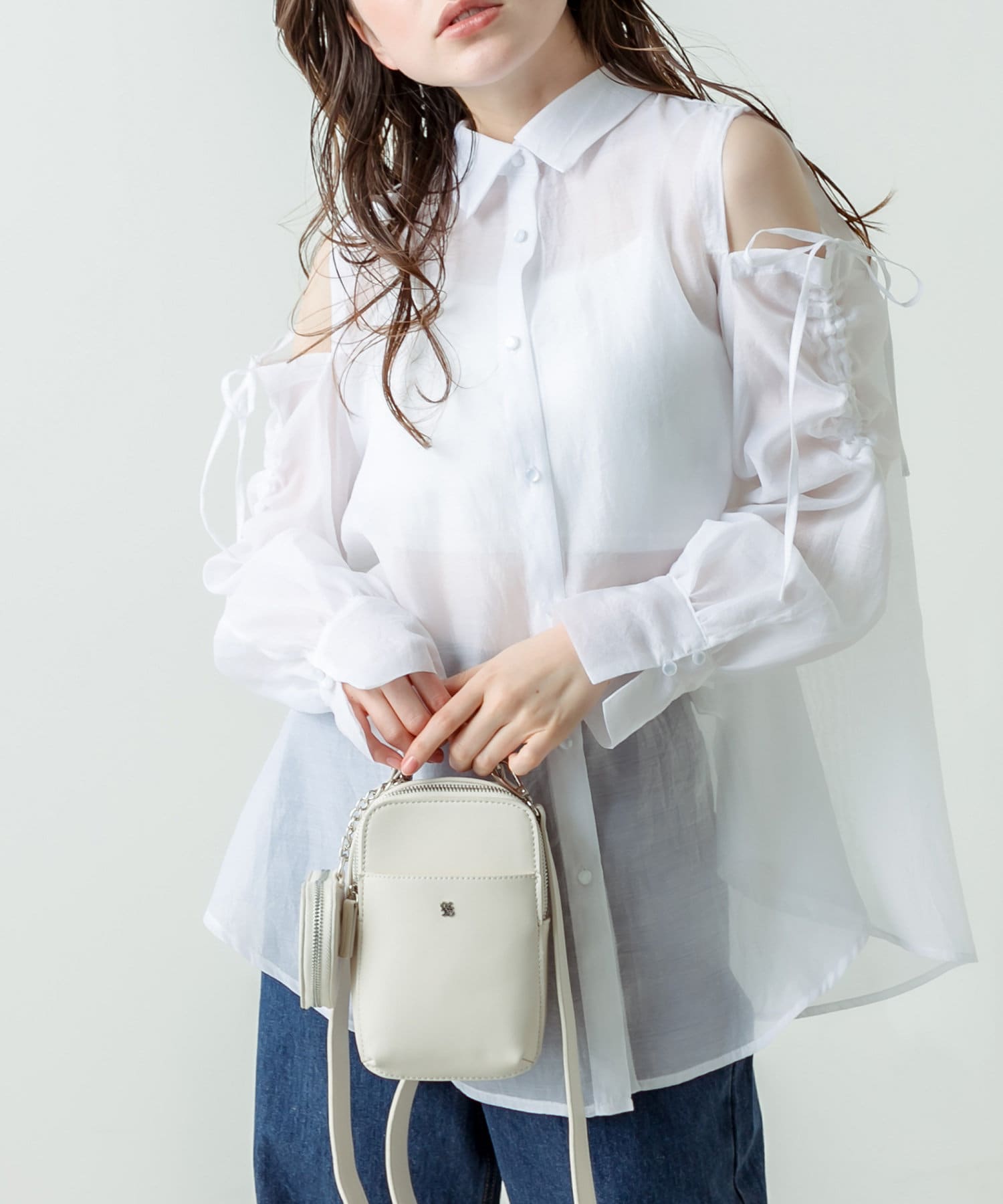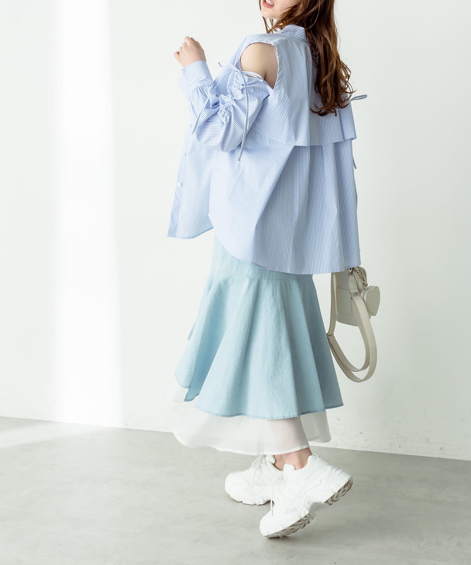 【めざましTV紹介アイテム】肩あきフレアシャツ/シアー