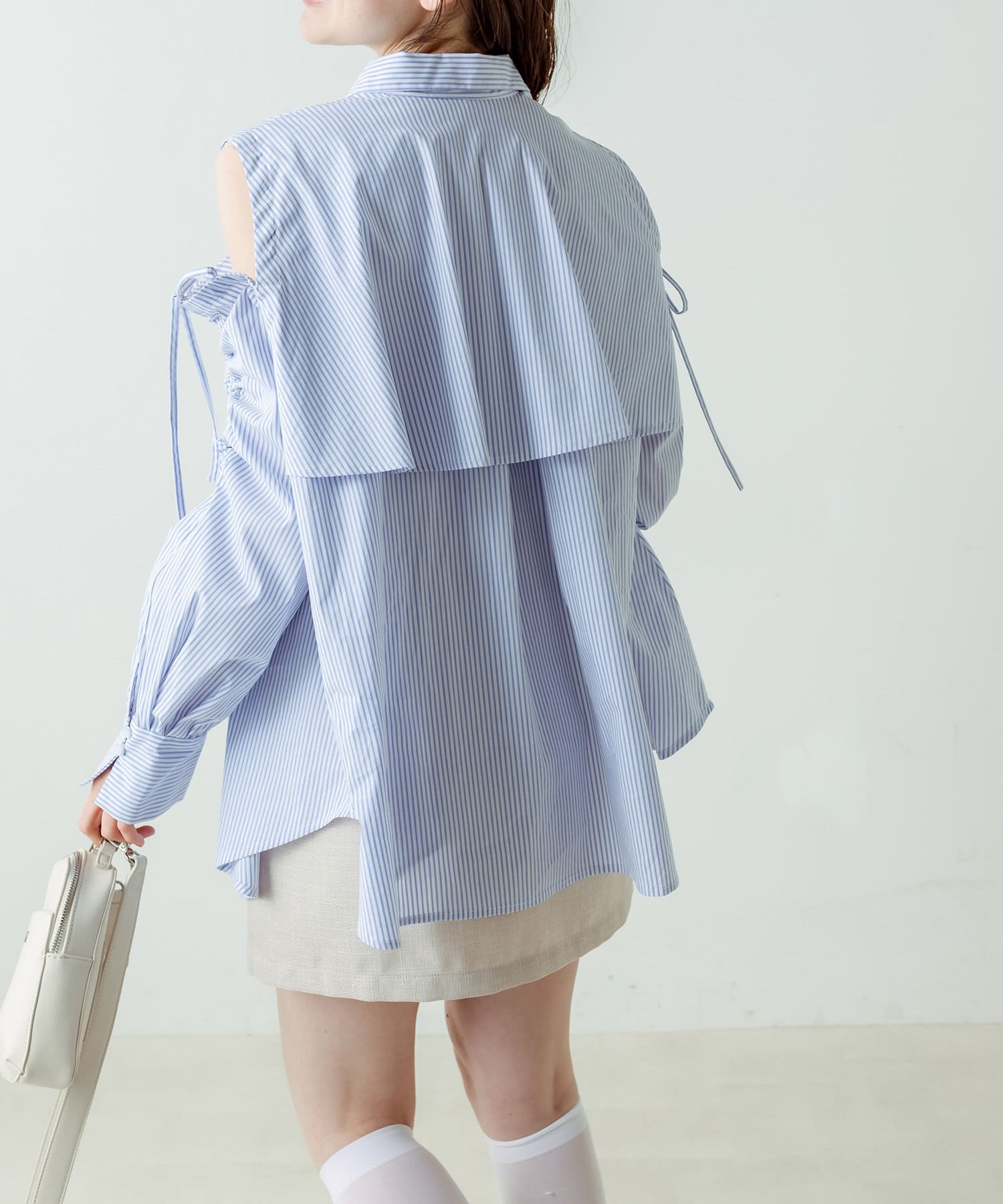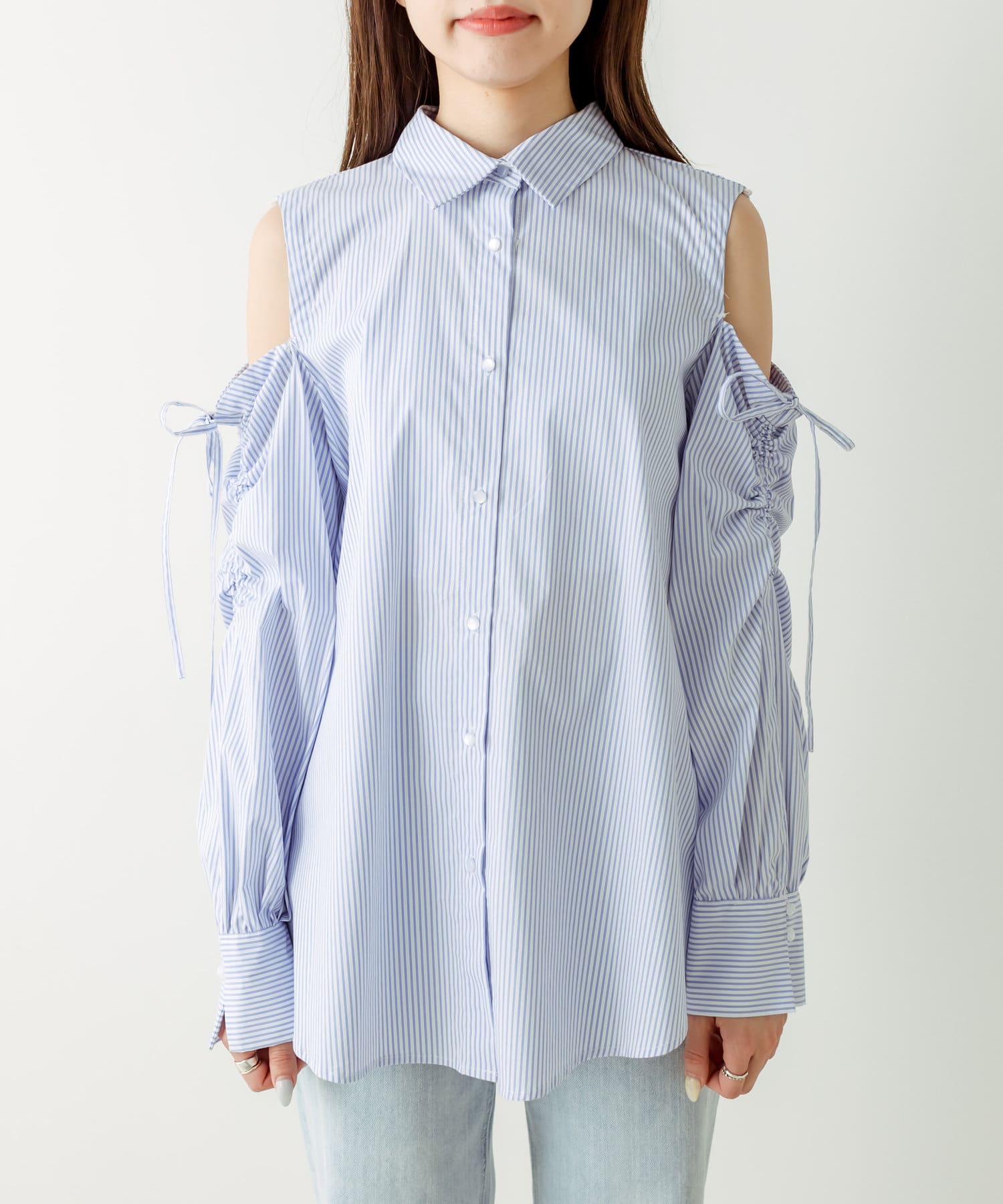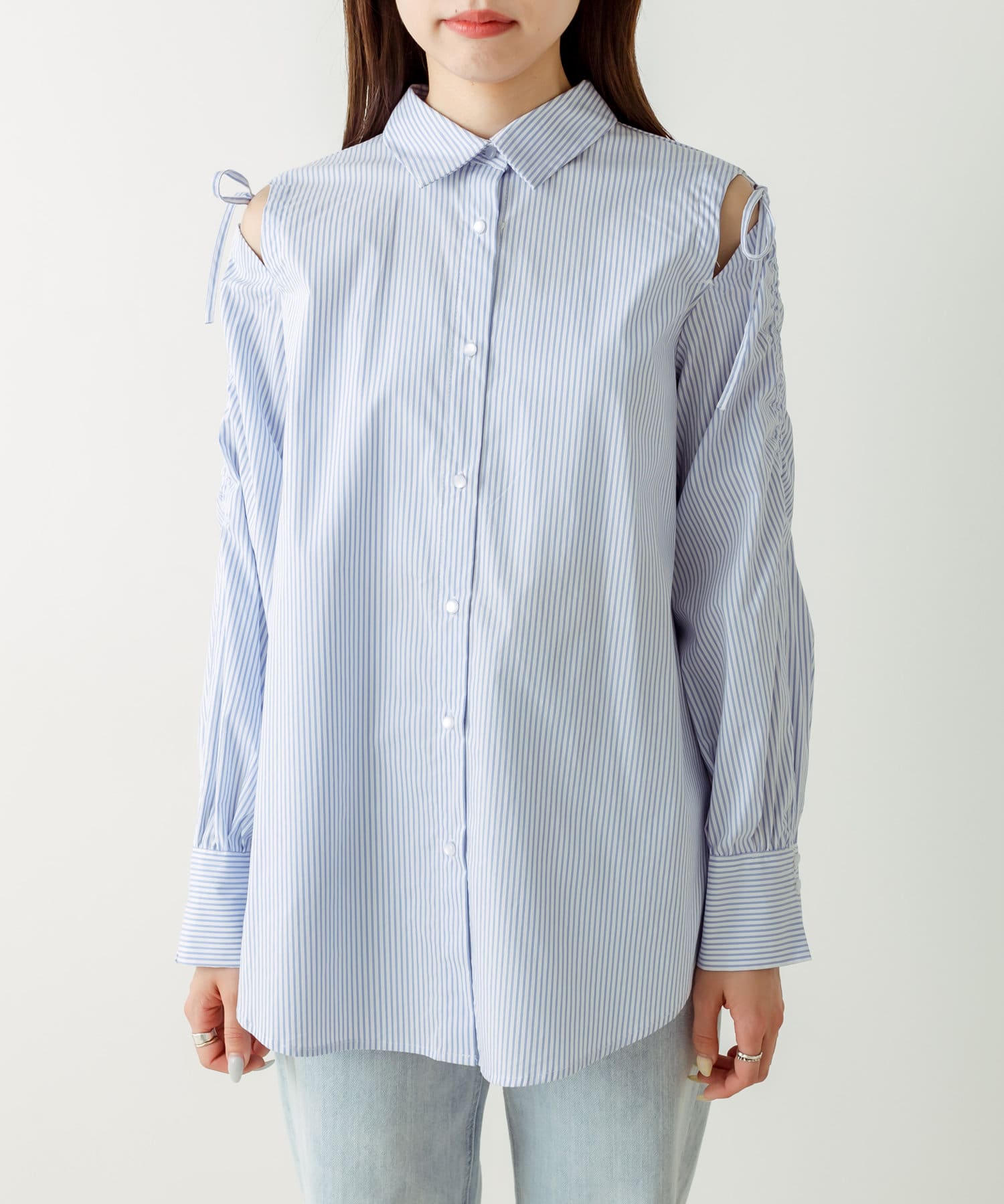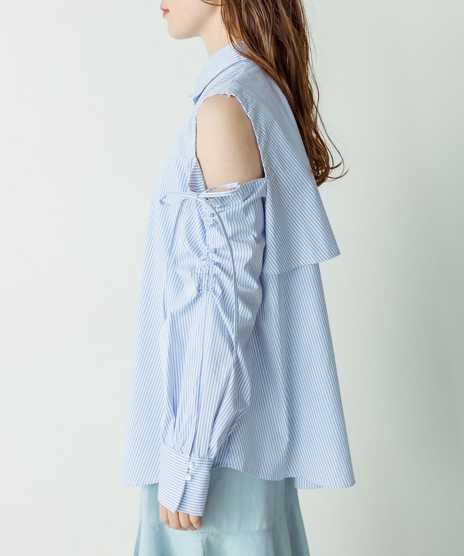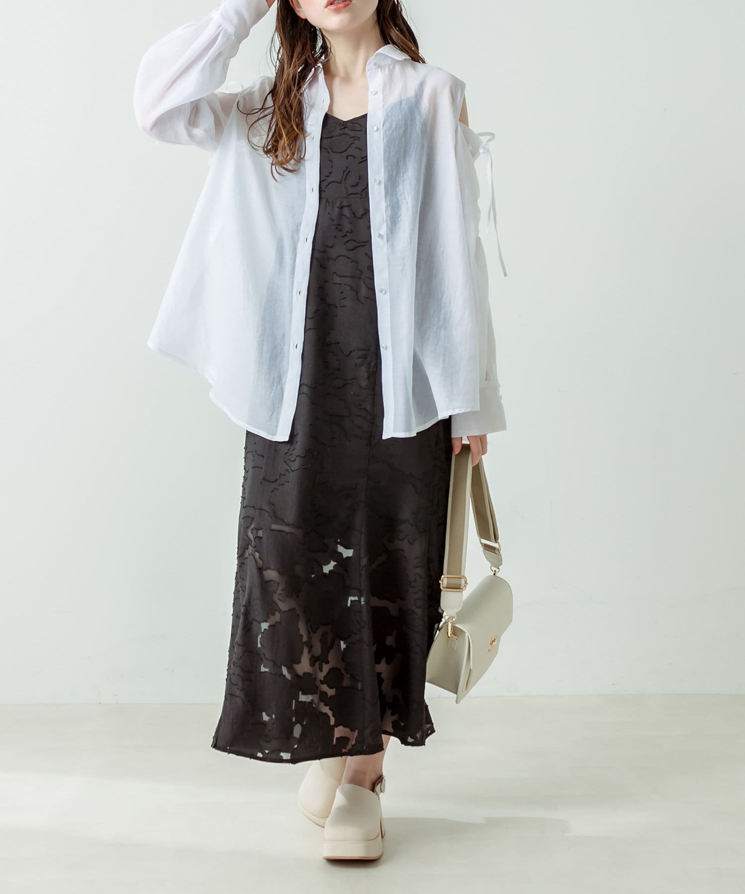 【めざましTV紹介アイテム】肩あきフレアシャツ/シアー