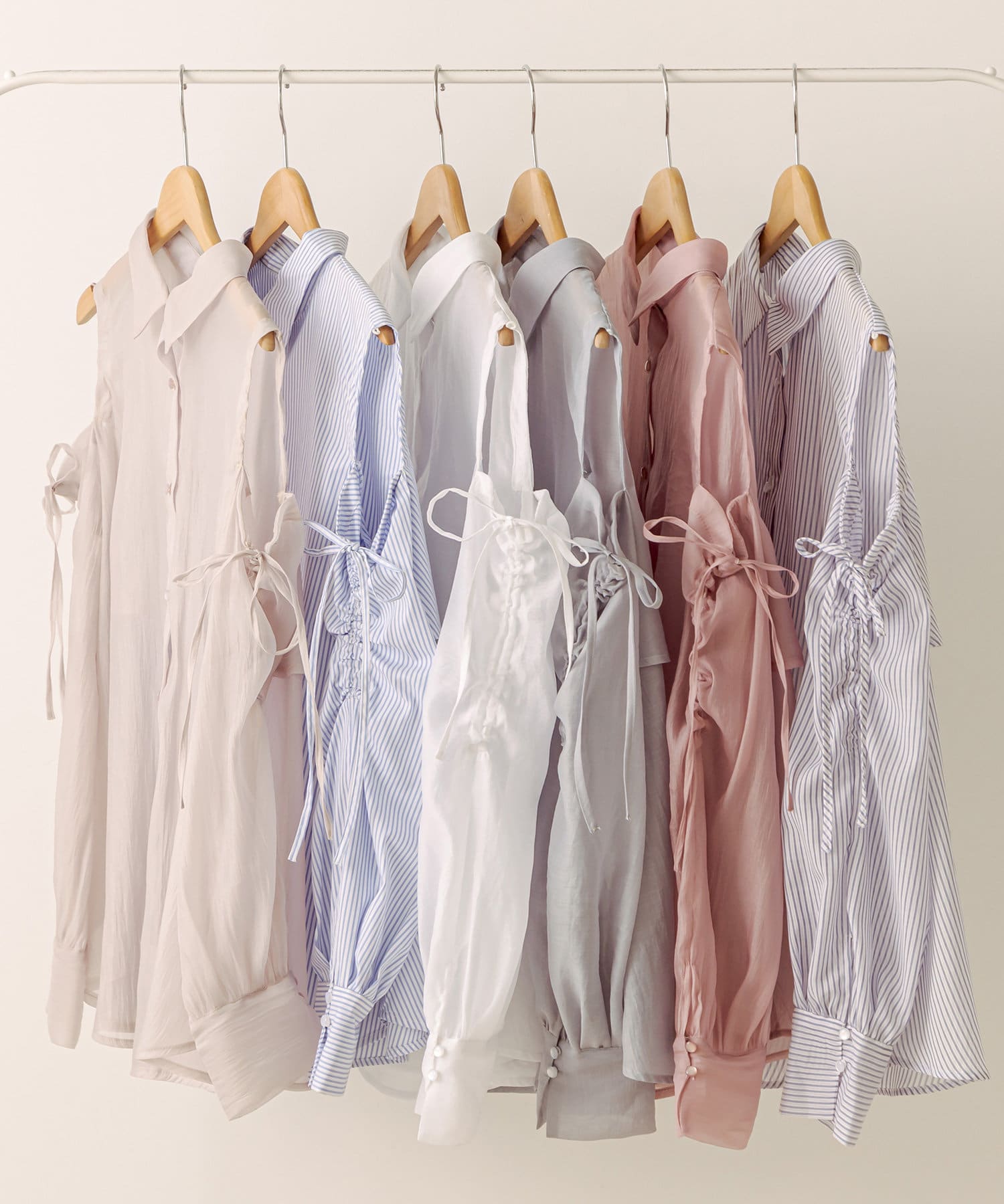 ・オフホワイト(シアー)/グレージュ(シアー)/サックス(ストライプ)/ピンク(シアー)/ブルーグレー(シアー)/ブルー系その他(シアーストライプ)の6色展開