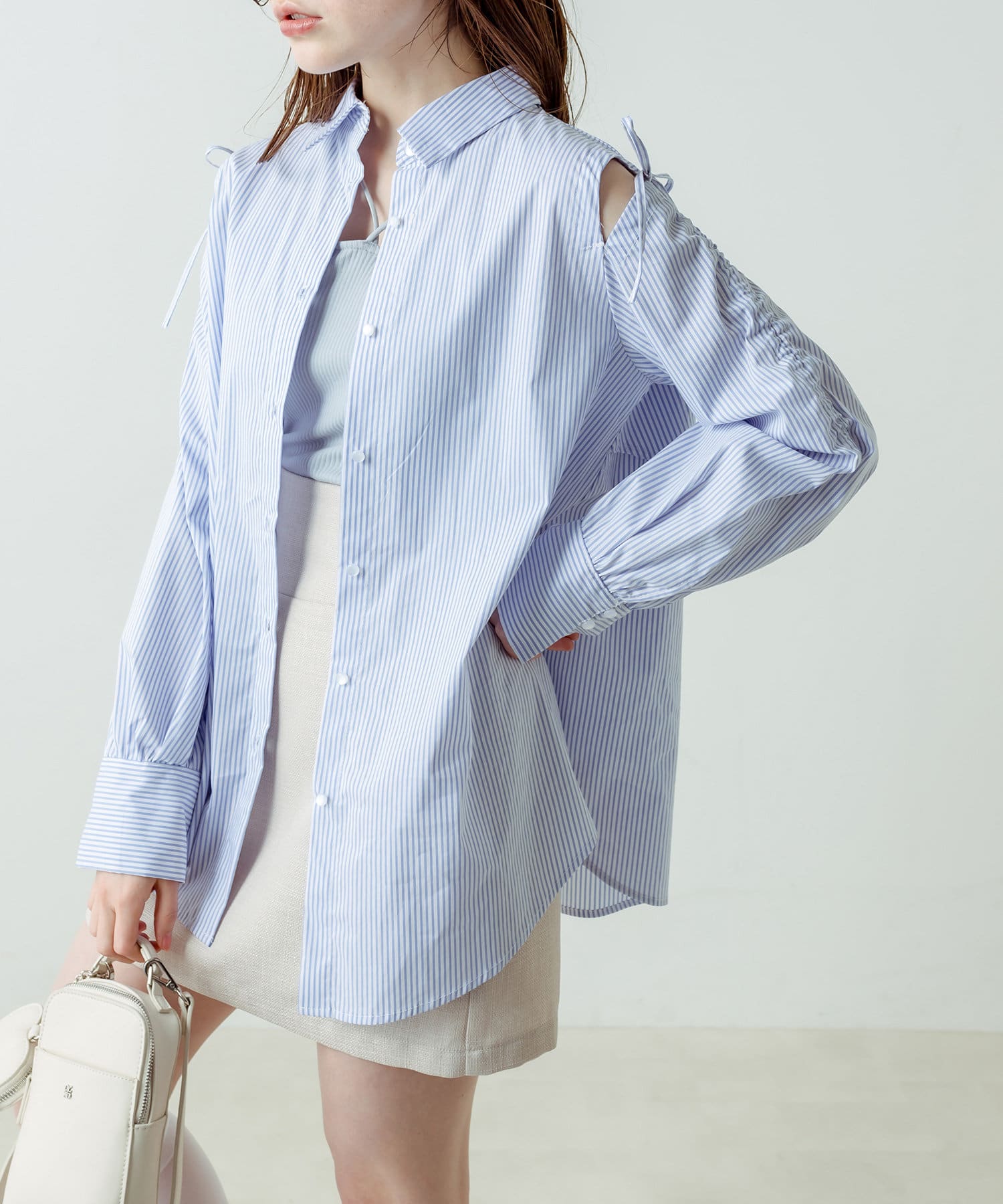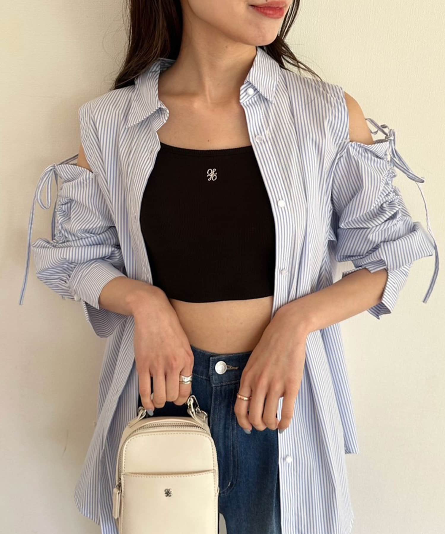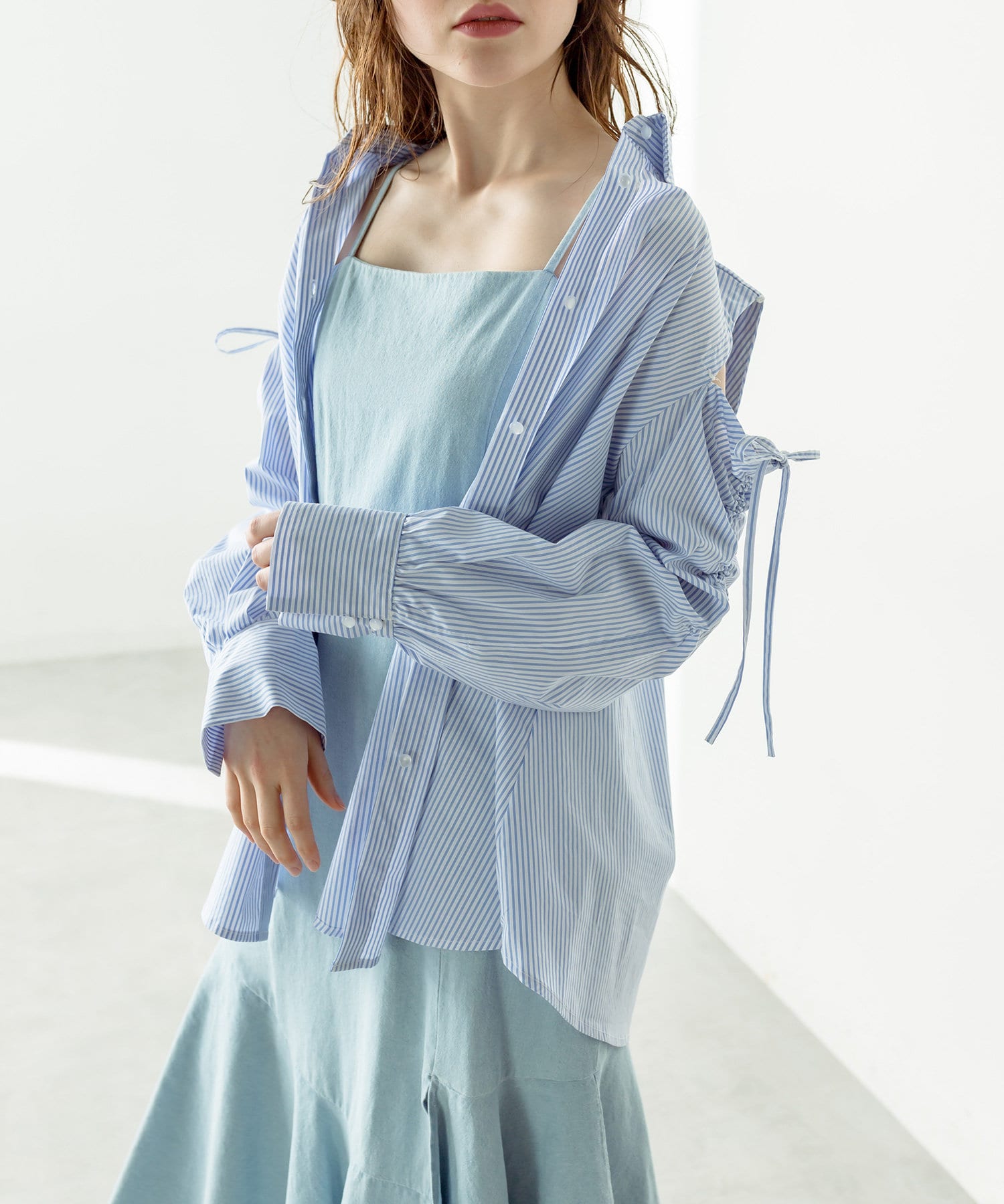 ・肌見せを抑えたいときは、リボンで肩を閉じて着ることも可能◎