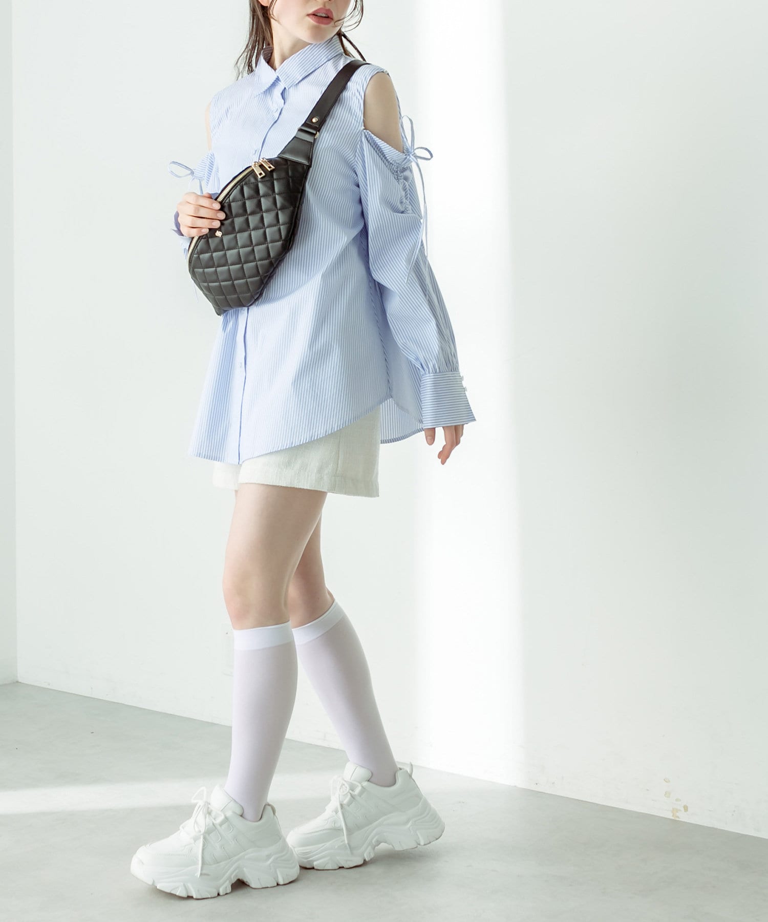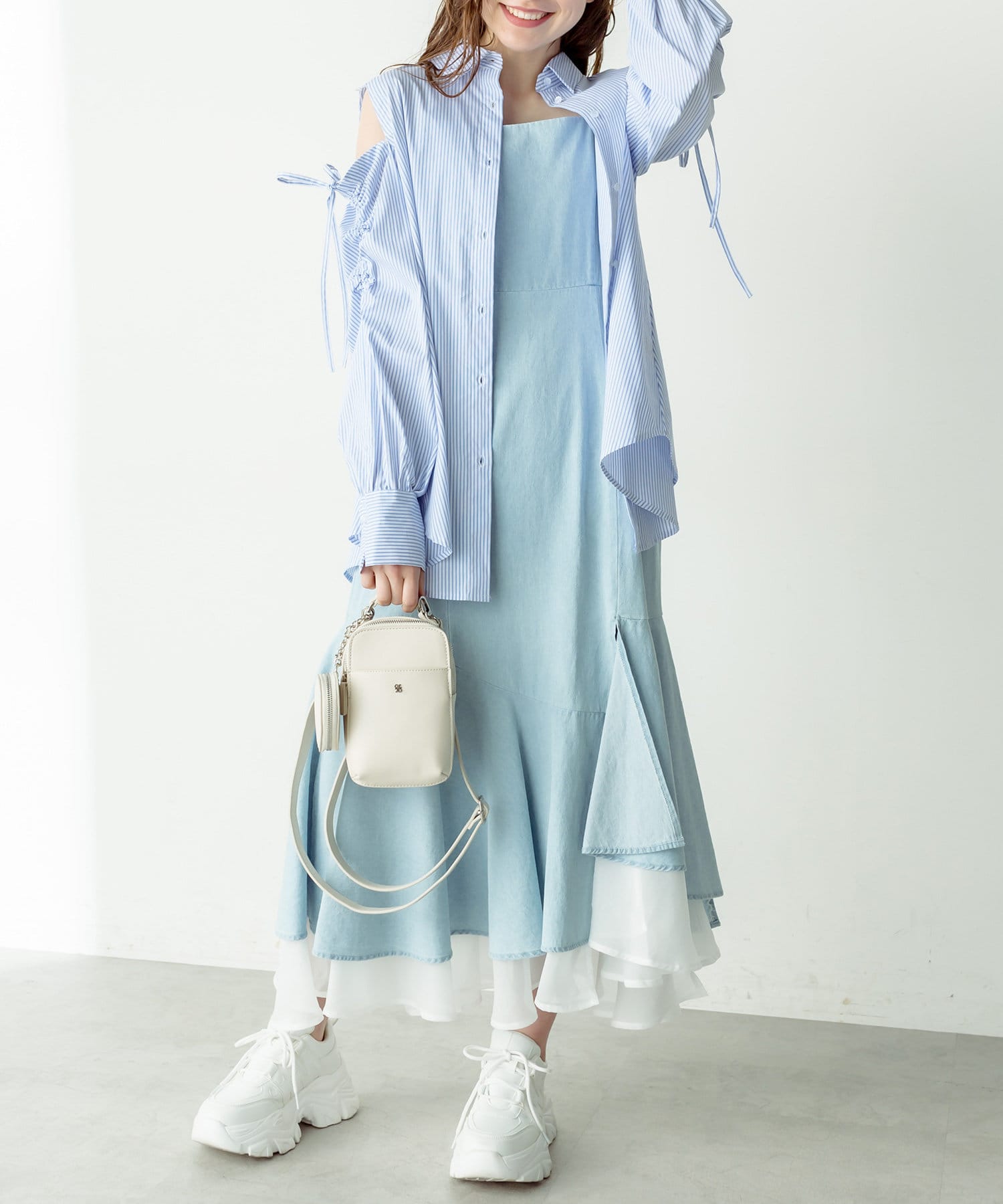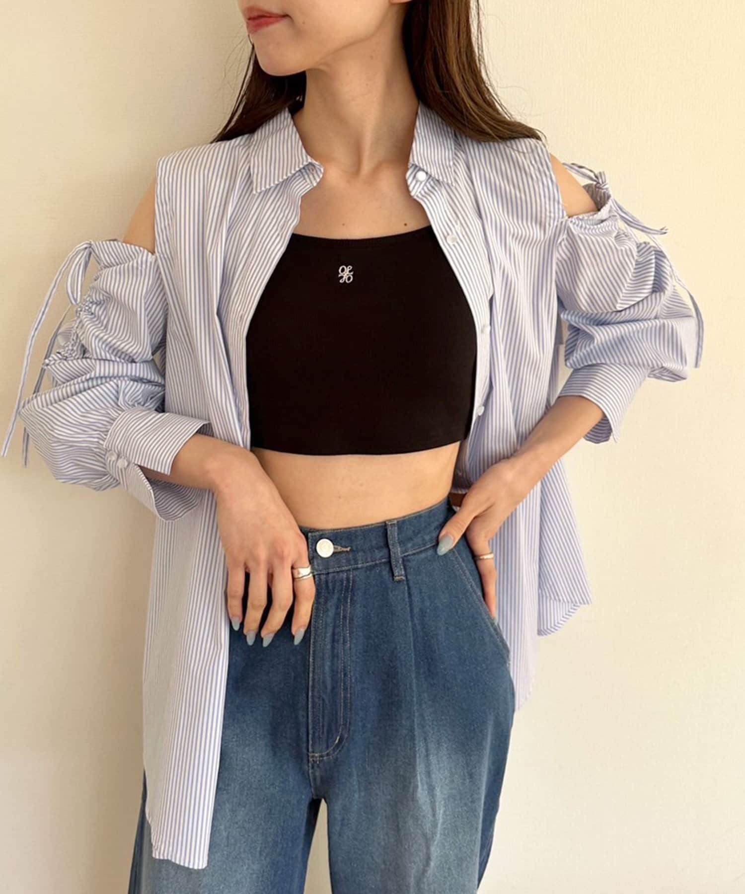 ・肌見せを抑えたいときは、リボンで肩を閉じて着ることも可能◎